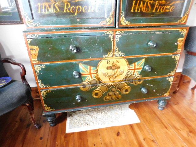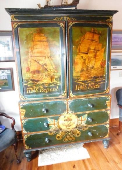 Sea Faring Theme Armoire with Two over Two Chest of Drawers 4"x21"x85" upstairs item. 2 person removal