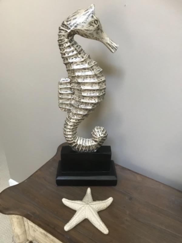 BEAUTIFUL 2 FOOT HIGH SEA HORSE WITH BLACK BASE AND 7.5 INCH STARFISH