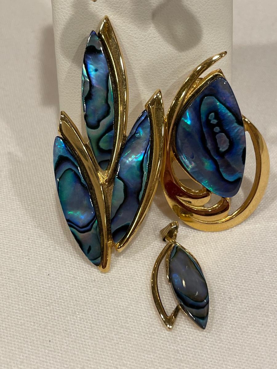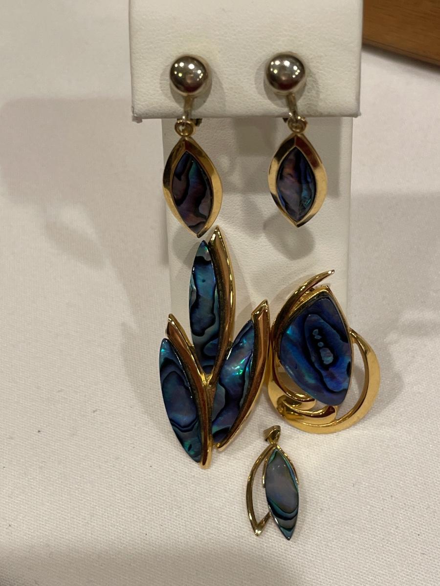 Includes 2 pins, 1 pendant & clip ons with sea Opal
