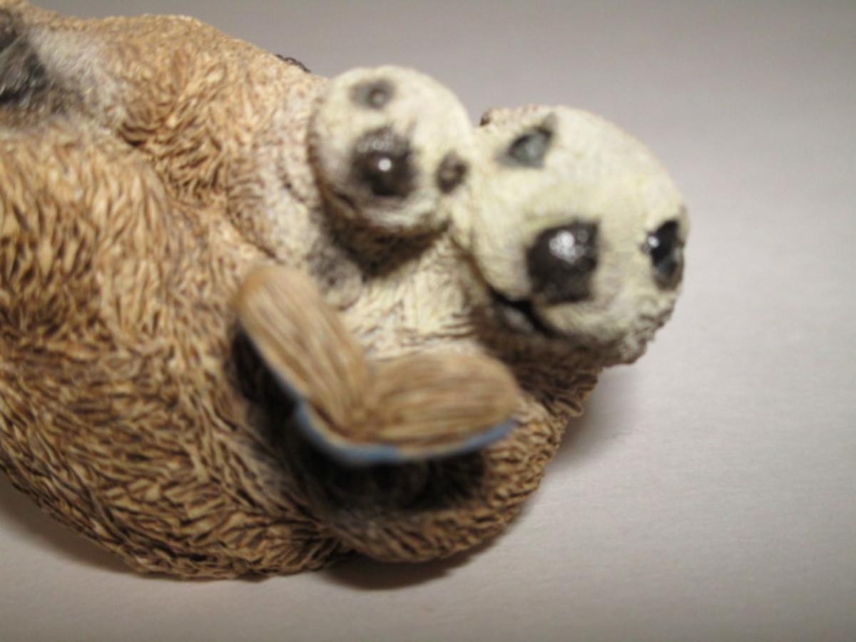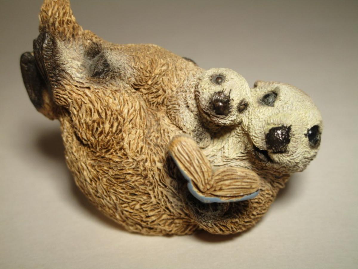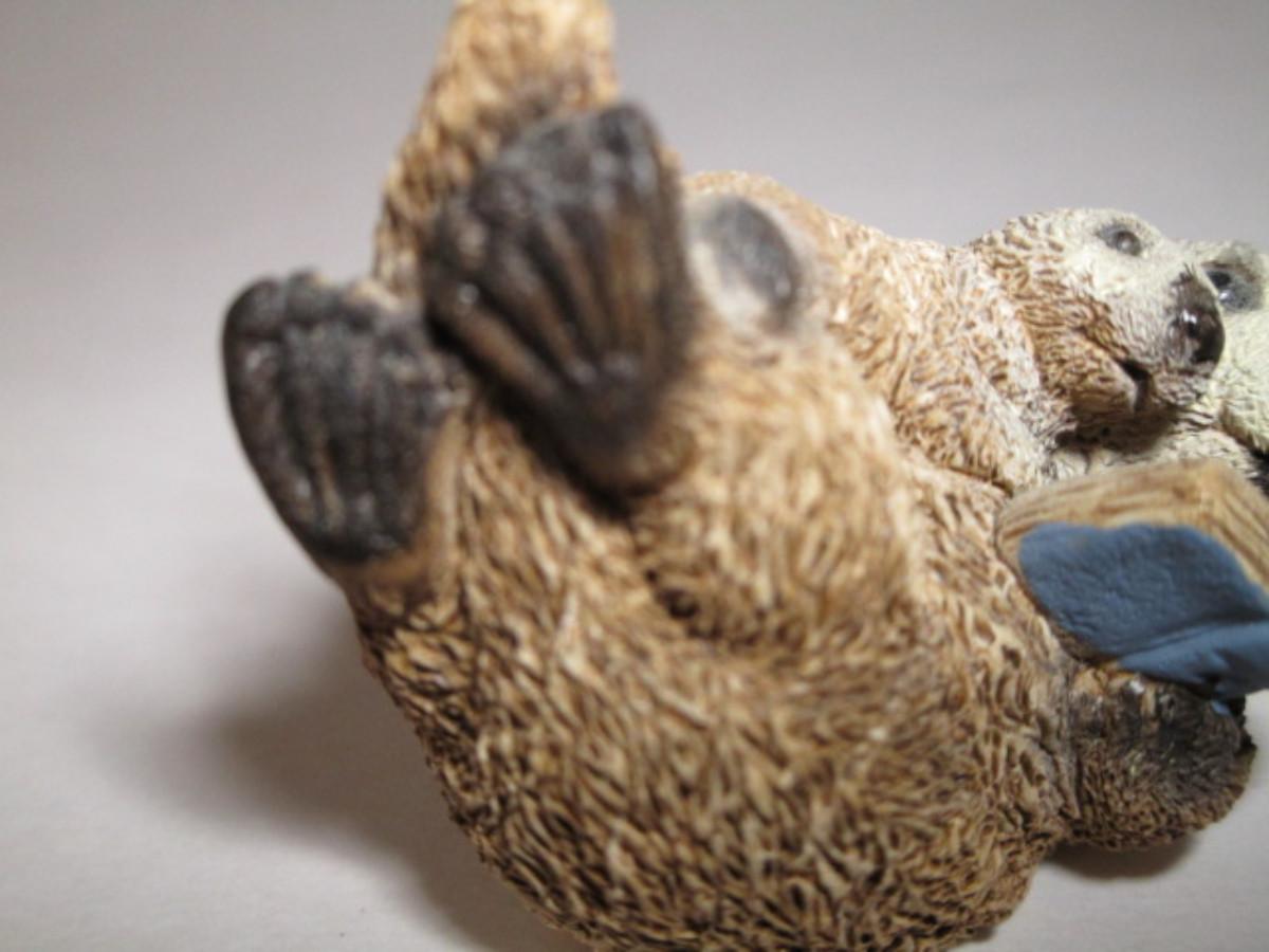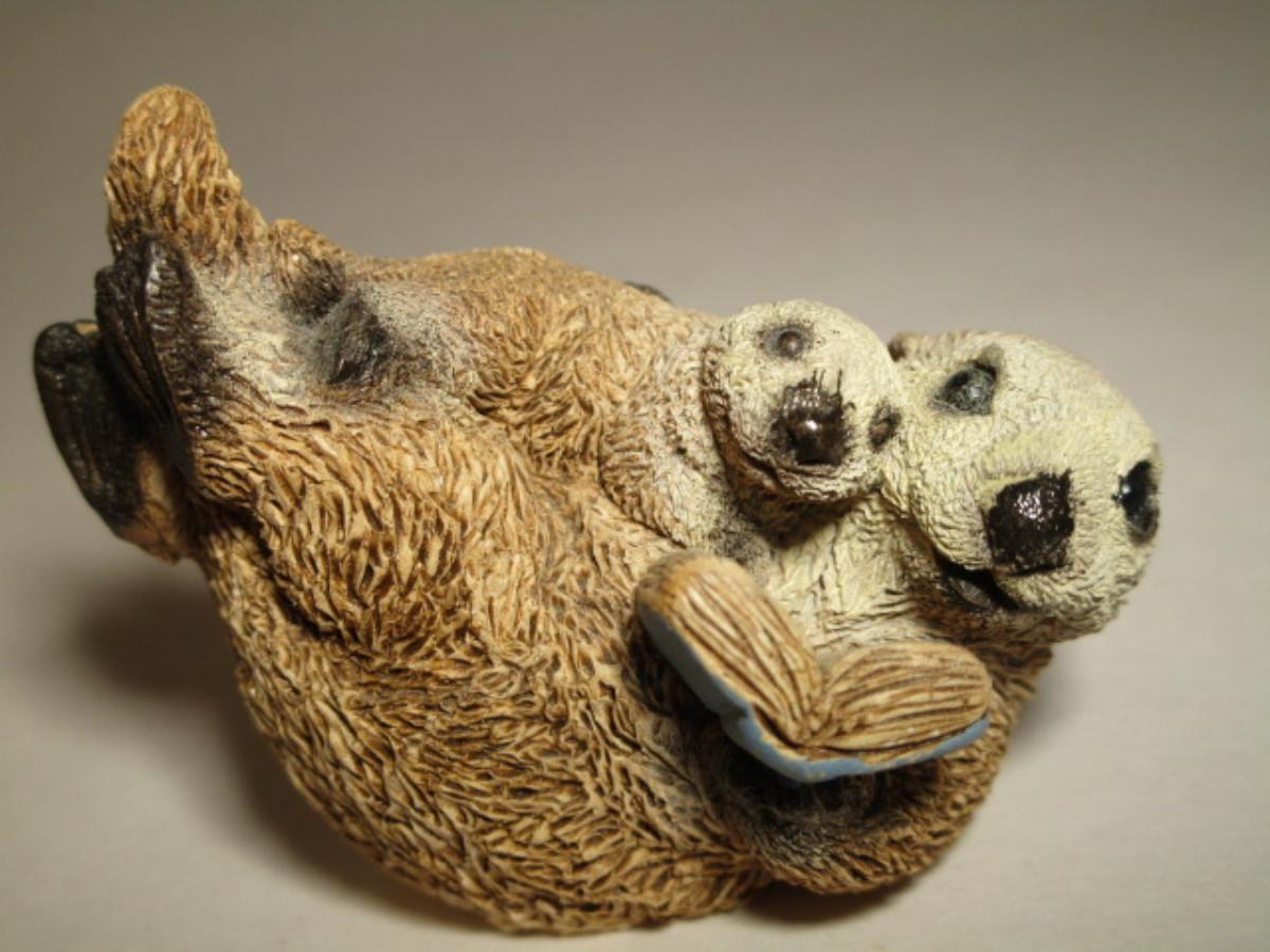 Sea otter reading a book to its child figurine