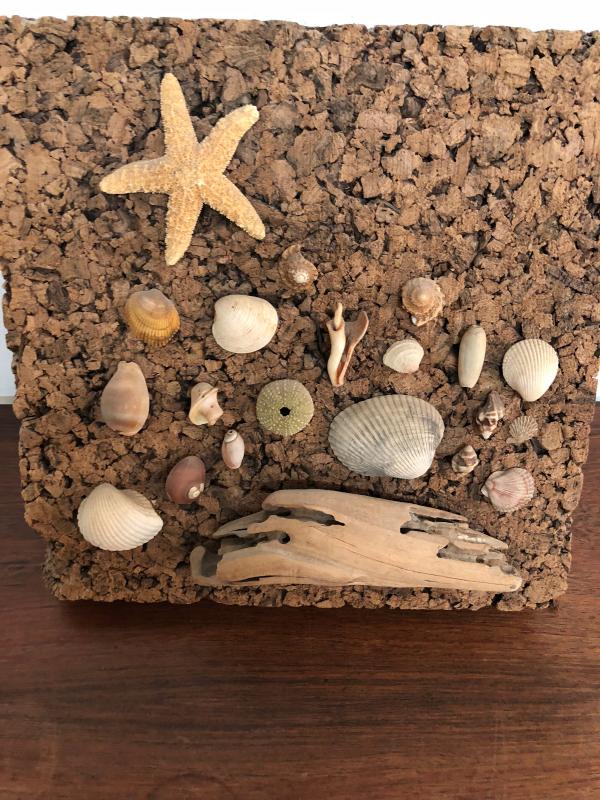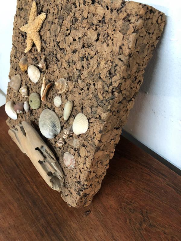 12" square found shells and driftwood on cork board. If you need shipping please be aware that the cost of shipping may be more than what the item cost. All items ship from zip code 84109, you can go to USPS.com for estimates of cost.