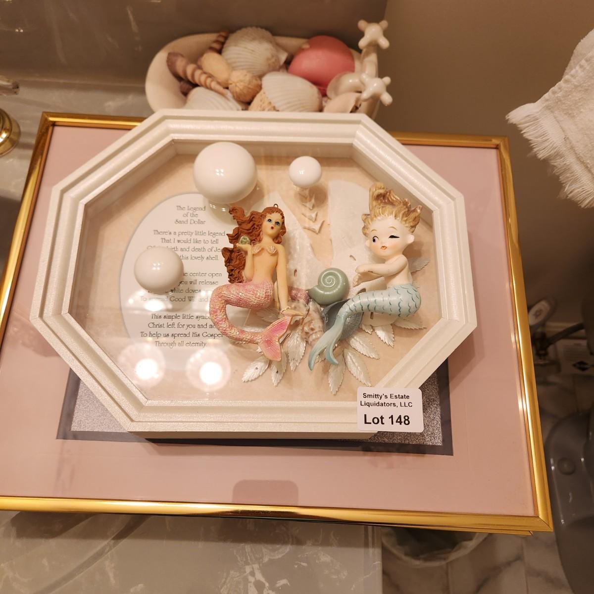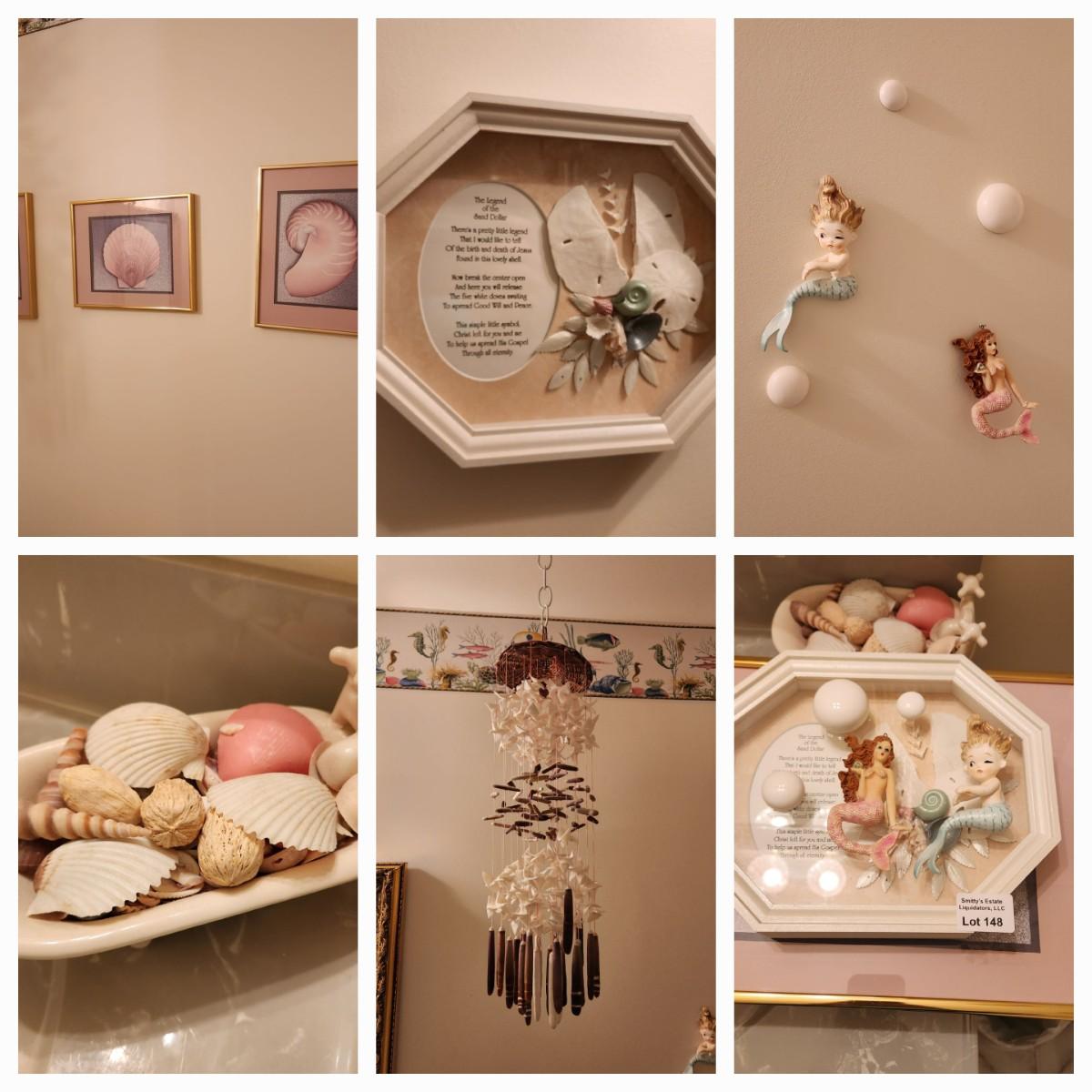 Sea Shell Room décor Lot Framed Art, Mermaids, Shell Wind chime