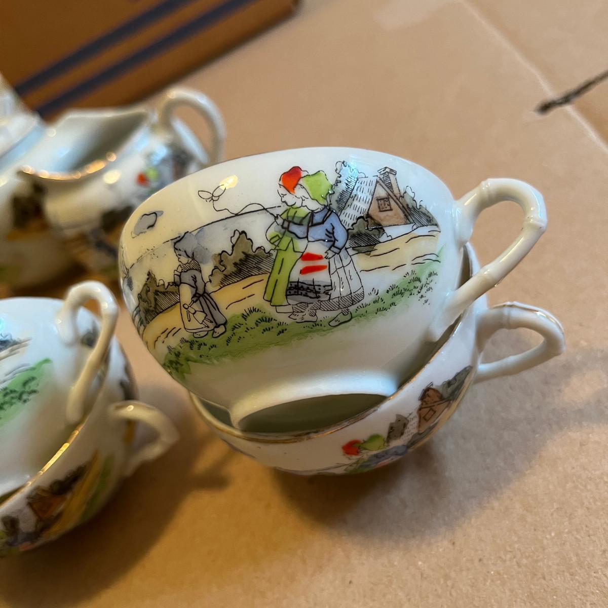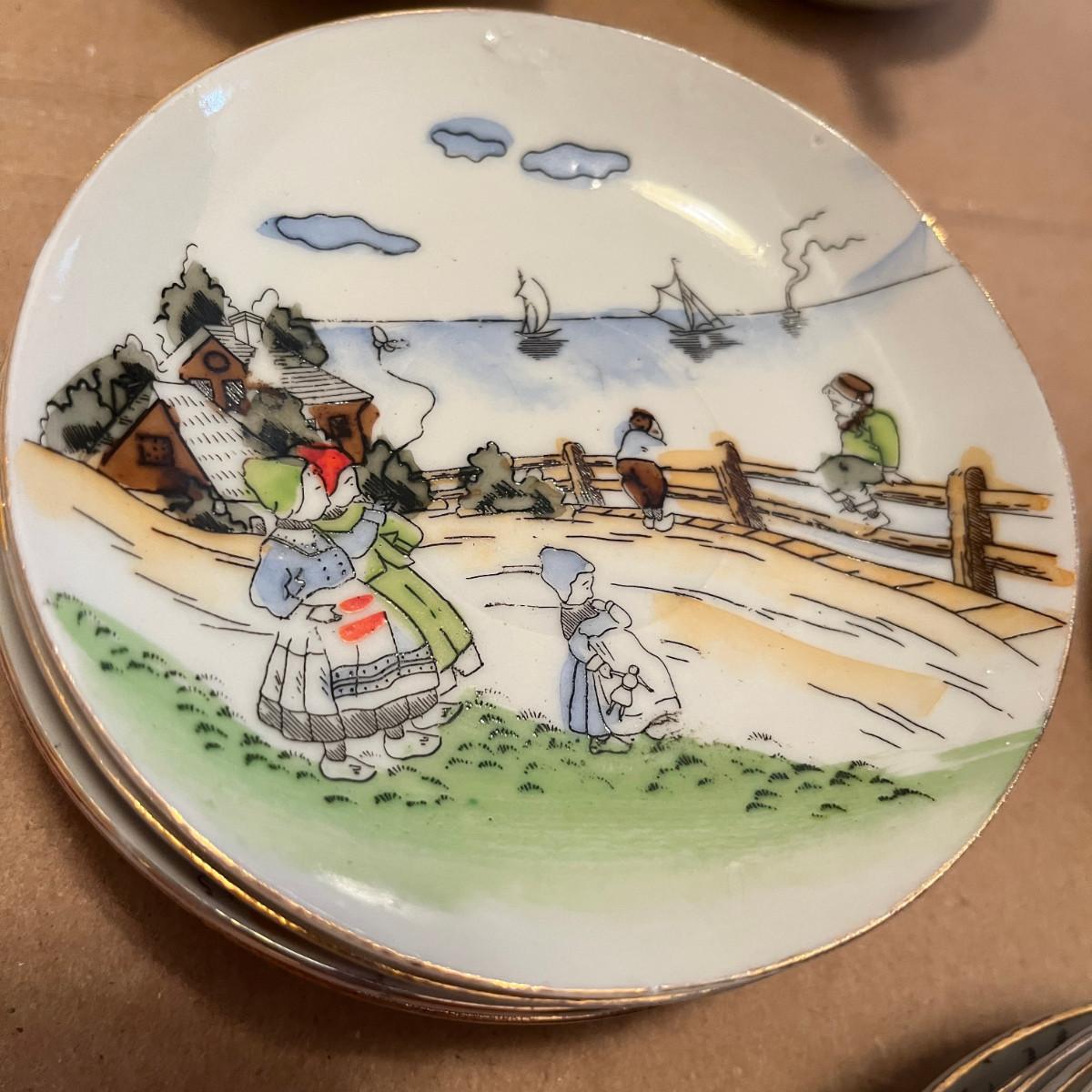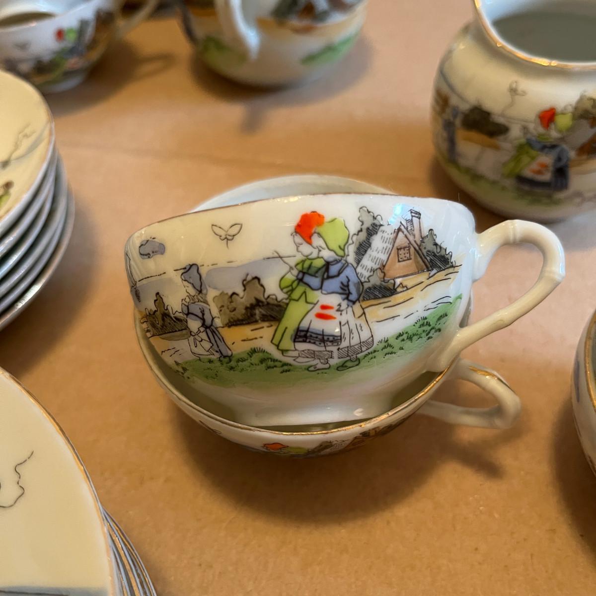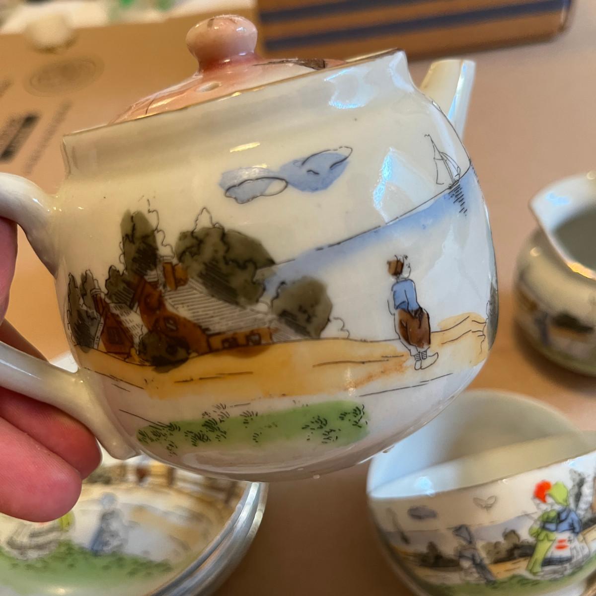 Sea Shore Delft style scene Tea Set