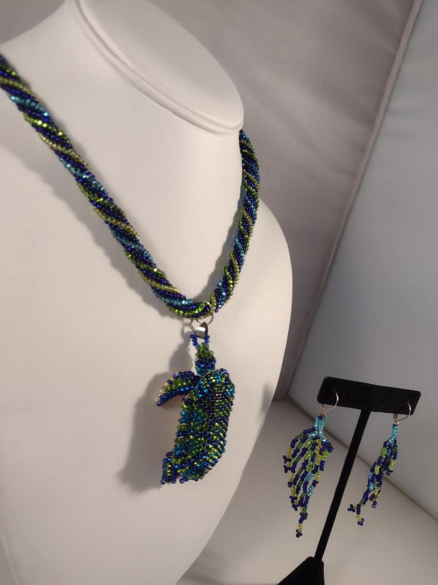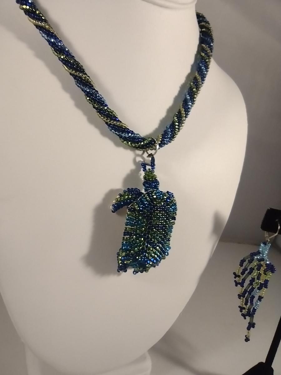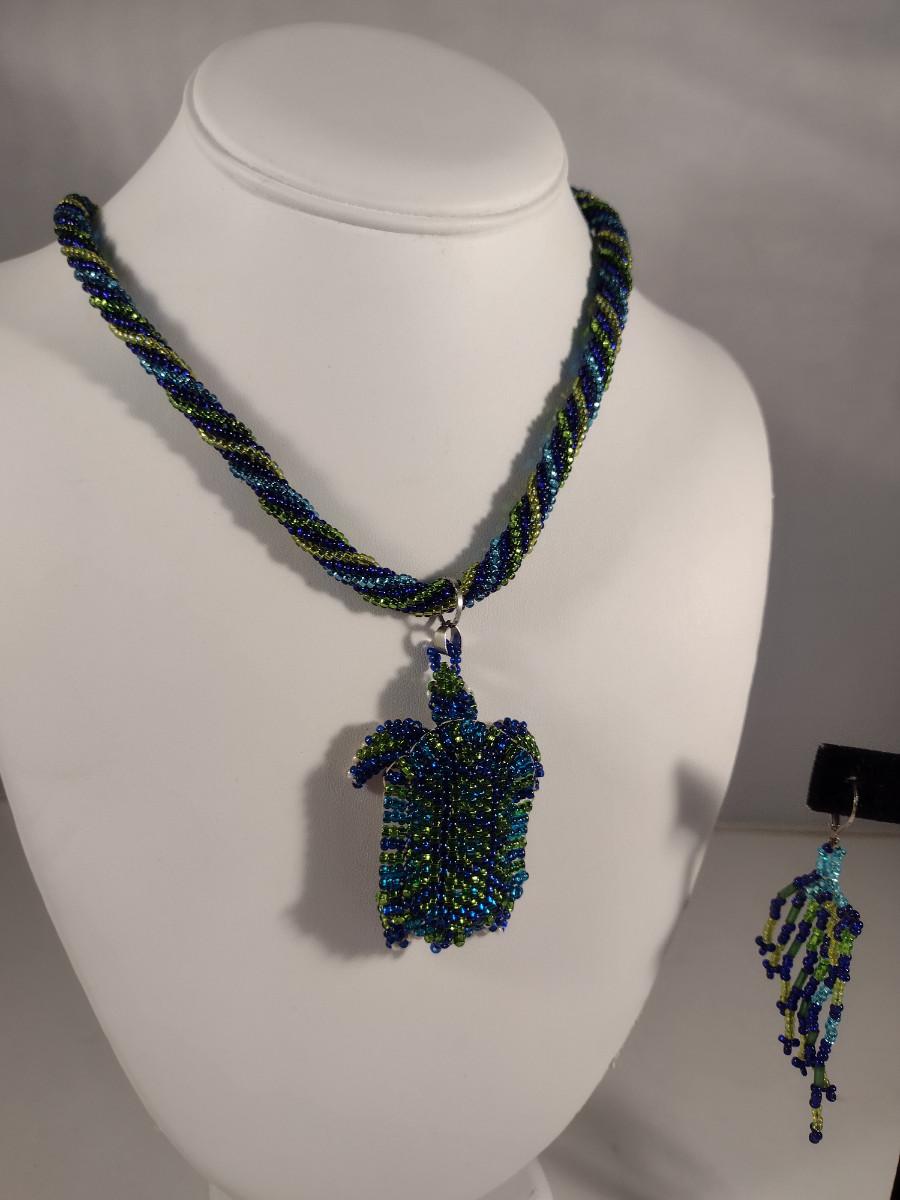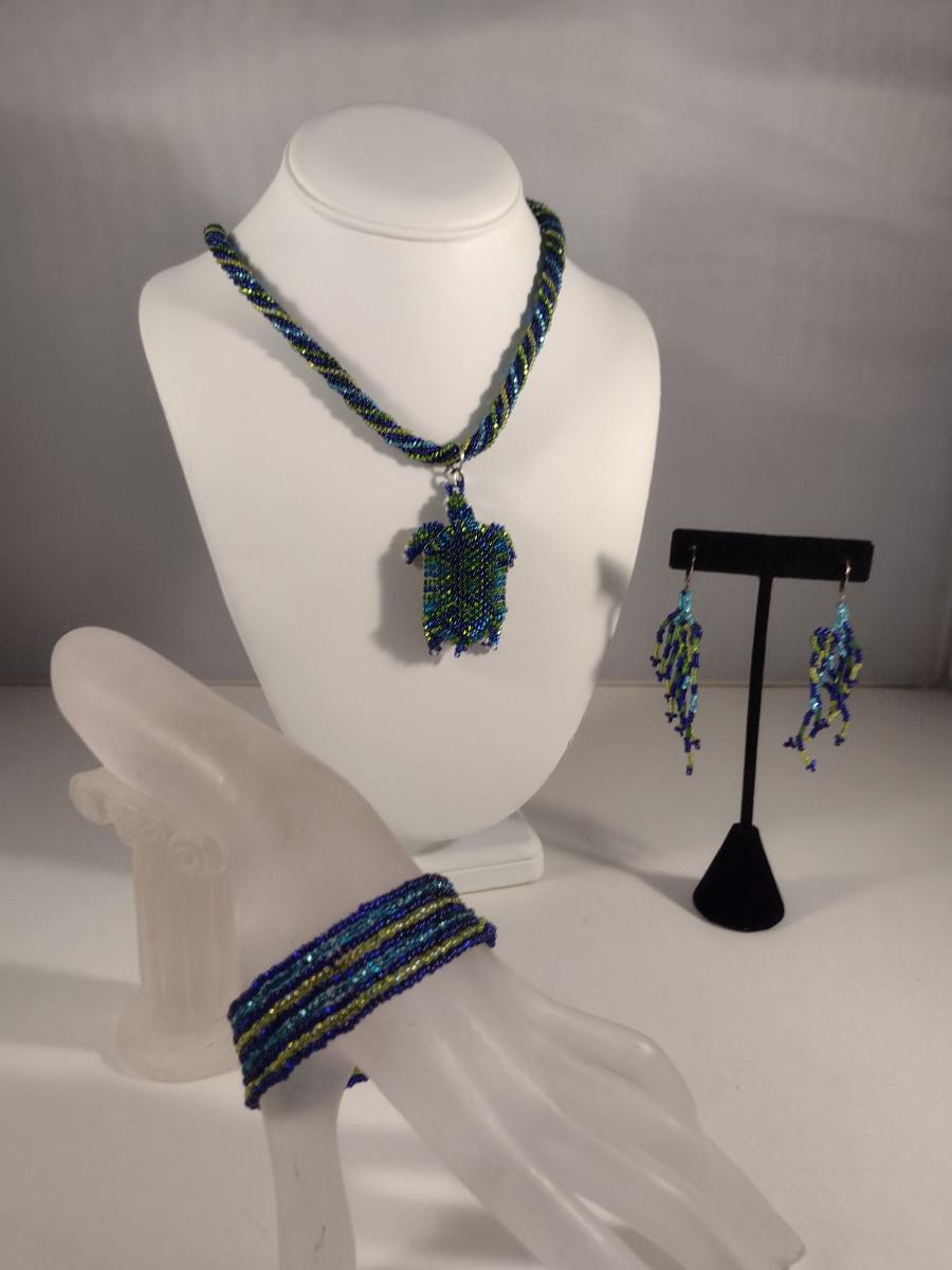 Sea Turtle Design Hand Made Seed Bead Jewelry Set (#21)