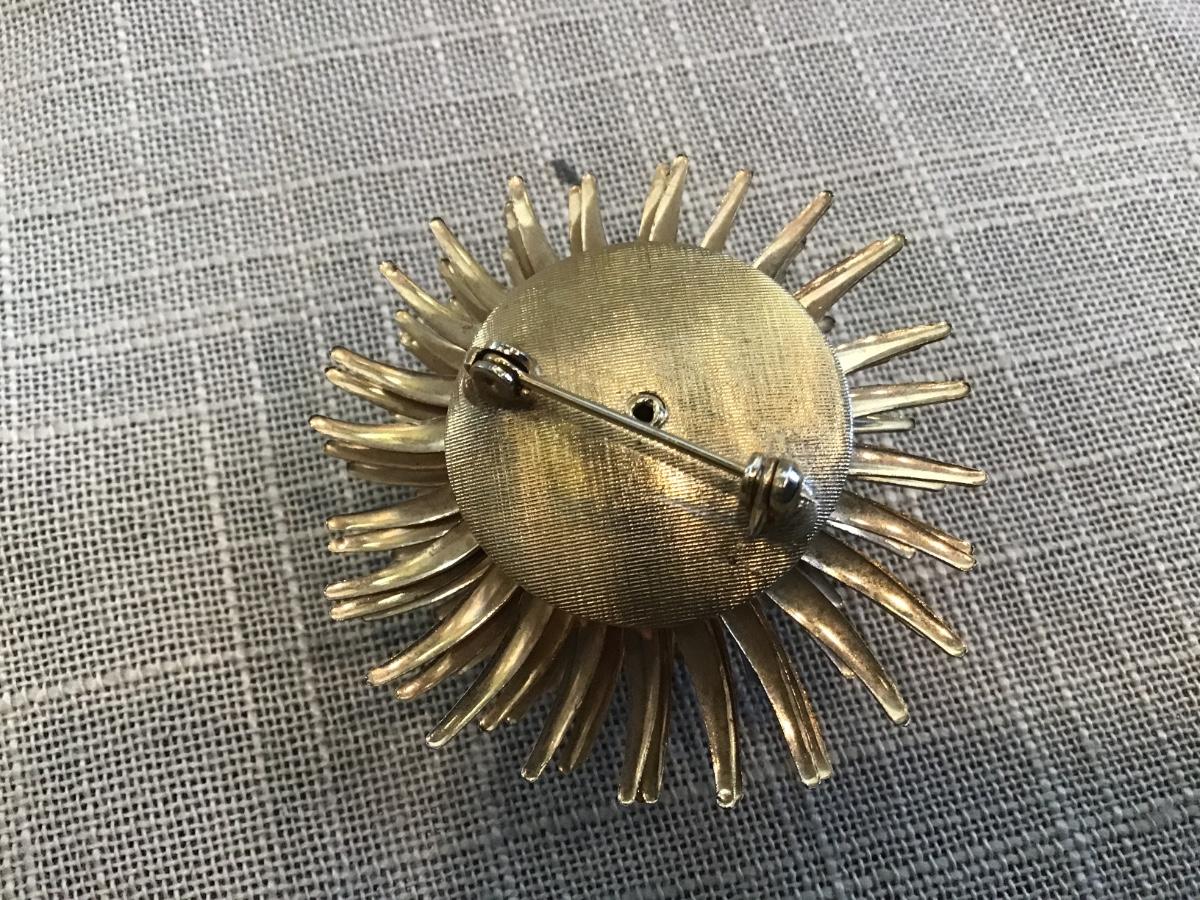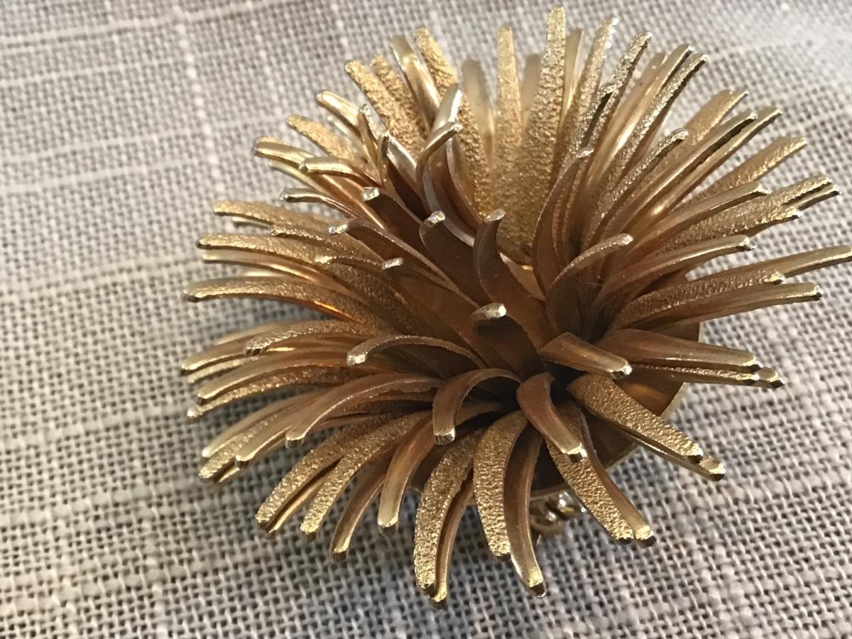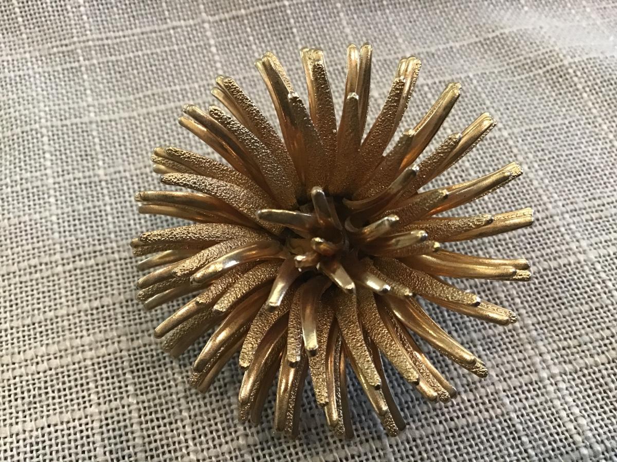 Sea Urchin Flower Or Starburst Gold Tone 3d Spiky Brooch Pin Star
