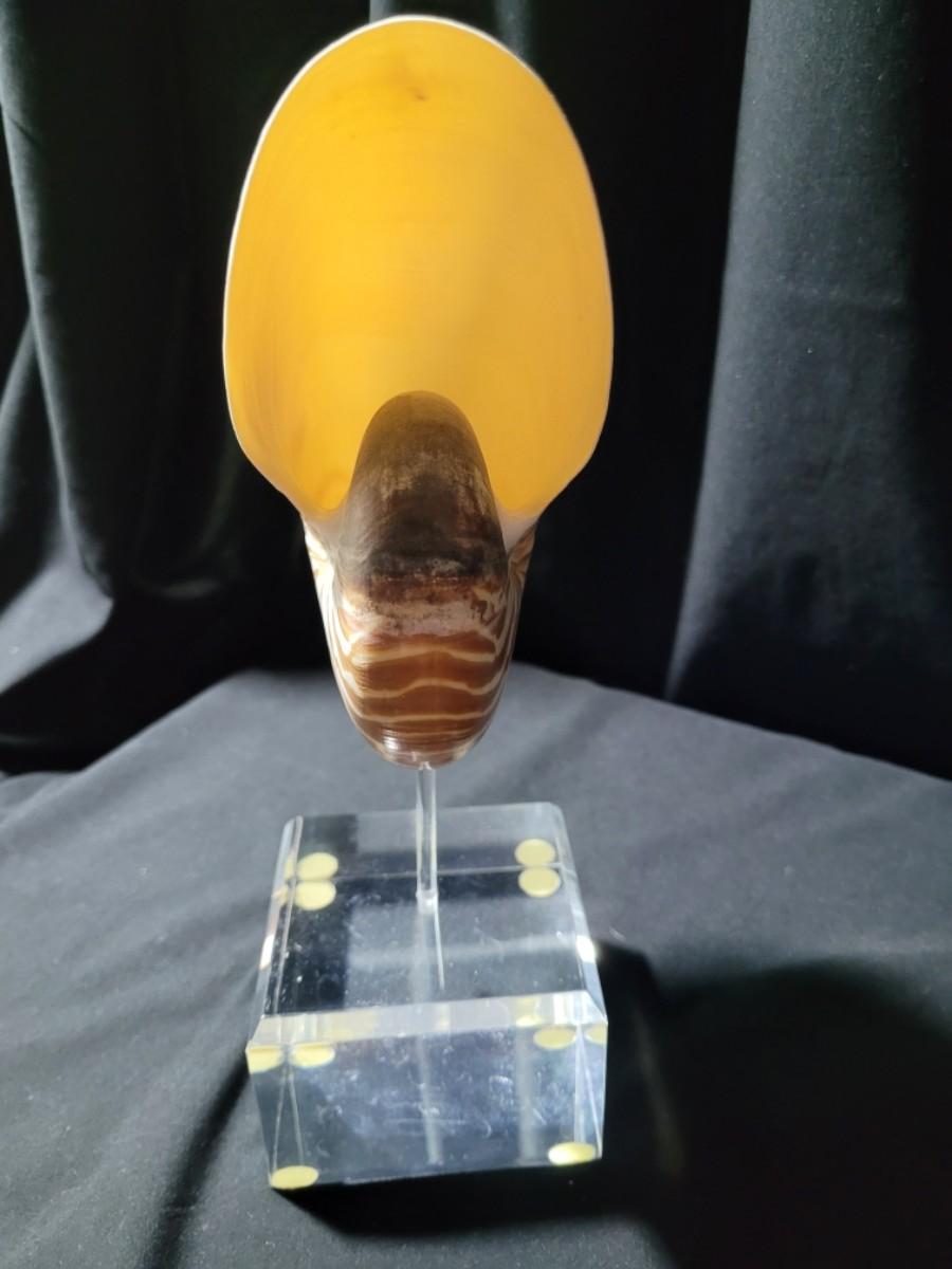 This beauty was donated by the original owner and has a stand. It is in excellent condition, and was featured in displays in a Bay area boutique. Size is ~ 4.75 inches wide and 6 inches tall.