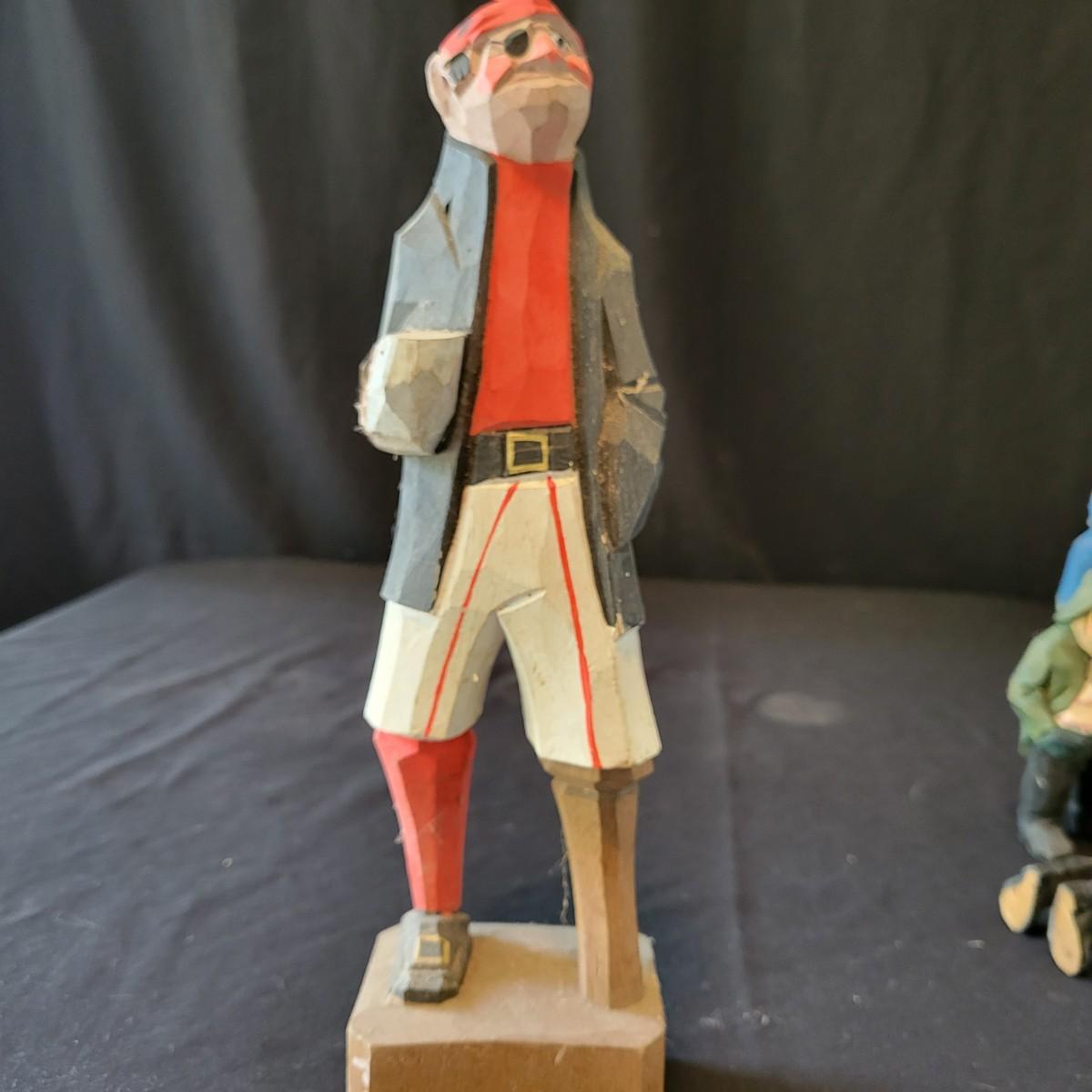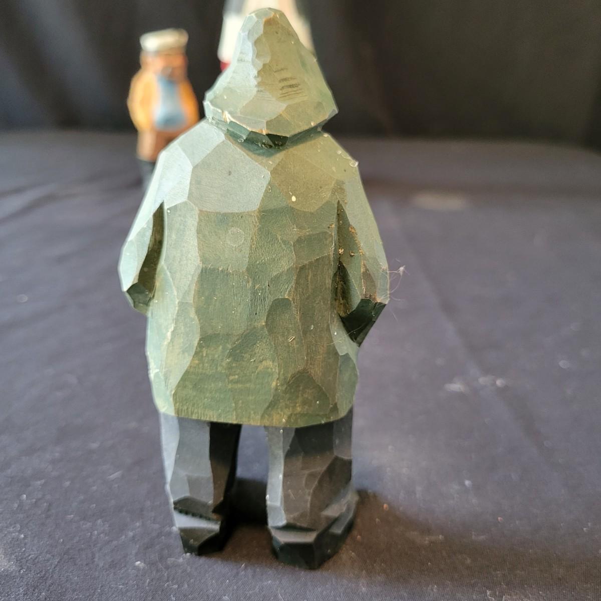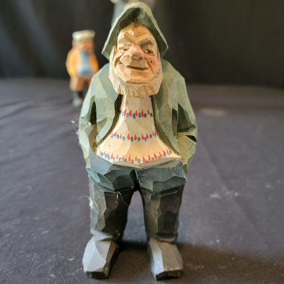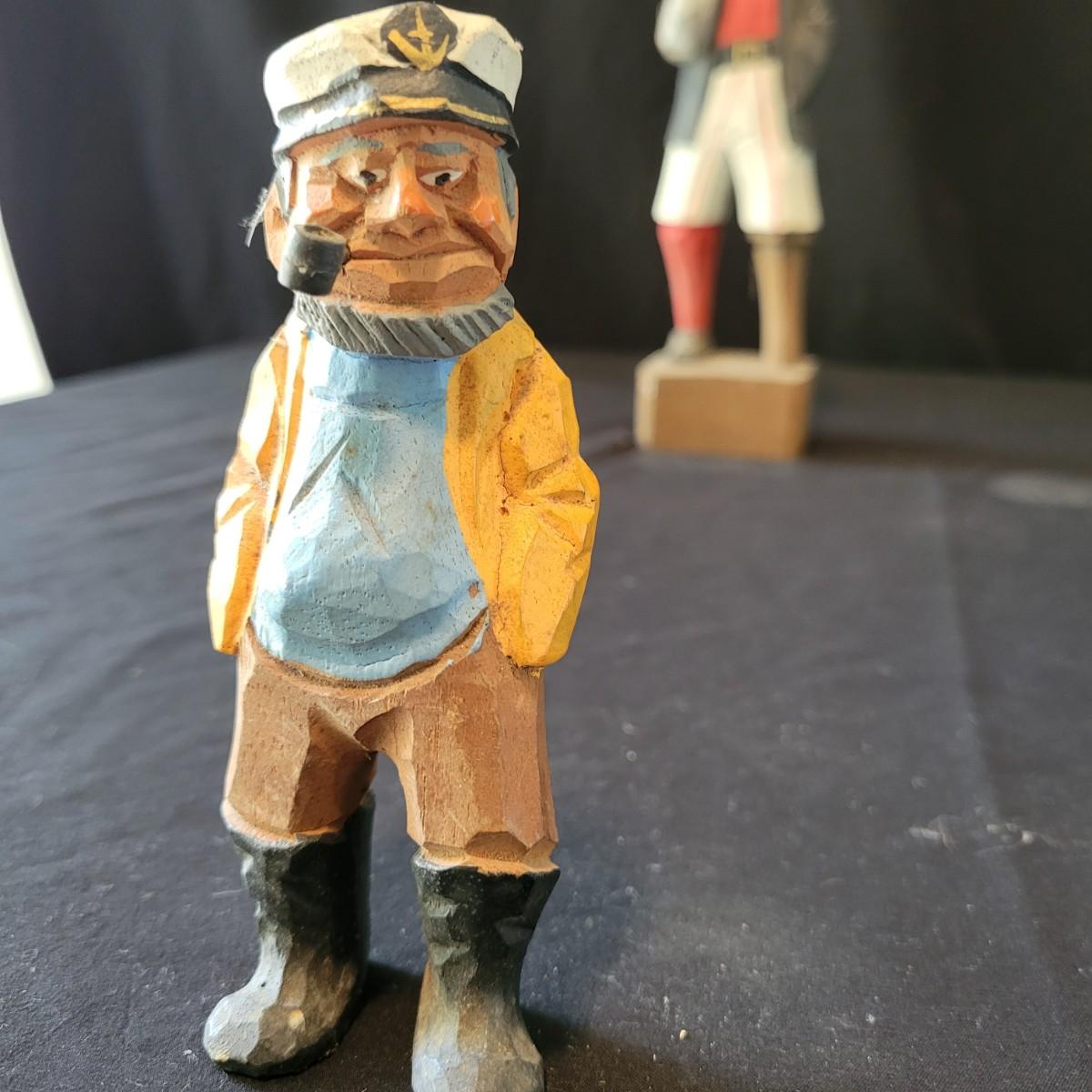 5 carving of seafarers in colorful paint schemes. None of the pieces have signatures and all are in good condition. Largest carving is approximately 12" tall. Shipping available