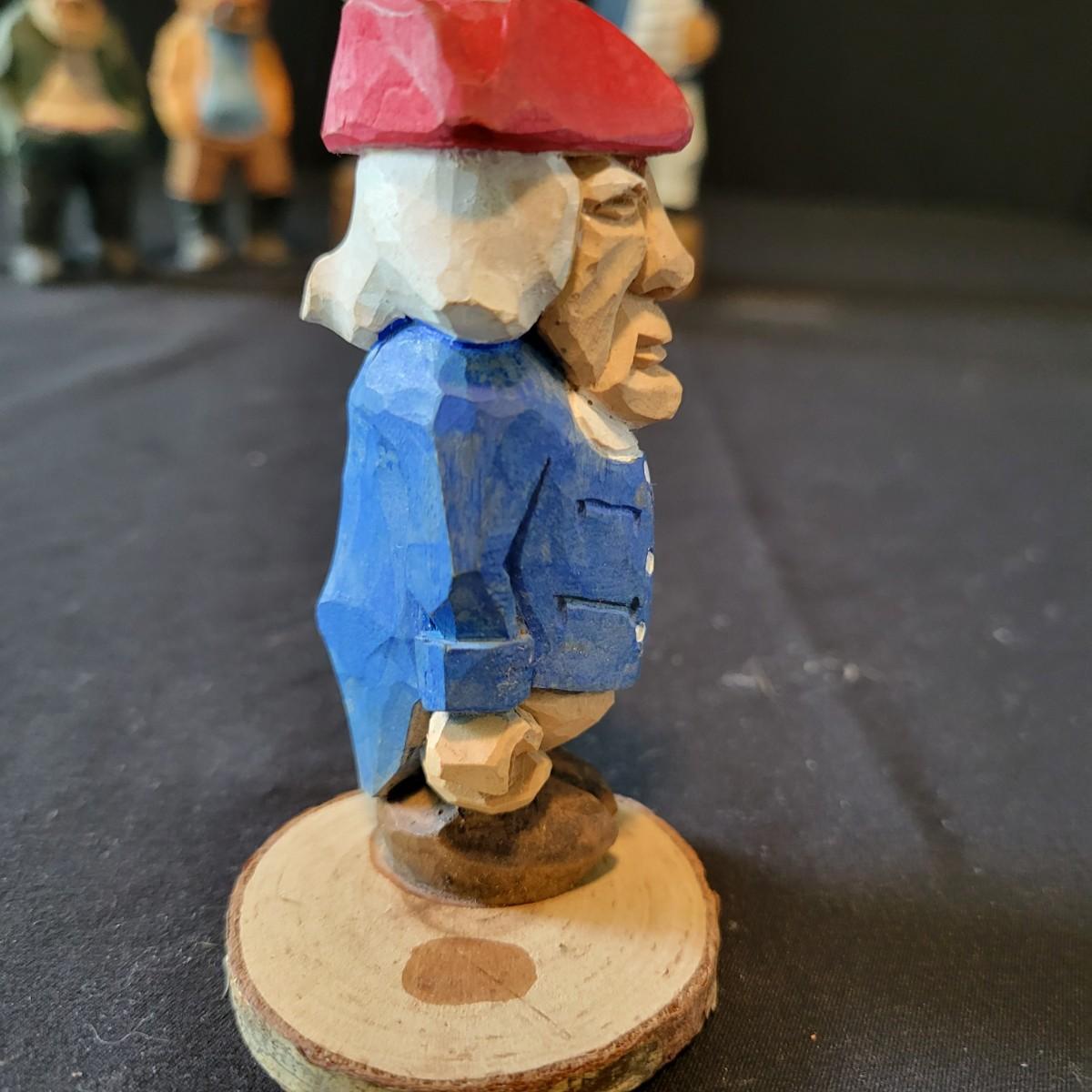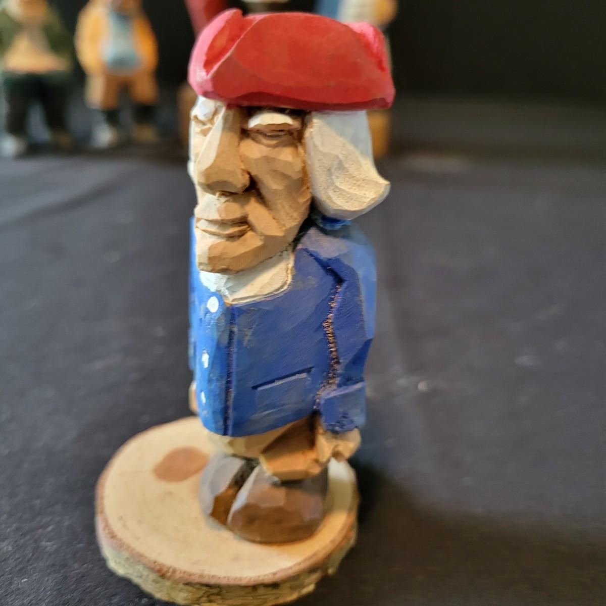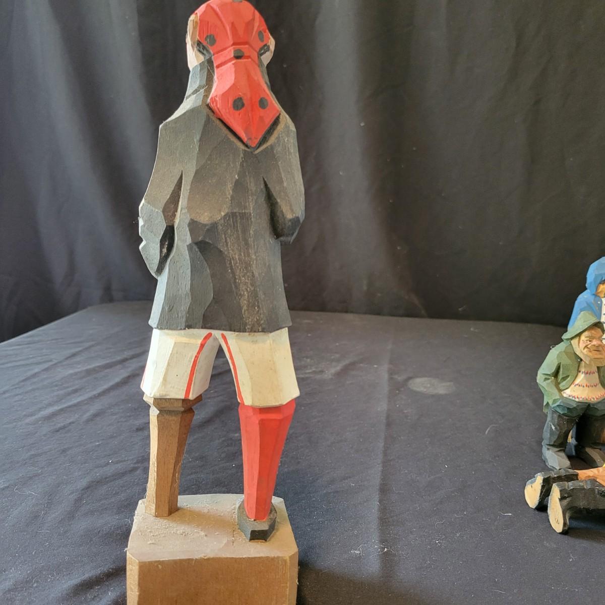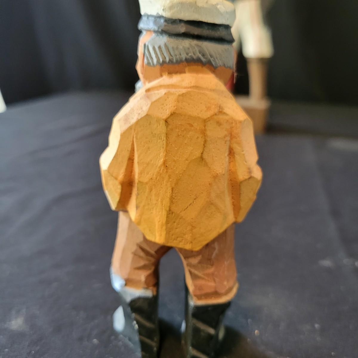 5 carving of seafarers in colorful paint schemes. None of the pieces have signatures and all are in good condition. Largest carving is approximately 12" tall. Shipping available