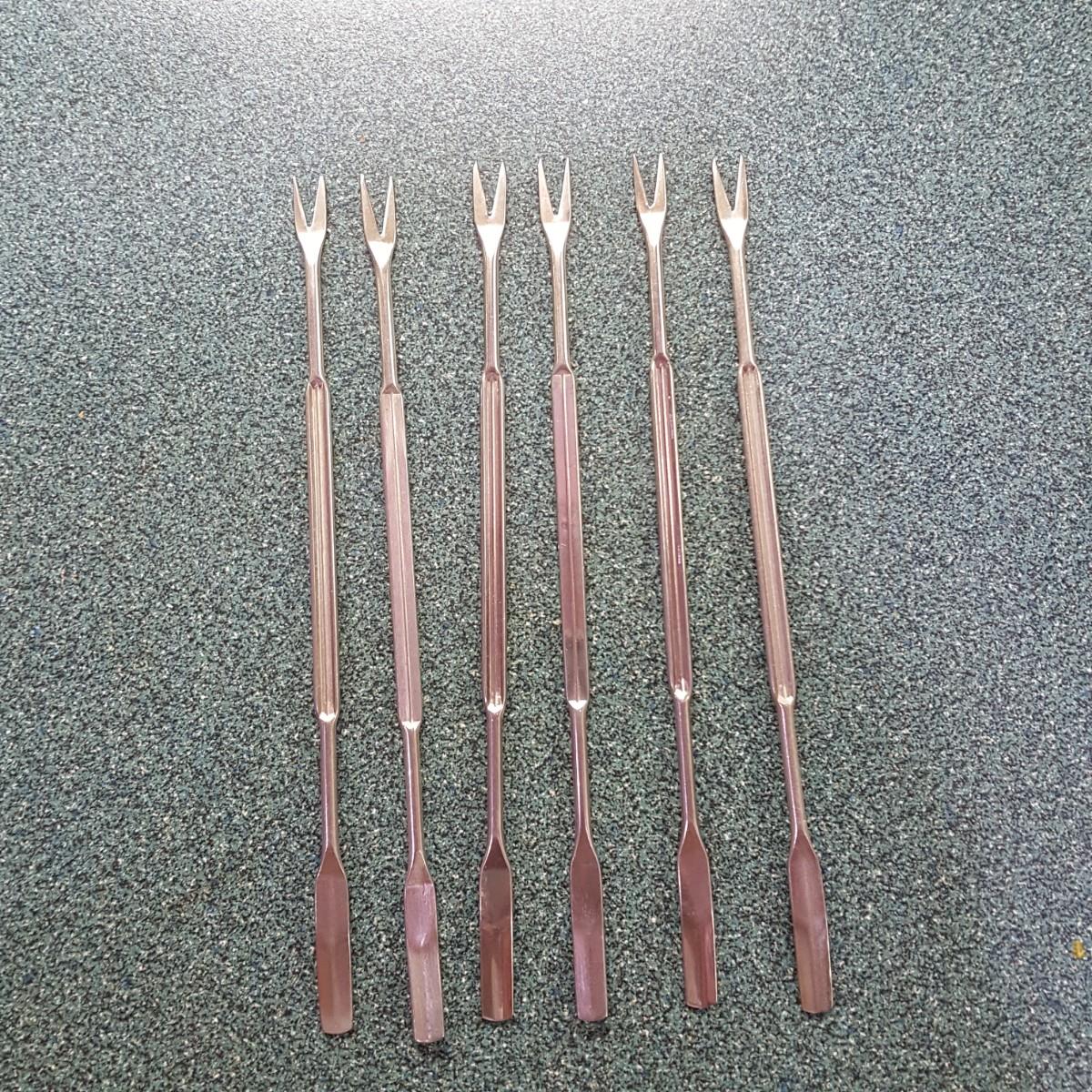 Everything you need for crabs, oysters or lobster. This lot contains 6 metal forks (7 inches), 2 wooden handled pickers (6 inches), and 2 metal crackers (6 inches). Local pick up only.