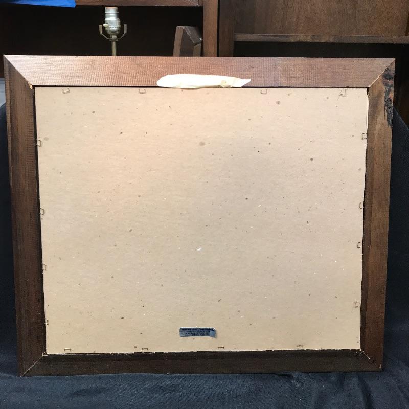 This piece was sealed in it’s original packaging before we opened it to take these pictures. Therefore, it is in most excellent condition with minimal storage wear; see pictures. This framed piece measures 17 1/4“ x 20 1/2“.