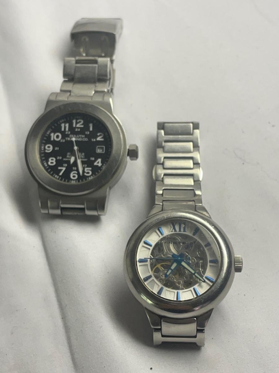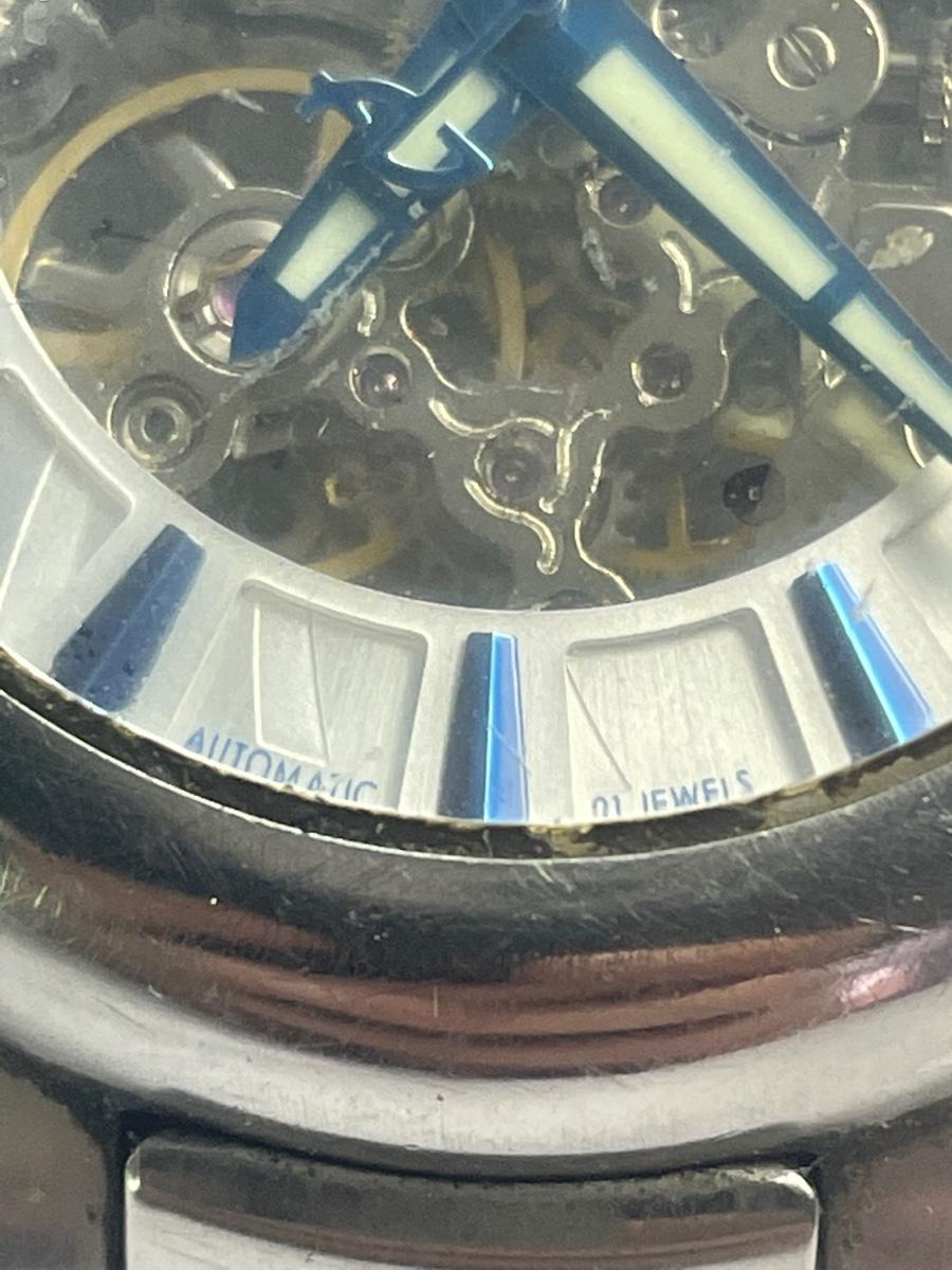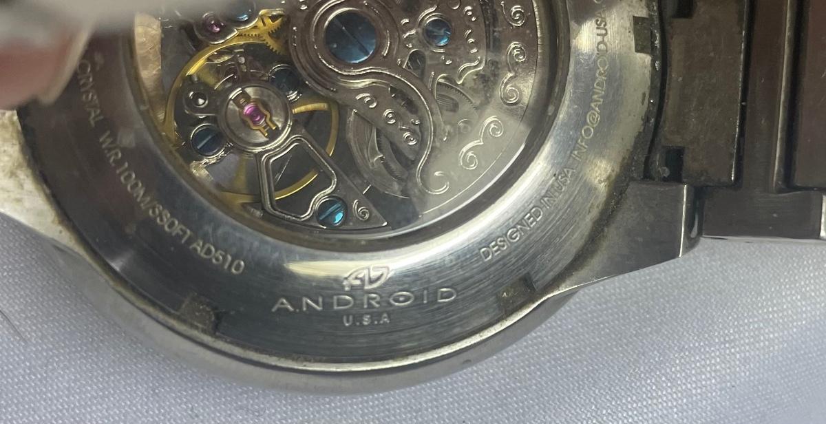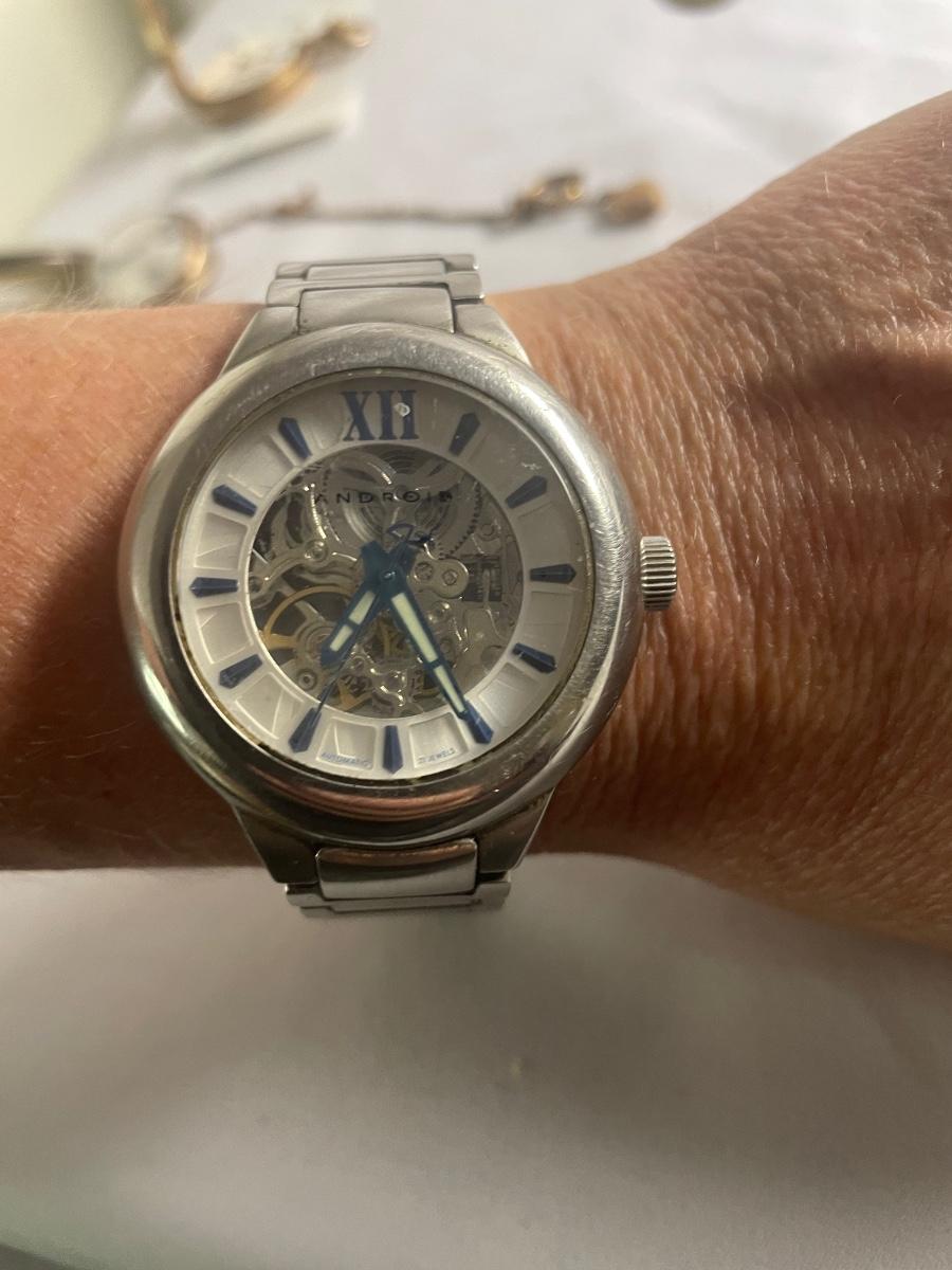 Two quality automatic watches both in good and working condition (a little dirty and typical minor light scratches that are to be expected in a pre owned watch). The Seagull Android TY 2807 is a nice heavy watch that shows the gears and inner workings on the watch face. The other watch shows the gears etc on the back.