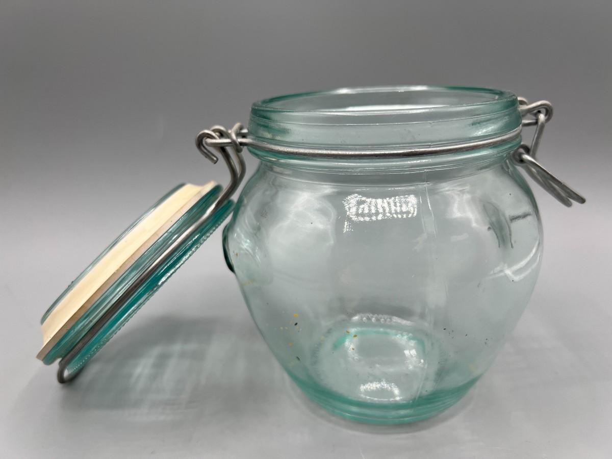 Sealable Ingredient Kitchenware Glass Mason Jar, there is no signifncant cracks or chips to the jar and is in good useable condition. Check pictures for more details and for sizing.