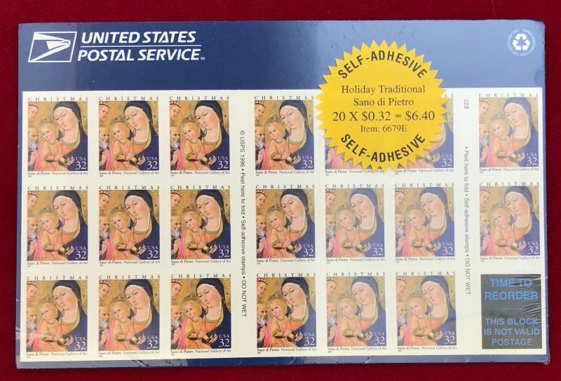 Sealed Sheet US Poatal Service Christmas Stamps Sano di Pietro 32 Cent
