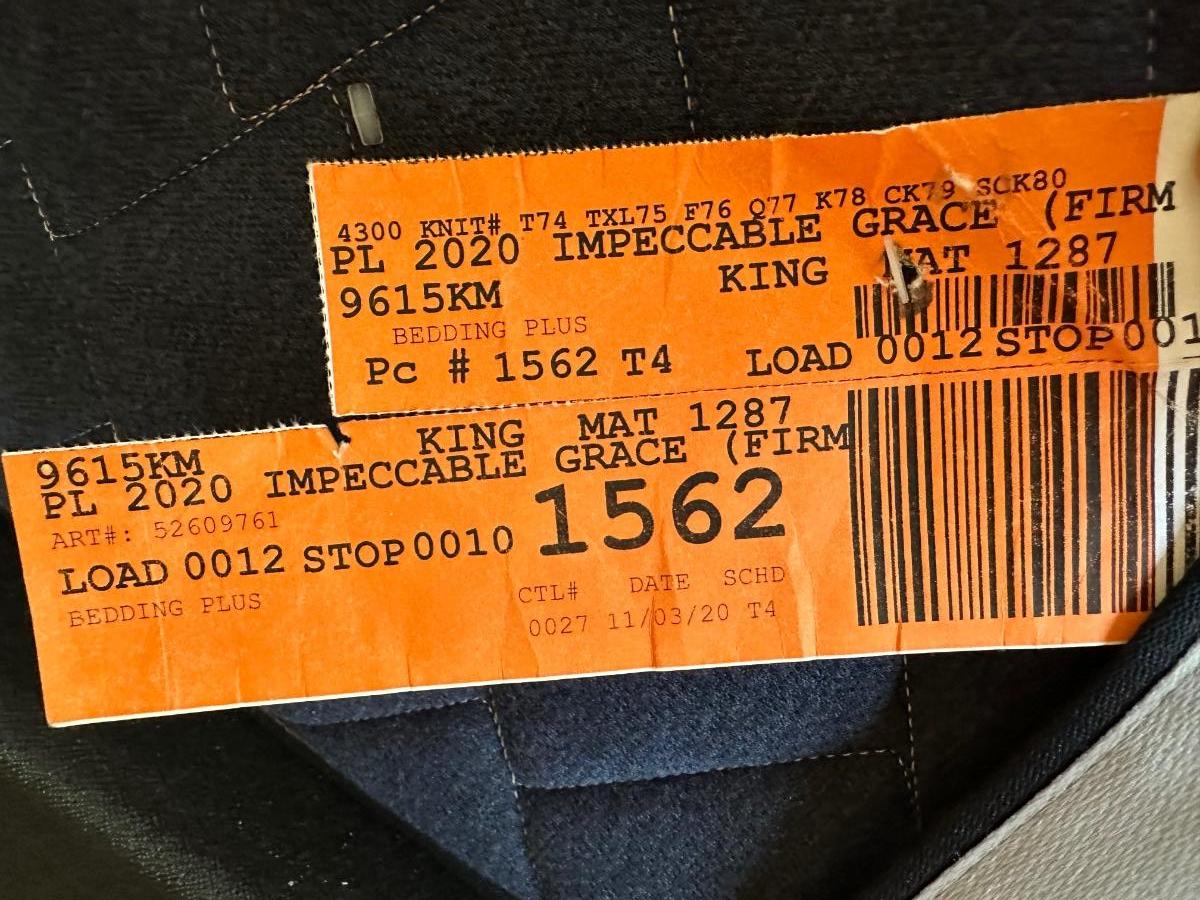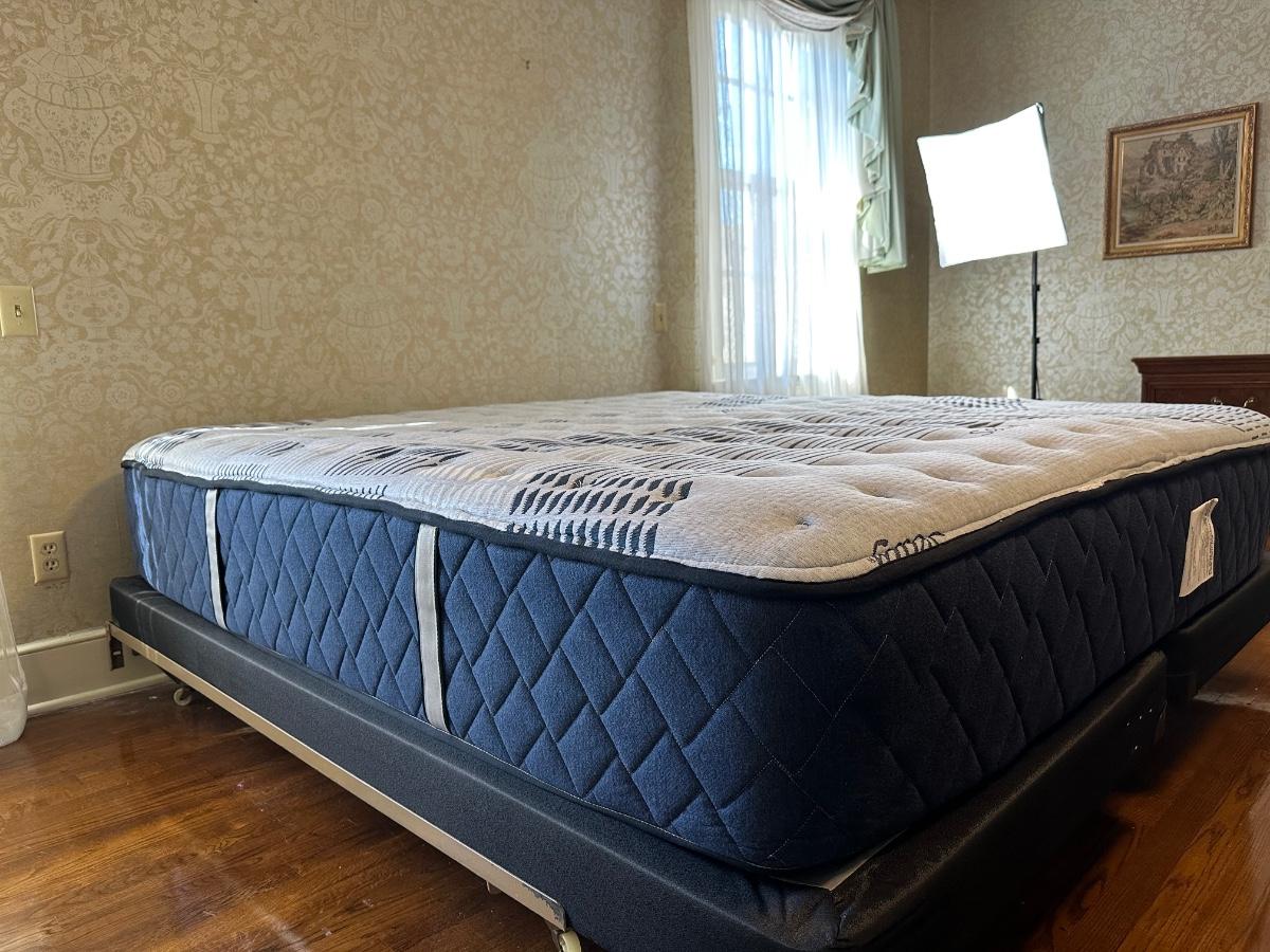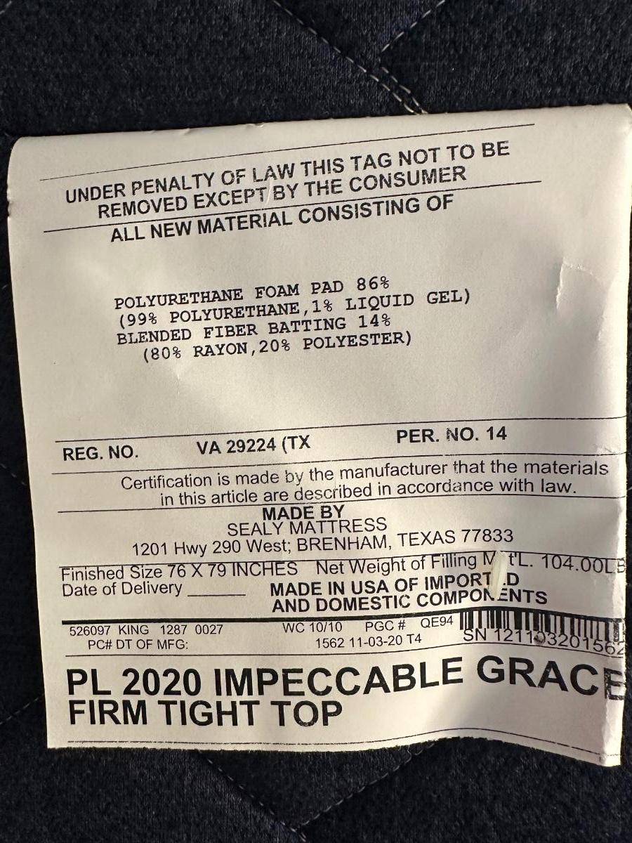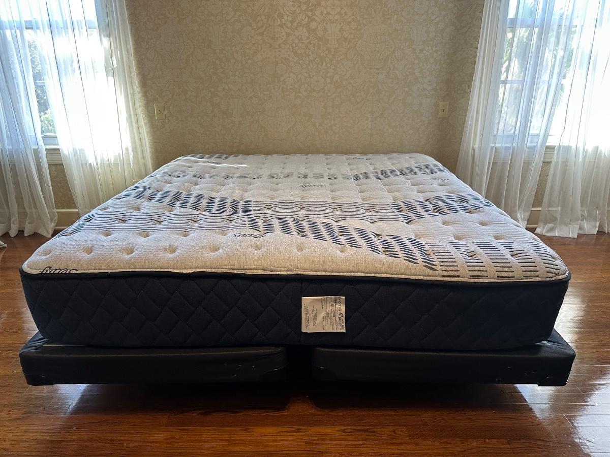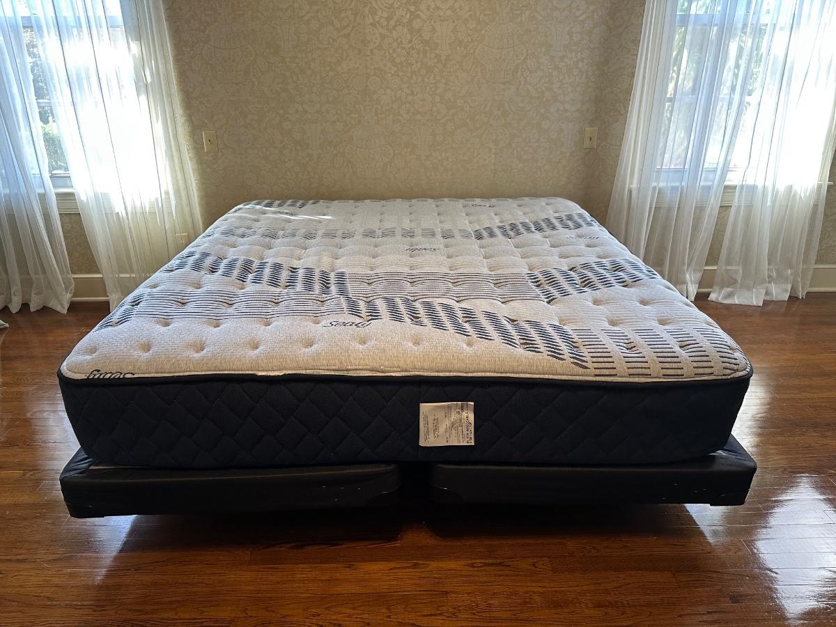 Sealy king mattress, twin box springs and bed frame. Manufactured: 11/03/20.