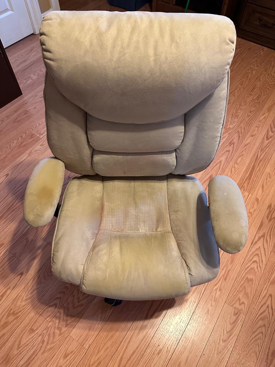 Chair has some discoloration on the bottom seat cushion. (Pictured)
