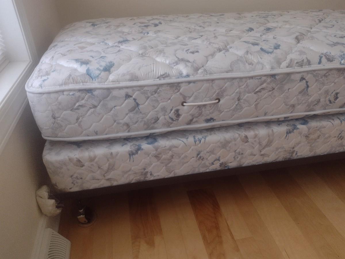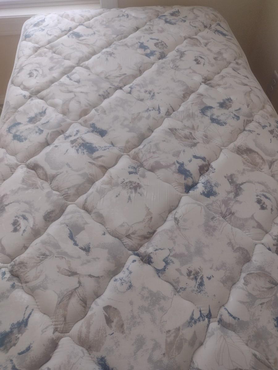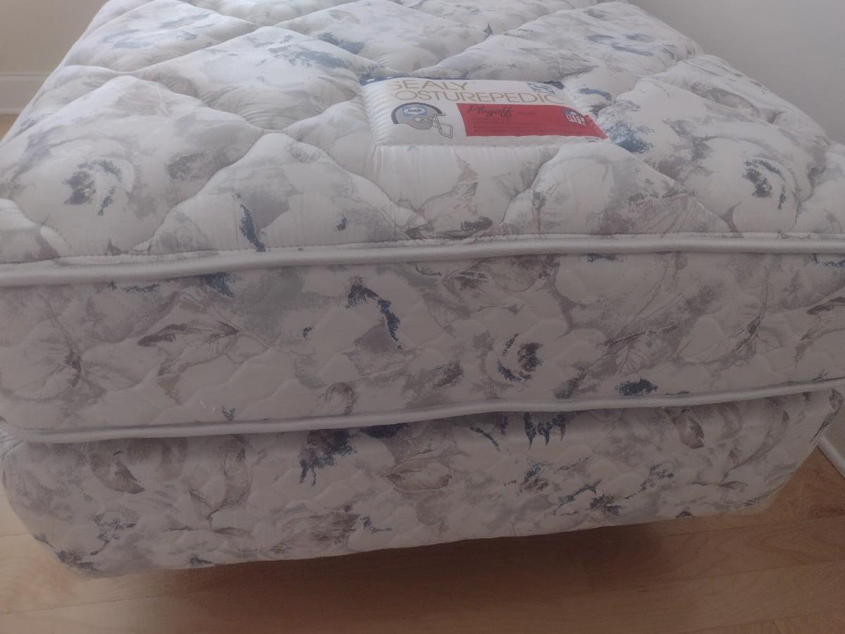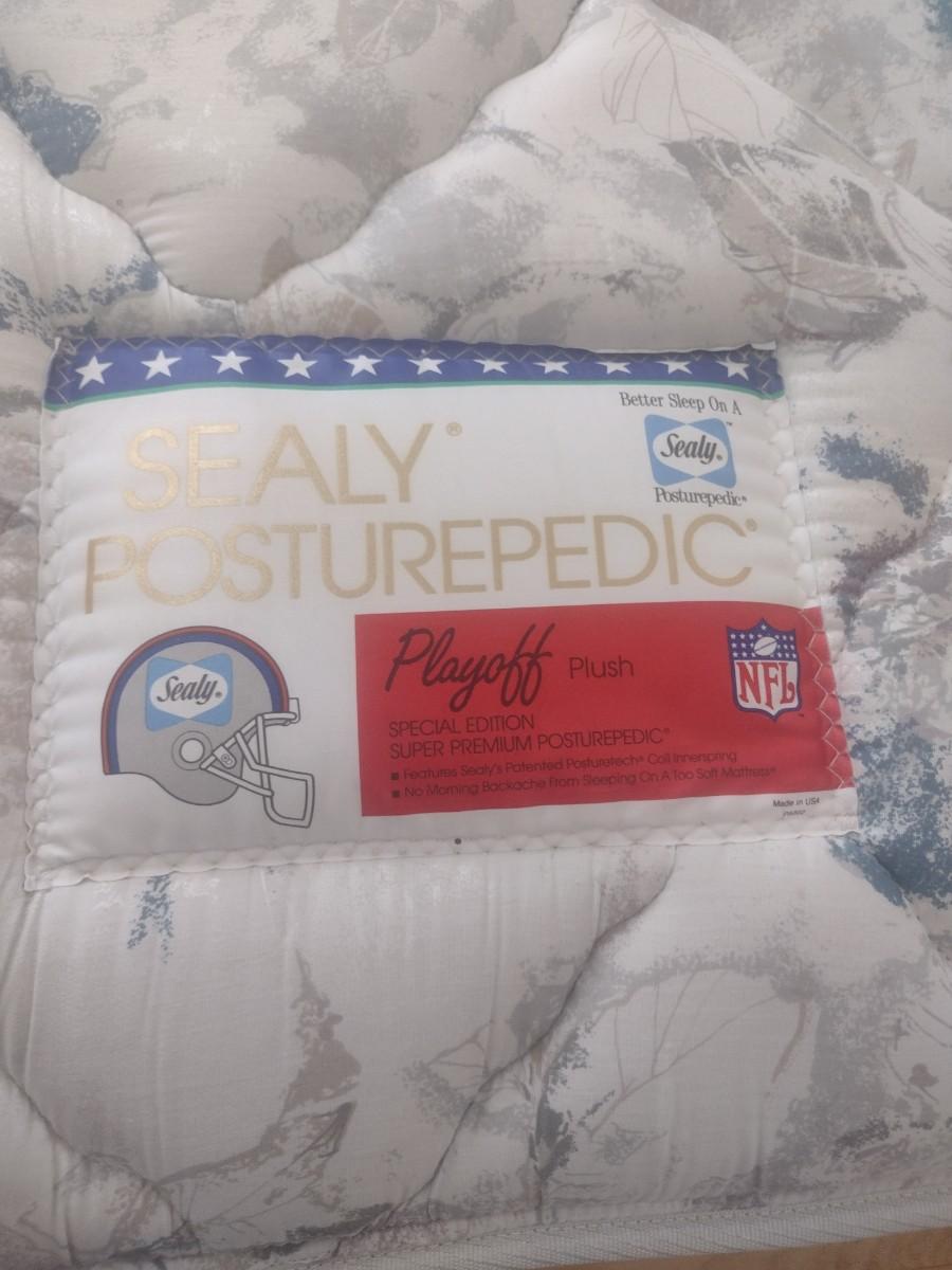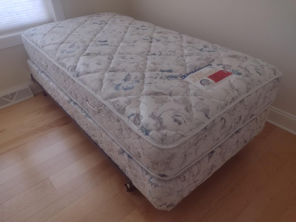 Sealy Posturepedic Twin Mattress and Boxspring Set on Metal Bed Frame
