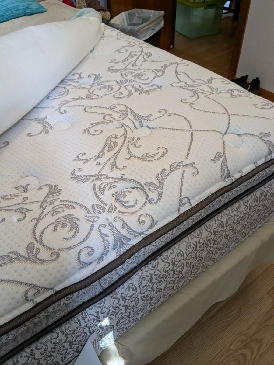 Sealy Queen Bed Frame, Mattress, and Bedding