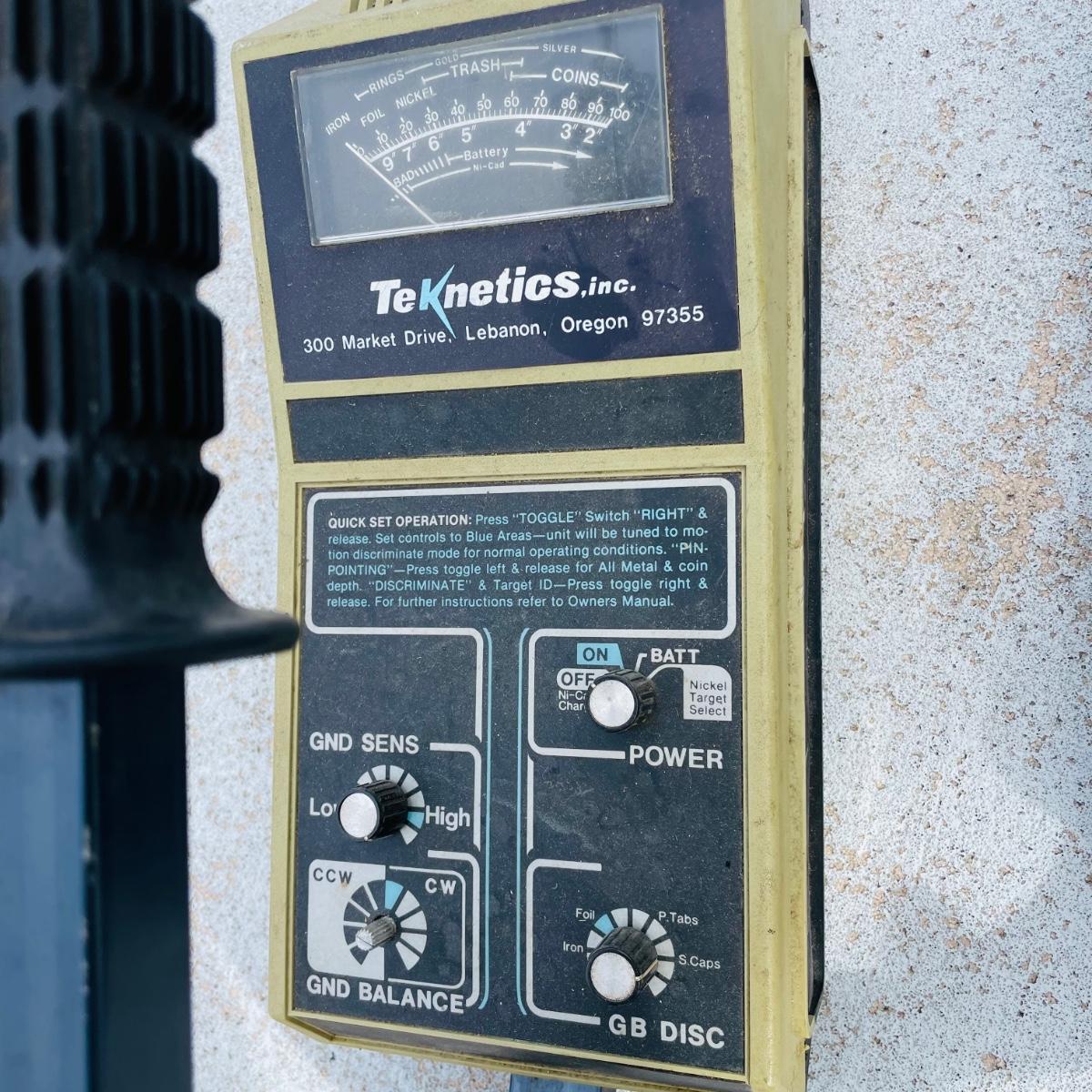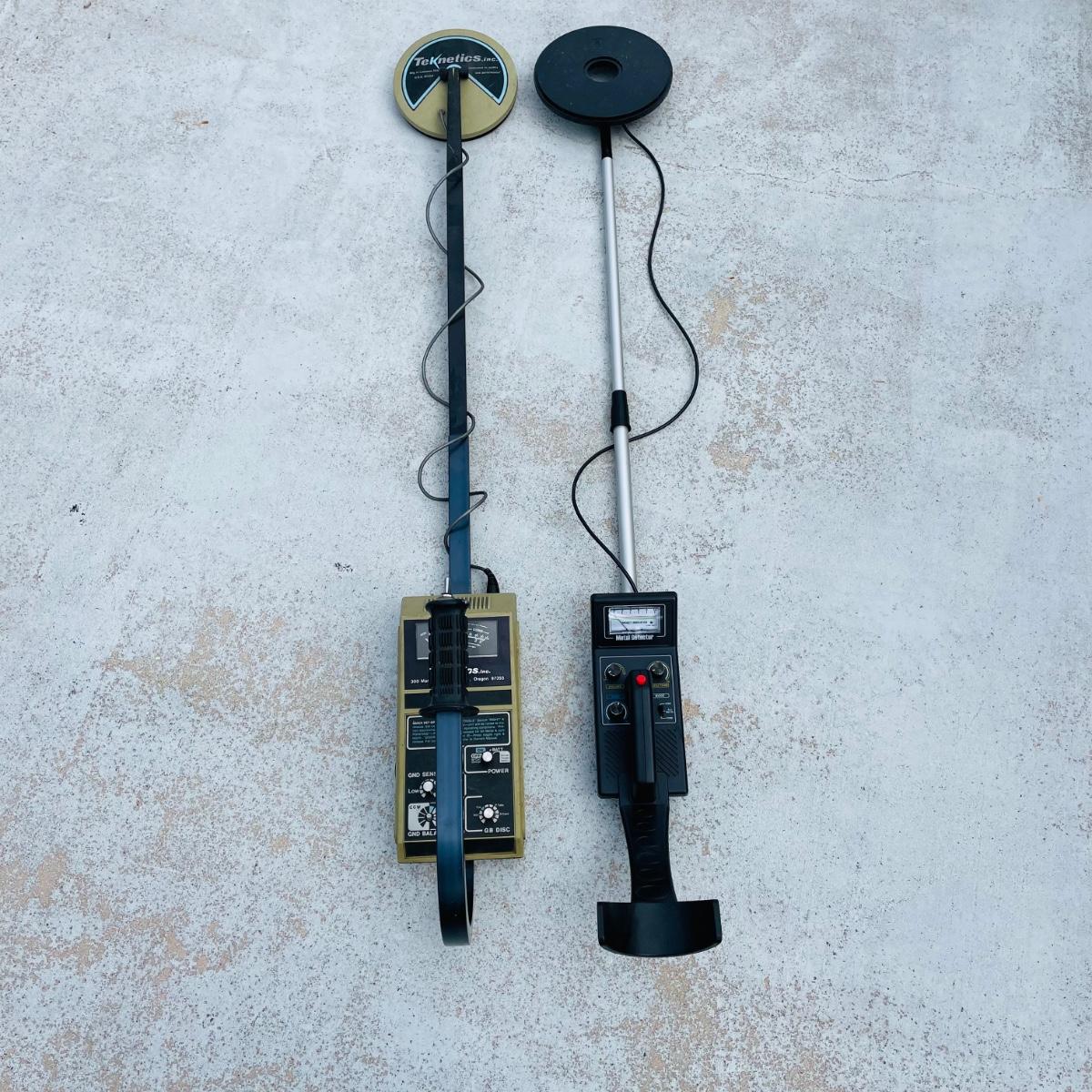 2 light weight metal detectors. Teknetics Mark III does need new batteries. Can not verify it’s working condition. The body of the detector is in good condition. The 2nd Metal Detector is in good working condition as well as the body of the detector. Both are adjustable.