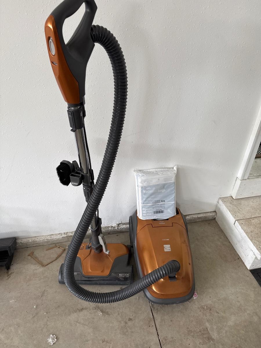 Sears 200 series canister vacuum with bags. Heaps filter with micron magic bags. Has recoiling cord. Tested and it really sucks as it should.