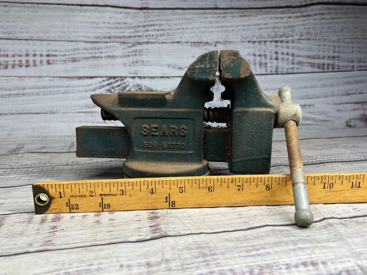 Sears 3 1/2" Anvil Vise, there is no significant damage and is in good useable condition. Check pictures for more details and for sizing.