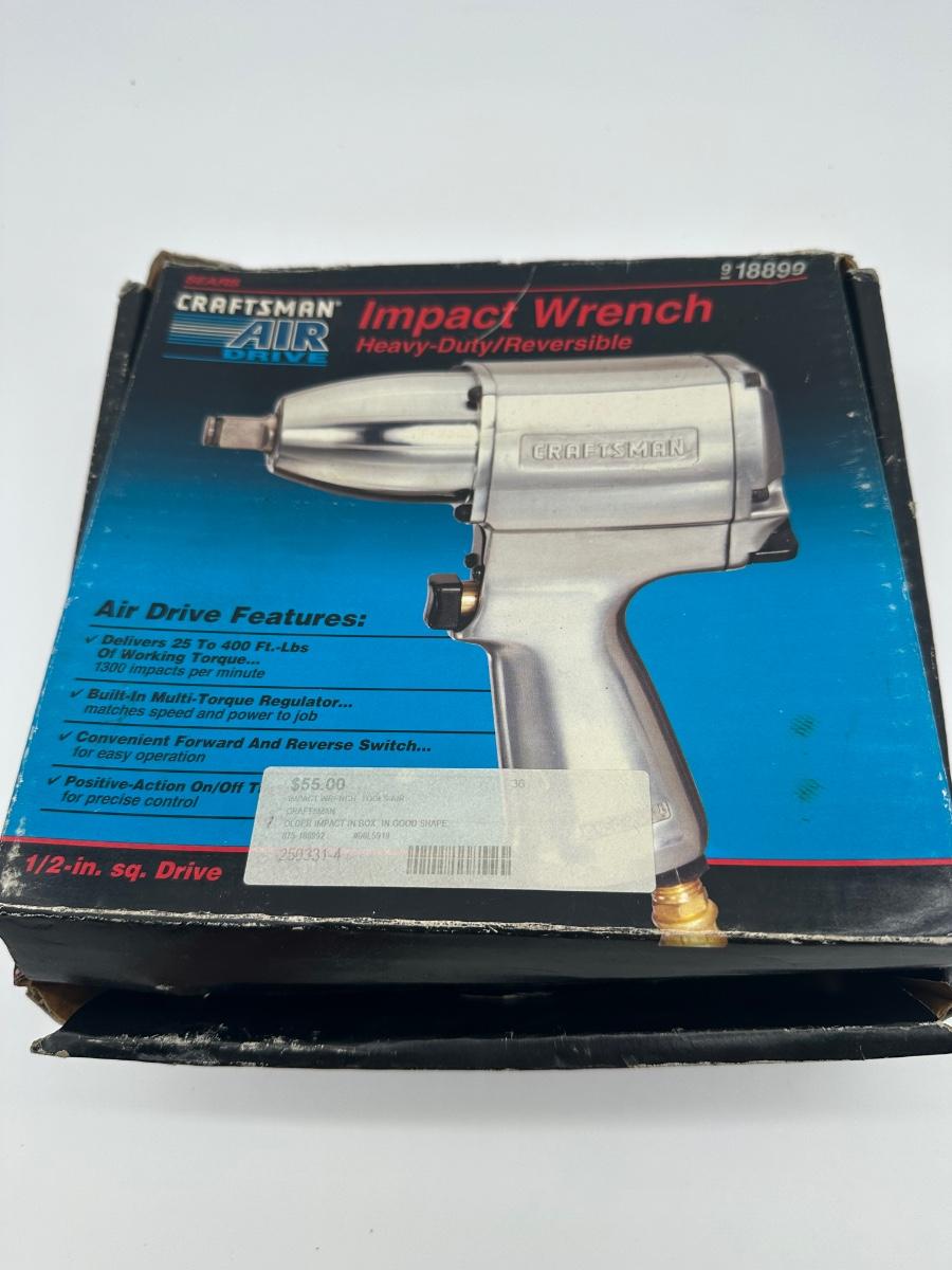 Craftsman Air Drive 1/2-inch impact wrench, heavy-duty and reversible. Includes original box and paperwork.