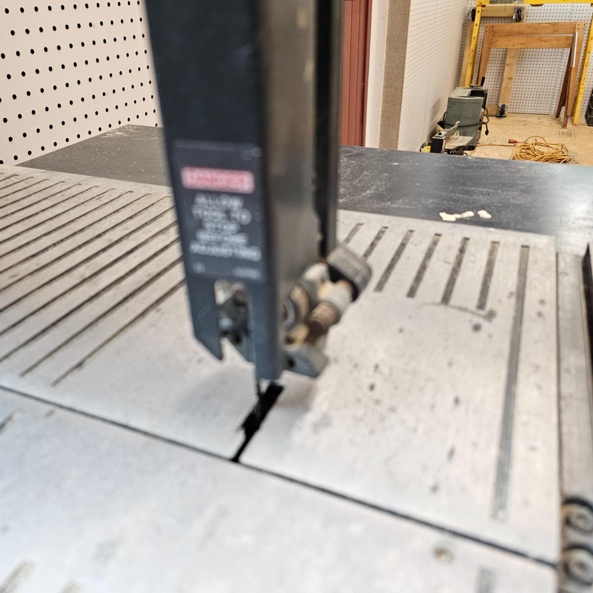 One Craftsman band saw with stand. Saw has 6" depth cut and built in work light. Runs an 80" blade or a 1/2" sanding belt. In addition head will tilt up to 45° for angle cuts. Overall size is 32" x 32" x 60"H. Unit powered on when plugged in. See photos for details. Local pickup only.