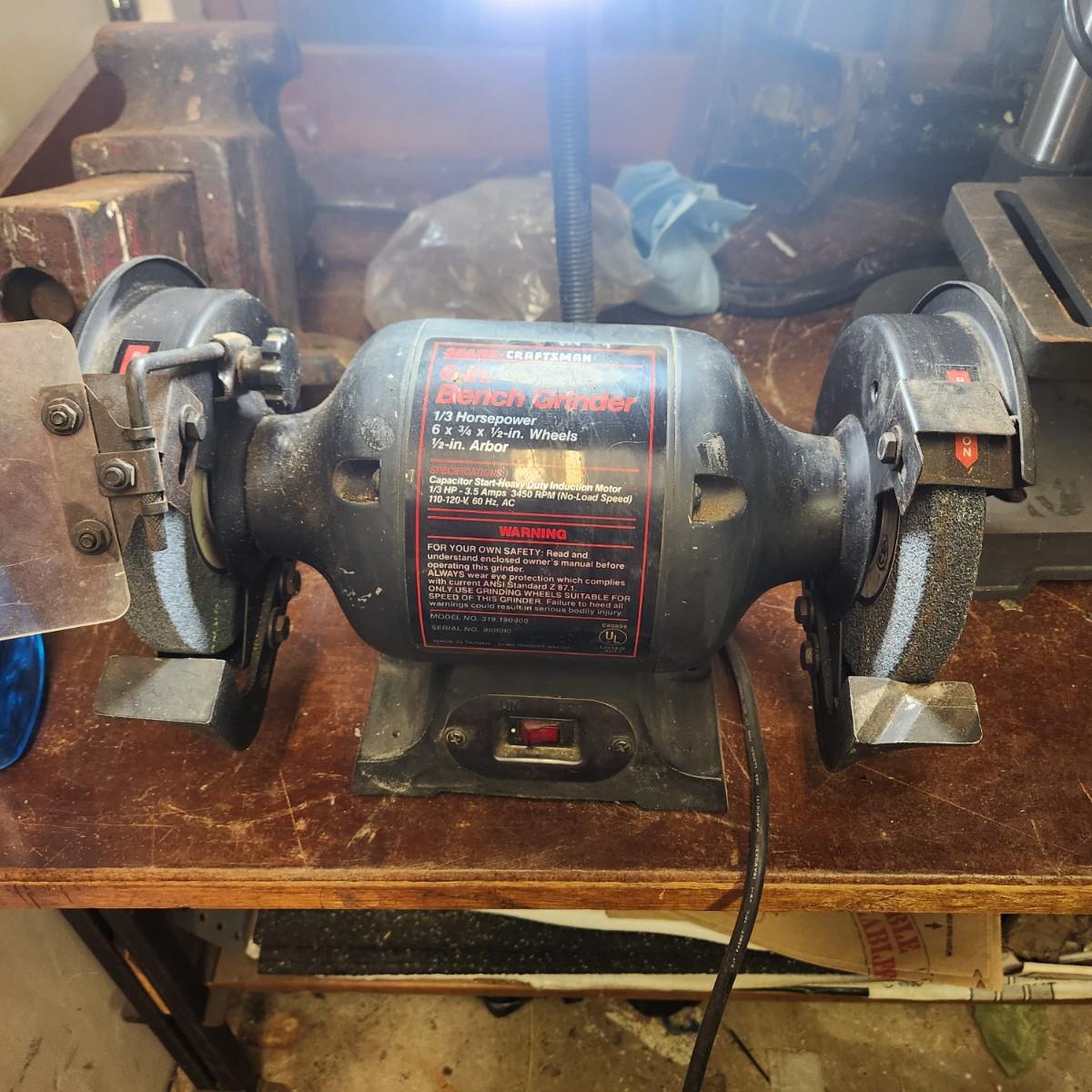 Sears Craftsman 6" Bench Grinder 1/3 HP with Snake Lamp Light Tested