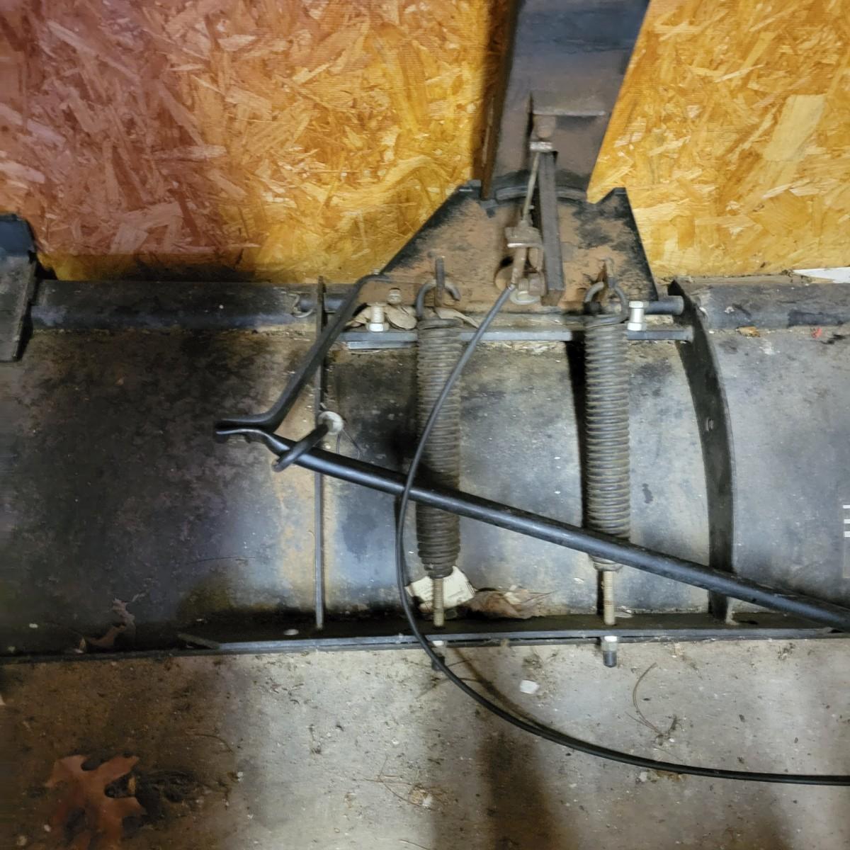 A Craftsman lawn tractor snow plow made out of steel and has a handle to angle the blade. Measures approximately 48" x 38" x 16"H. Local pickup only. Winning bidder must bring assistance to help move and load this item due to its weight and/or size.