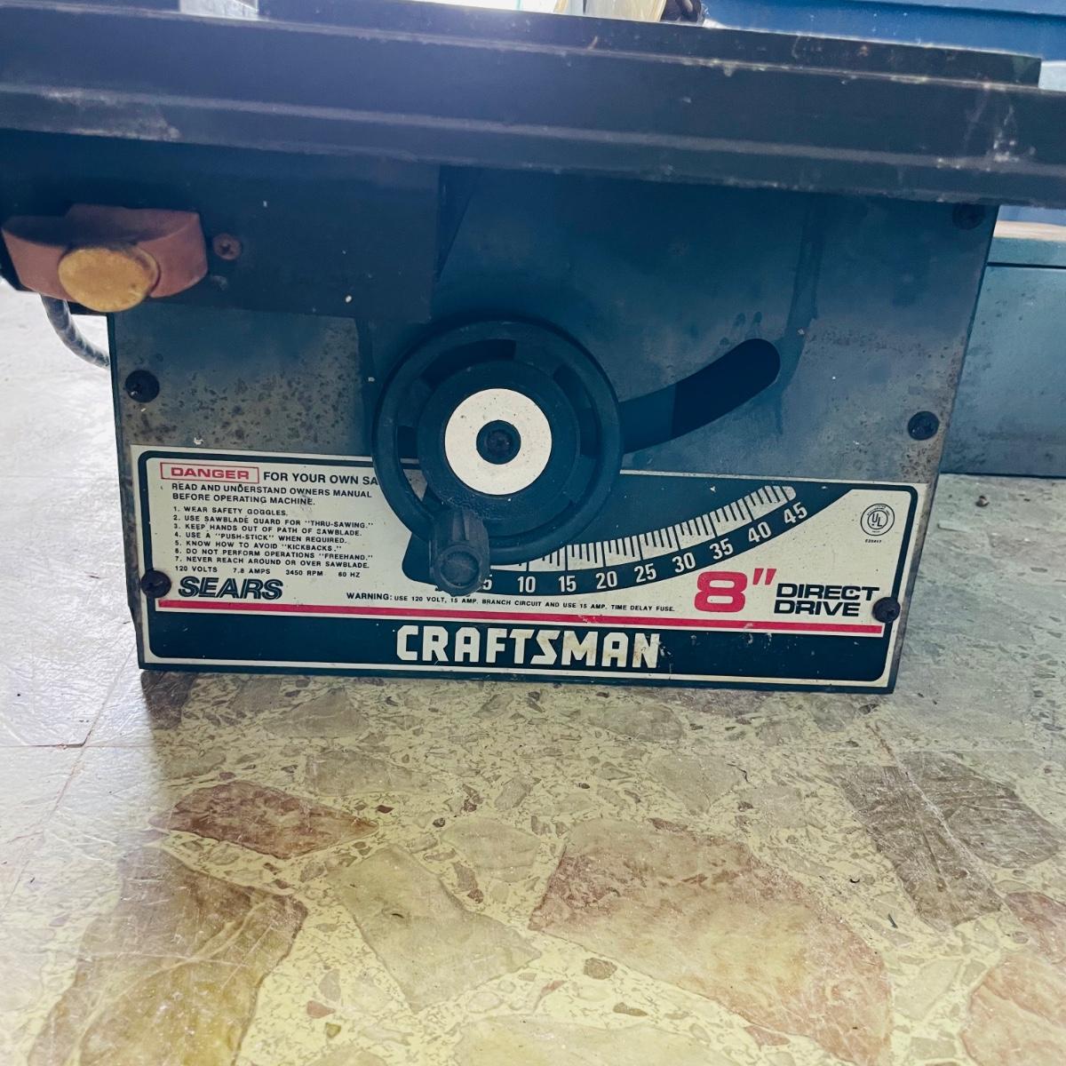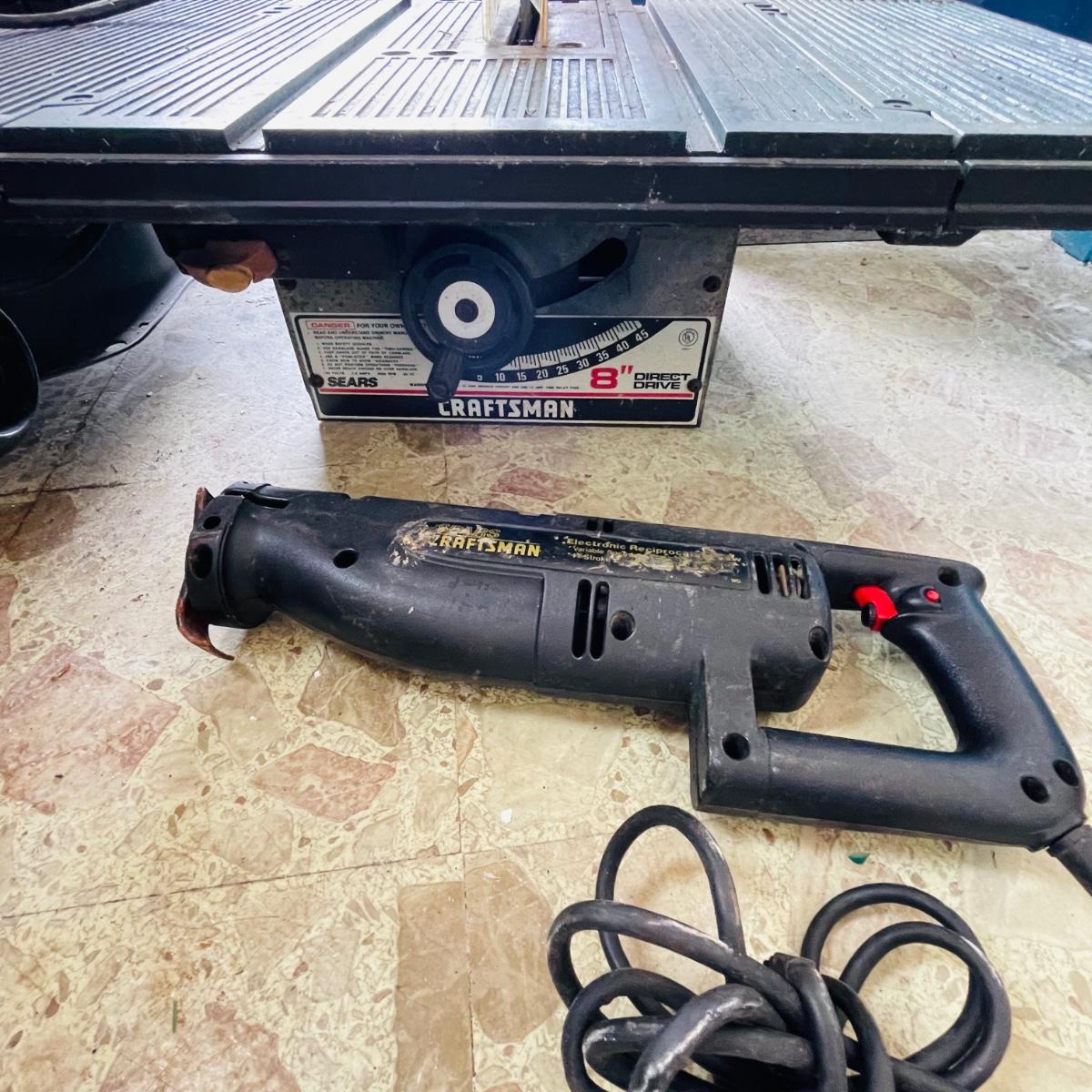 Lot includes a Sears Craftsman 8” Direct Drive table saw and an electronic Reciprocating Saw. Both saws power on.