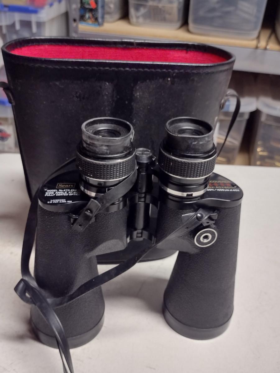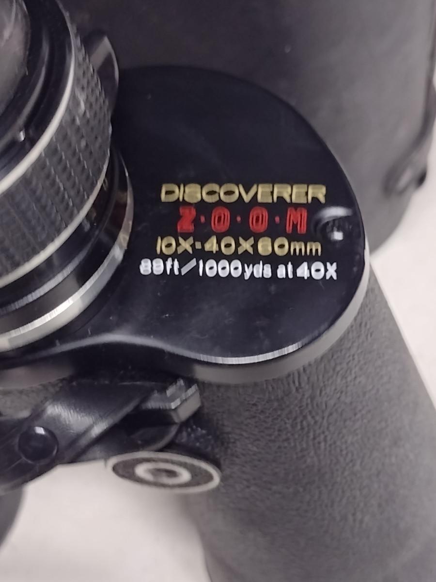 Sears Discoverer Zoom 10x 40x60mm Binoculars with Case. Missing one lens cover.