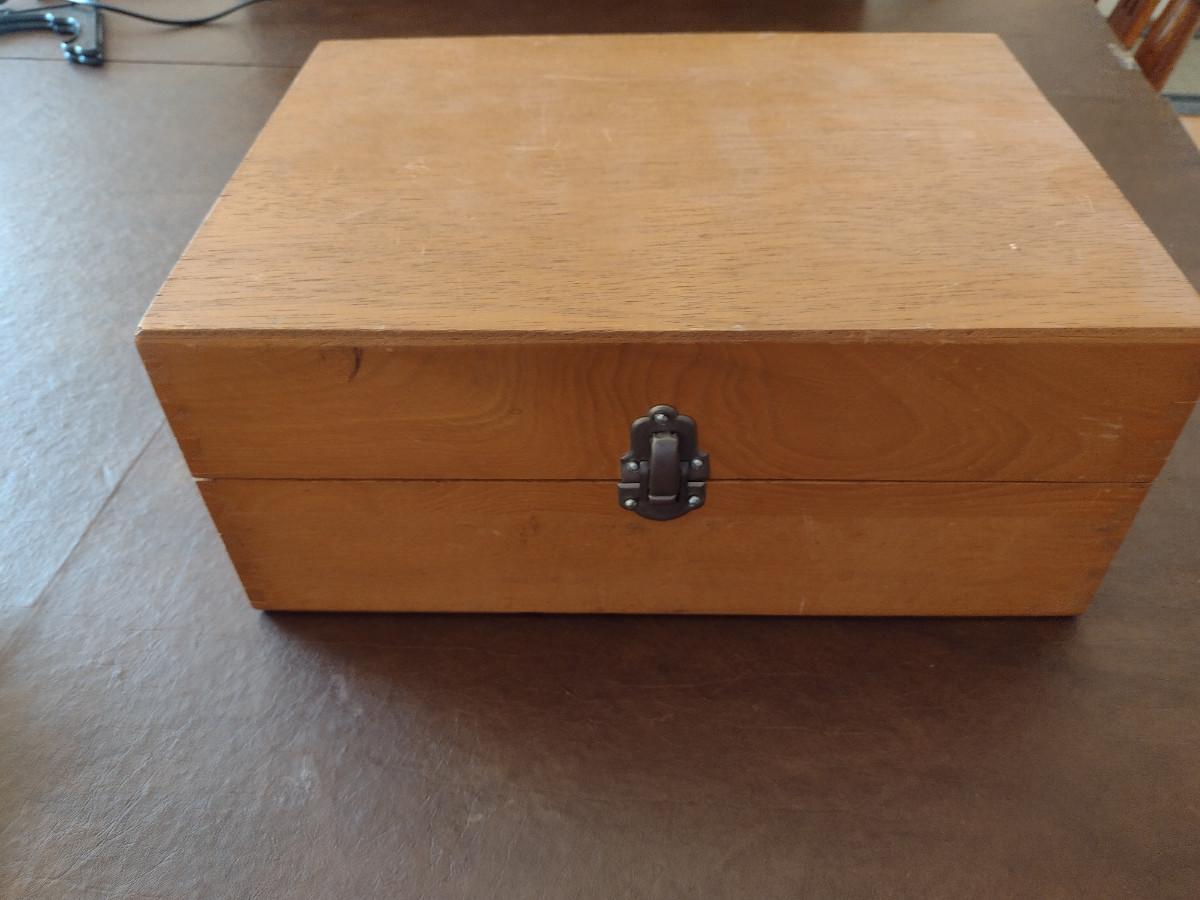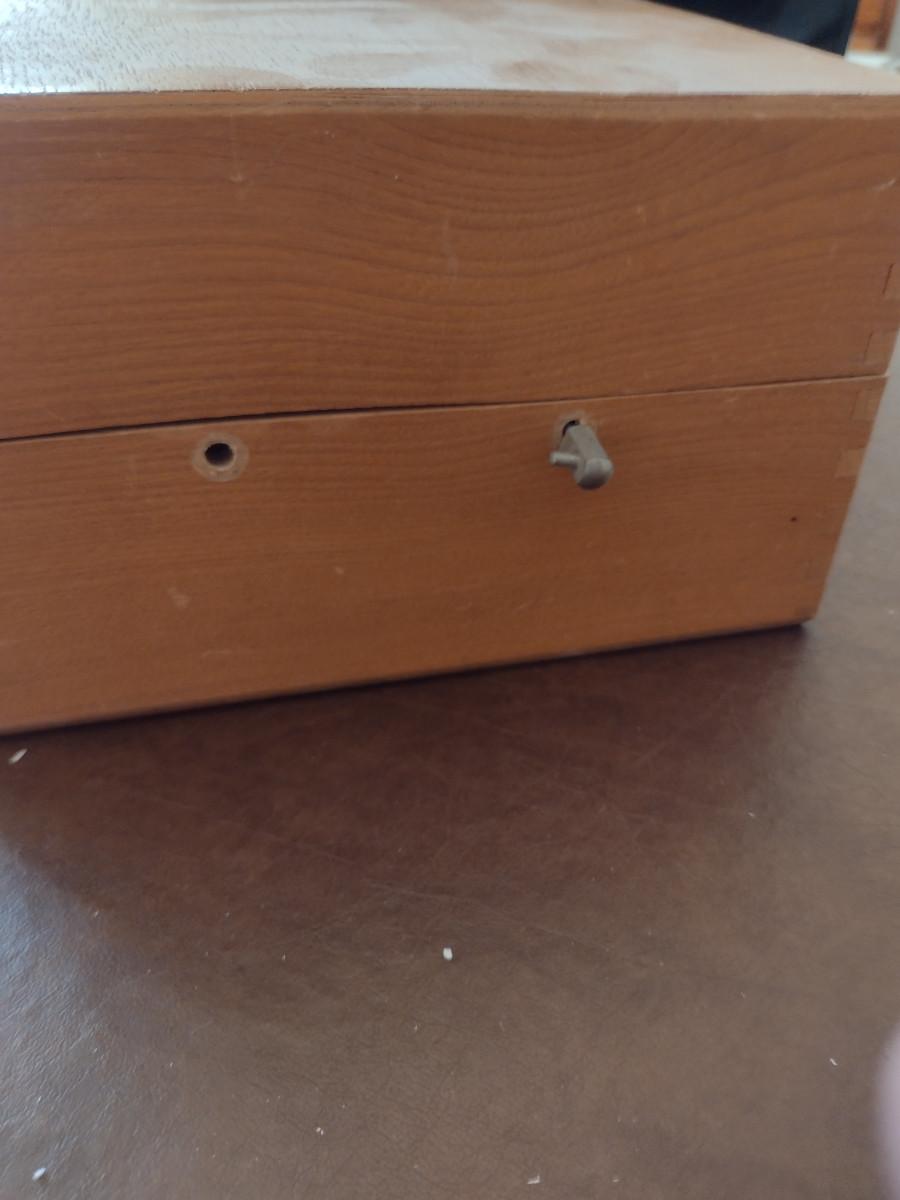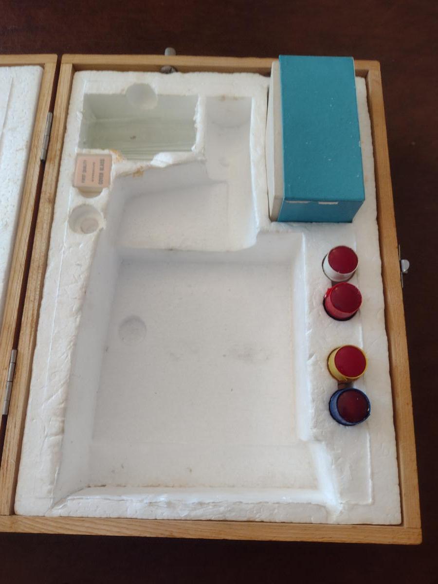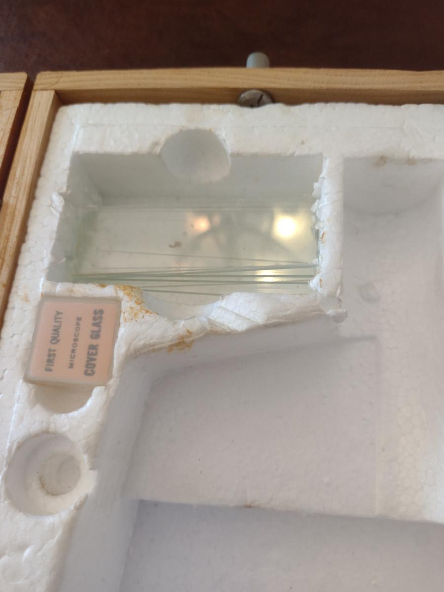 Sears Discoverer Zoom Microscope with Wooden Case- Model 4 6377. Carry handle on case is broken.