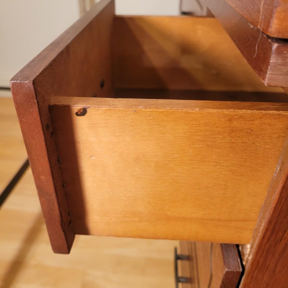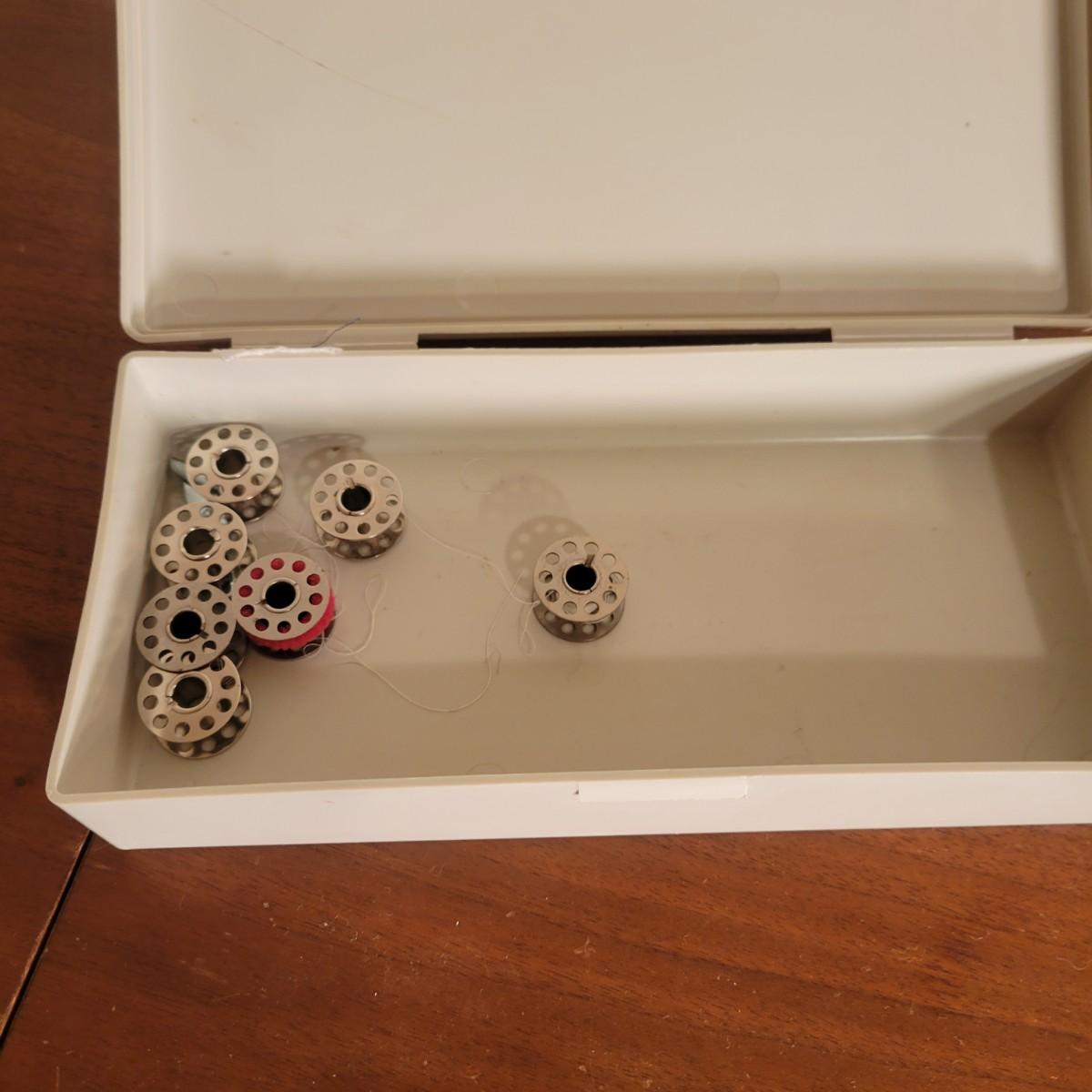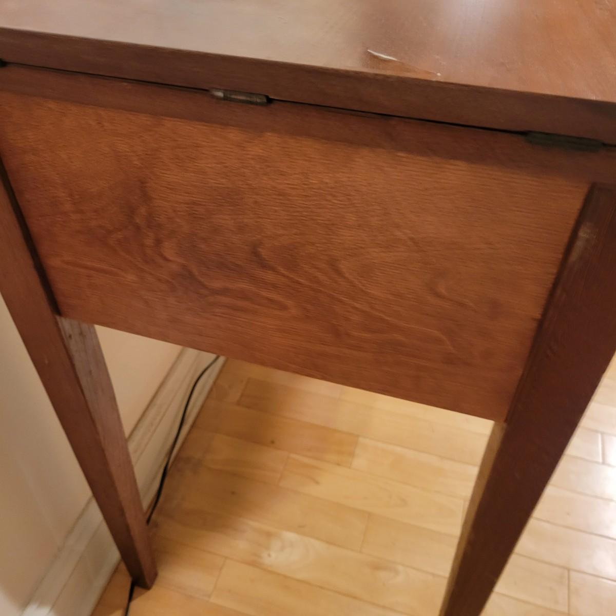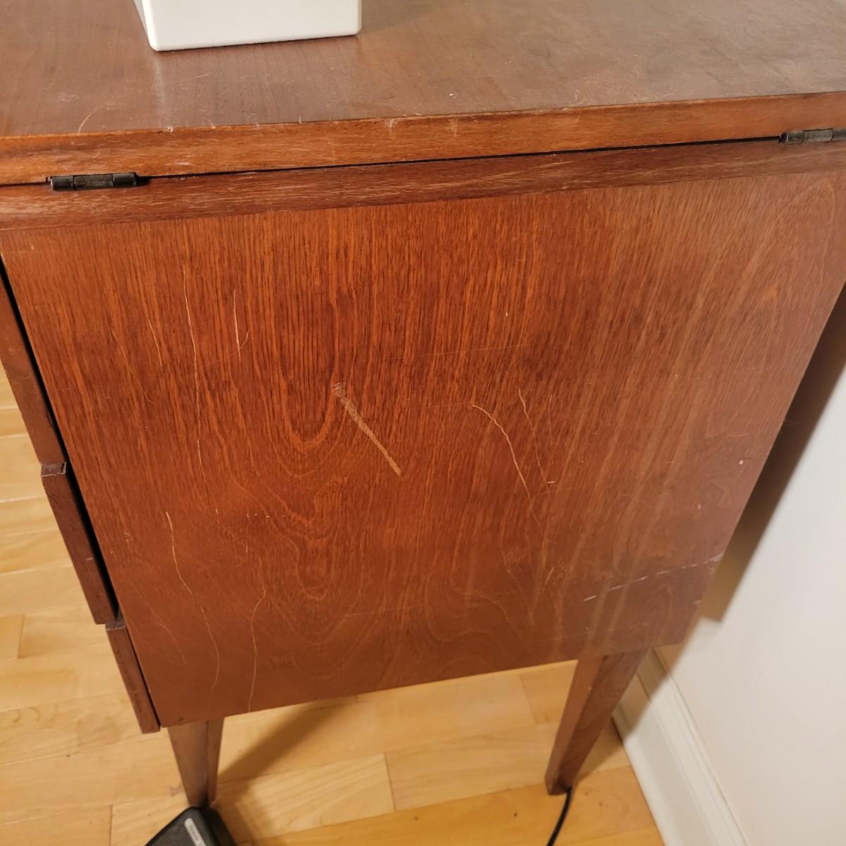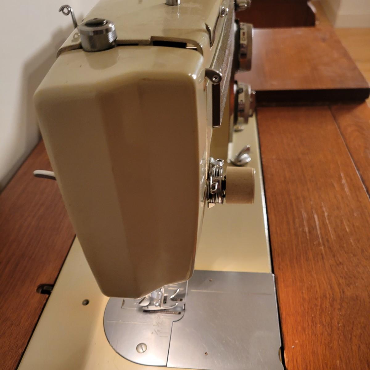 A Sears Kenmore sewing machine and cabinet in good condition. Cabinet does have a loose leg and some minor scratches and blemishes. Sewing machine was tested and works. Includes a handful of thread spools cabinet measures approximately 31" x 18" x 31" with the leaves folded in. Local pickup only
