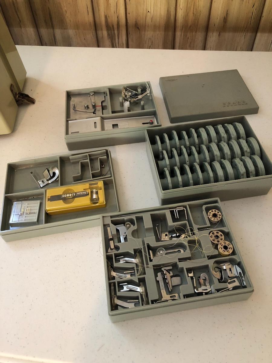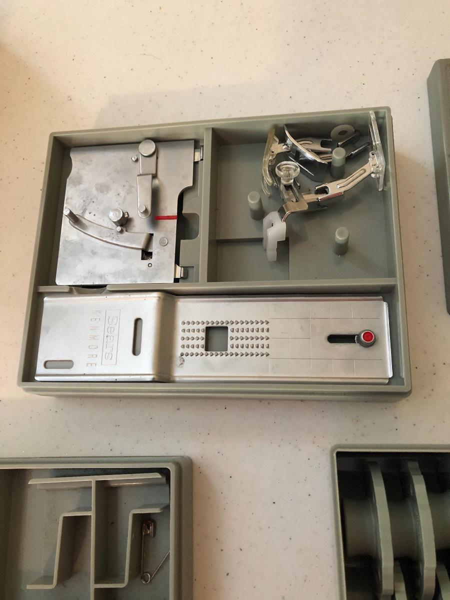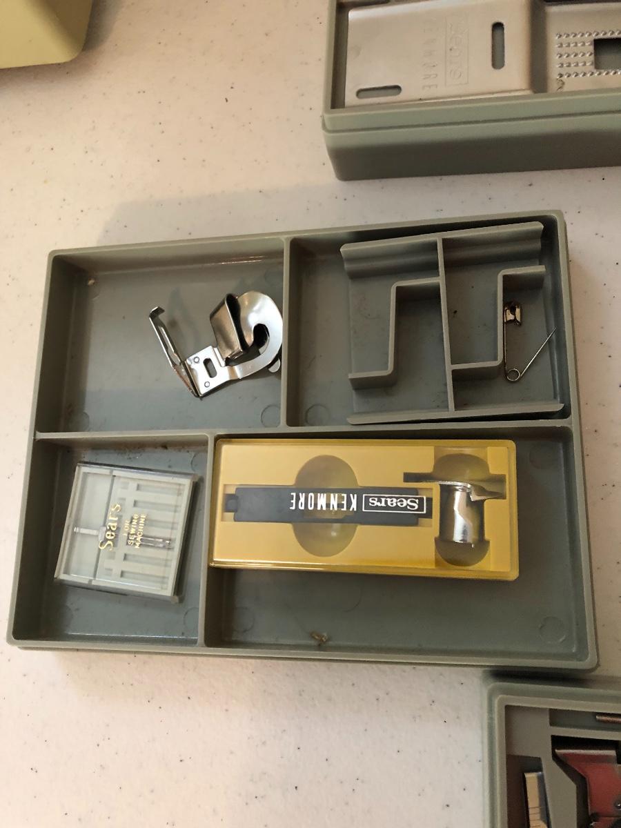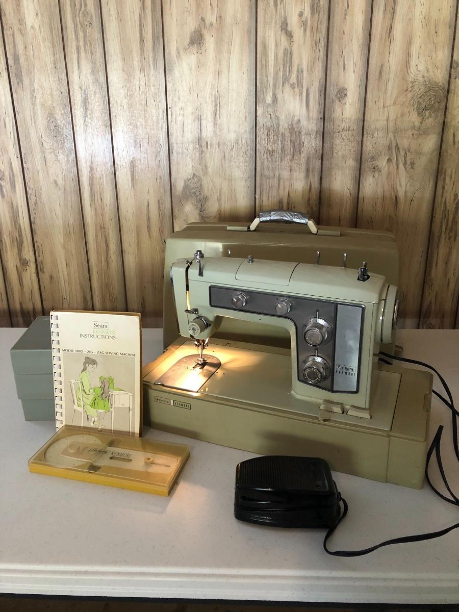 Lot includes Sears Kenmore Model 1802 sewing machine ( with case), instruction manual, Sears Kenmore accessories case and tool. Sewing machine operates when plugged in. Shipping available.