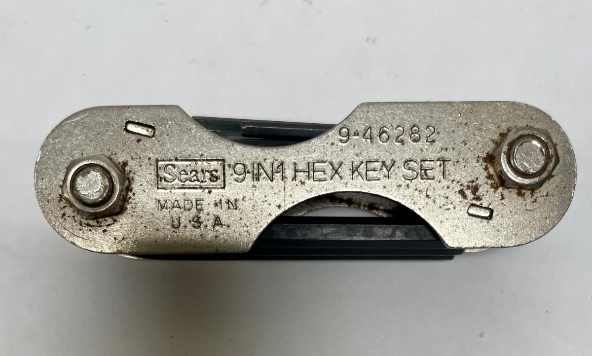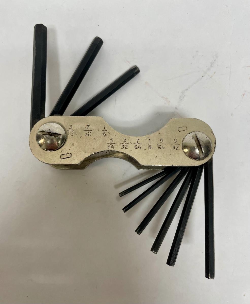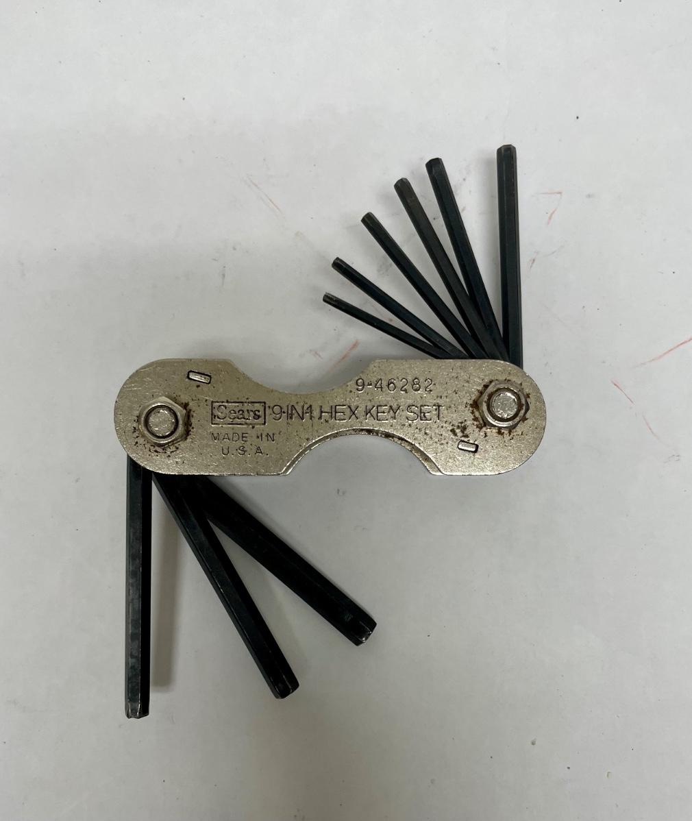 Tool has 9 sizes of hex keys from 1/4” down to 5/64”. Good used condition.