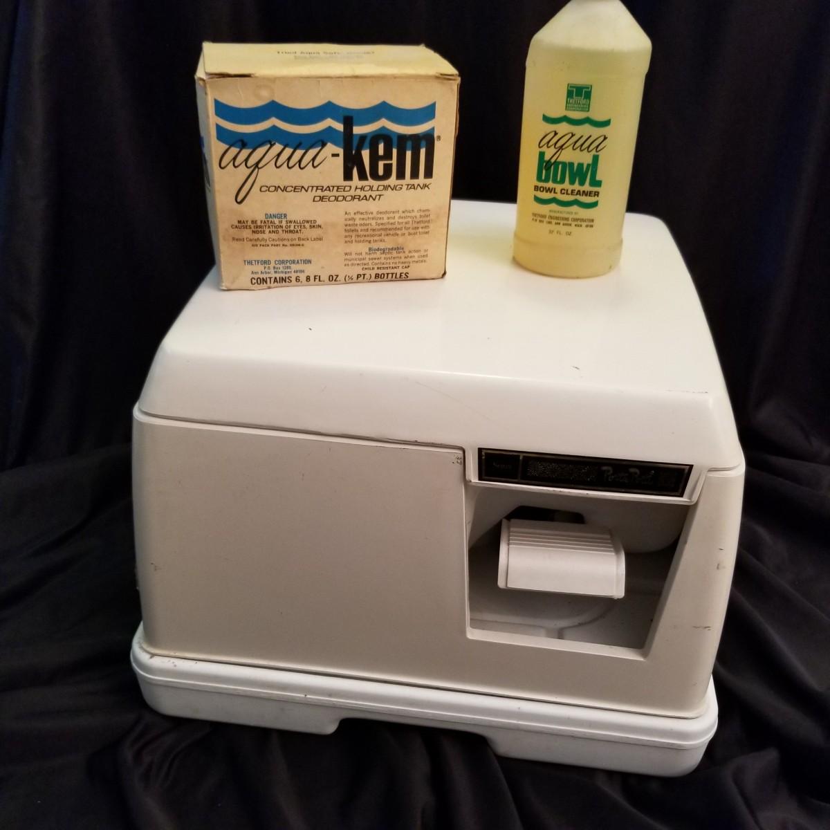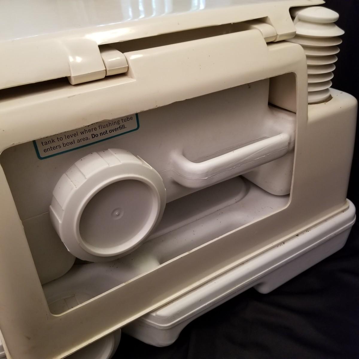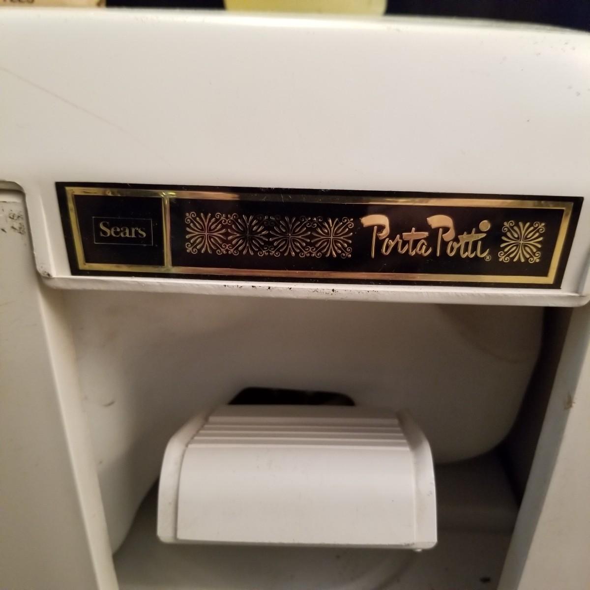 A vintage Sears camping aid, the Porta Potti. Comes with some chemicals, unit appears to be in good shape. Untested. Measures 19"x18"13". See photos for details. Local pickup only.