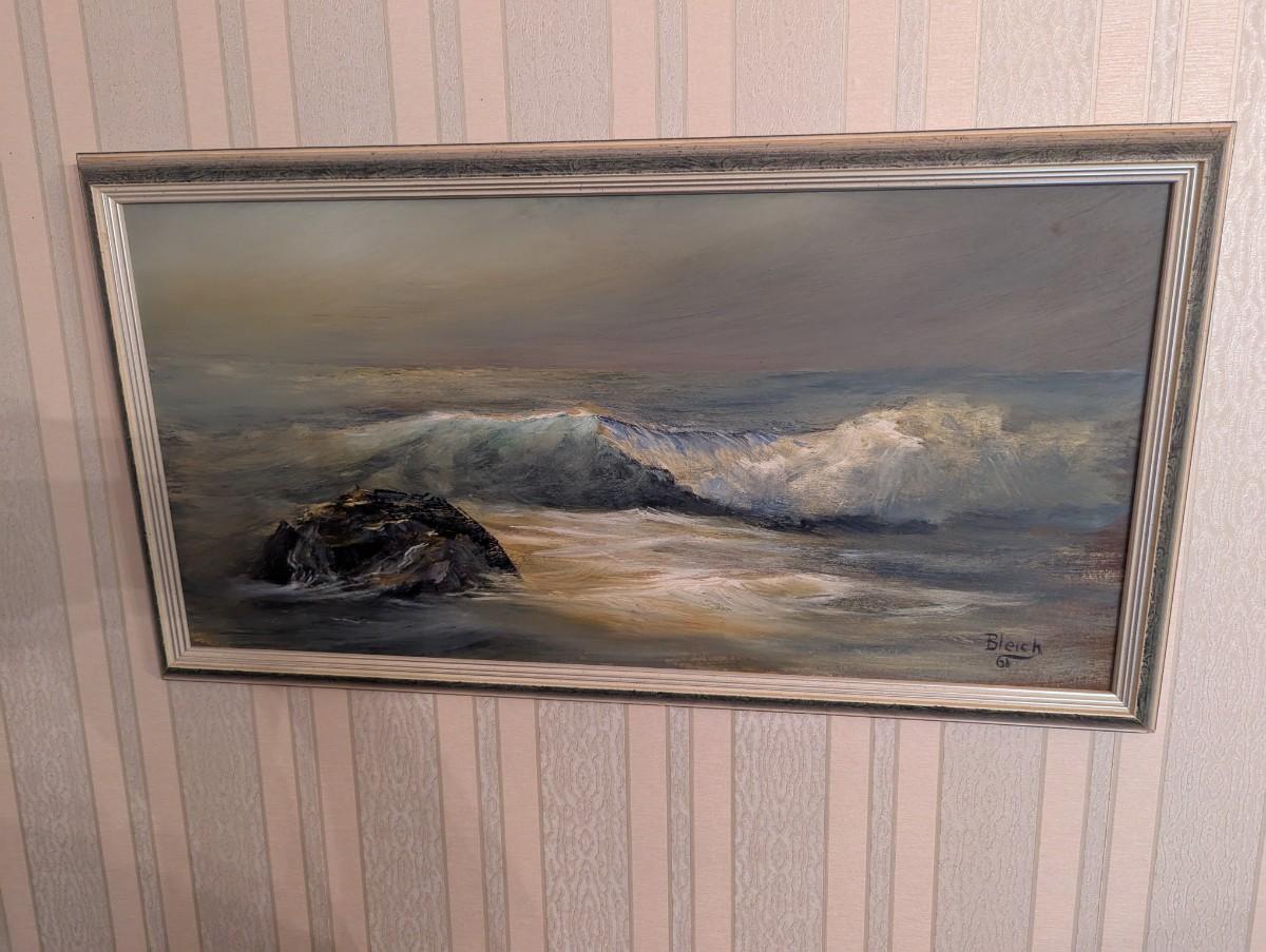 1960's Seascape Crashing Waves Painting Signed By George Bleich