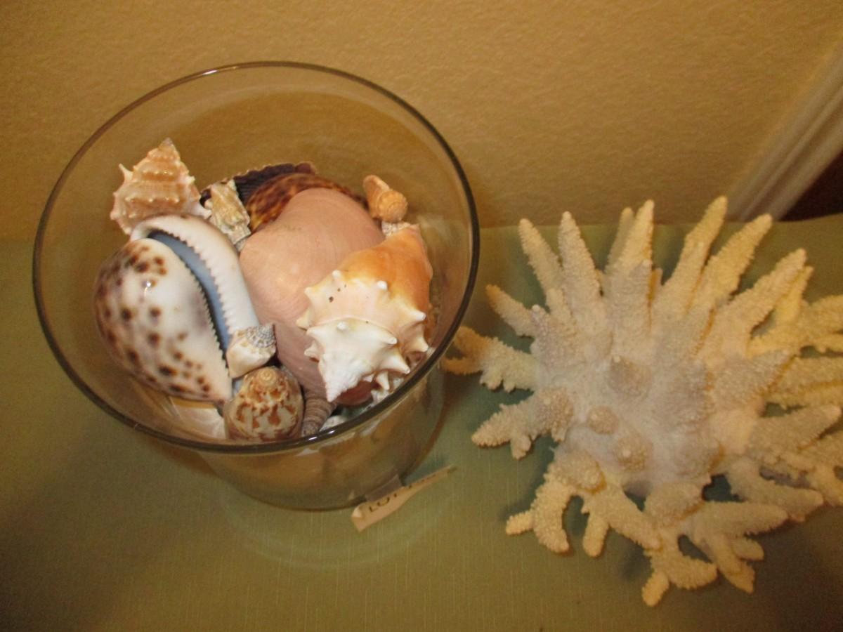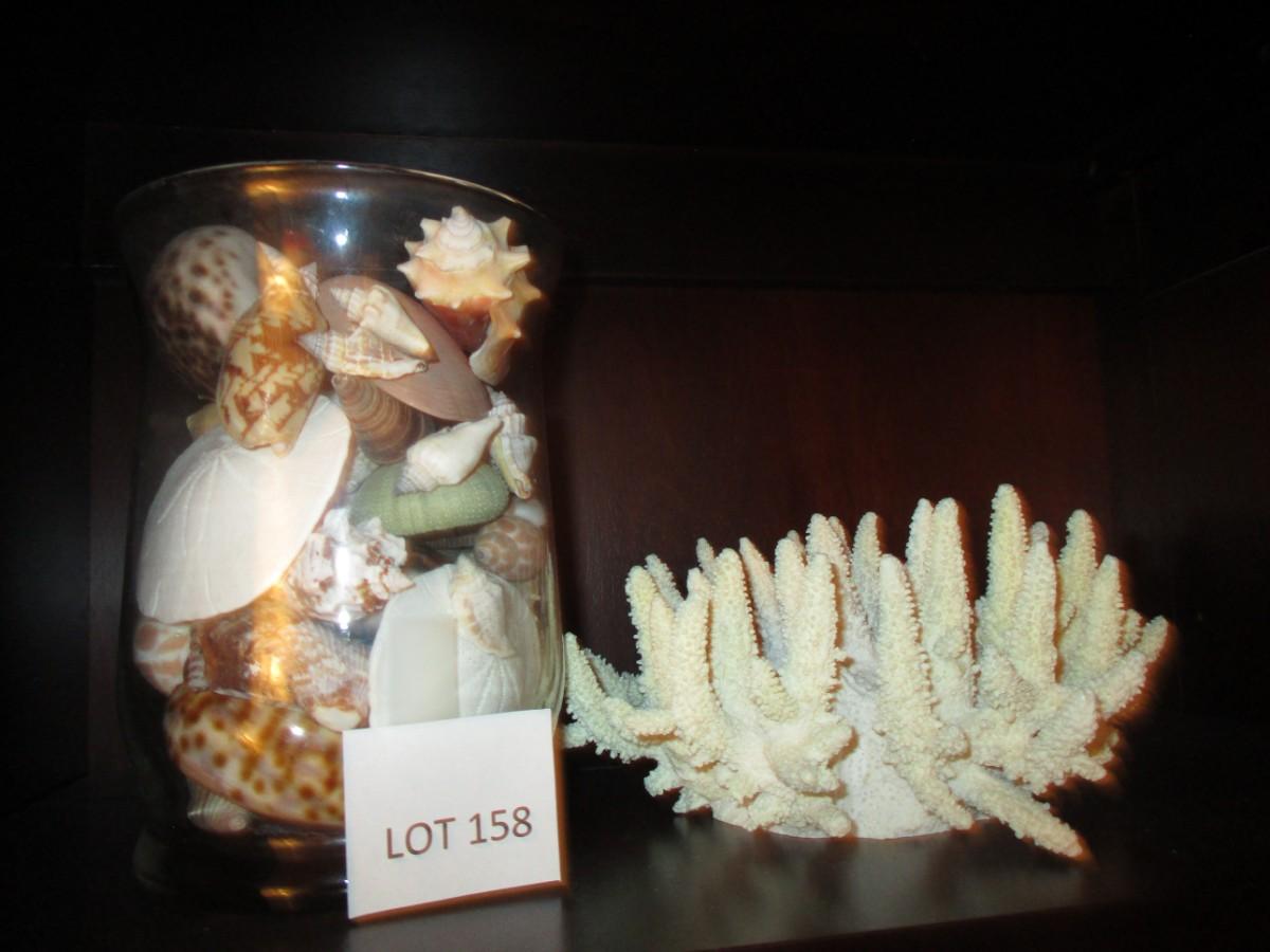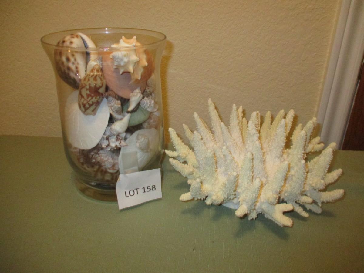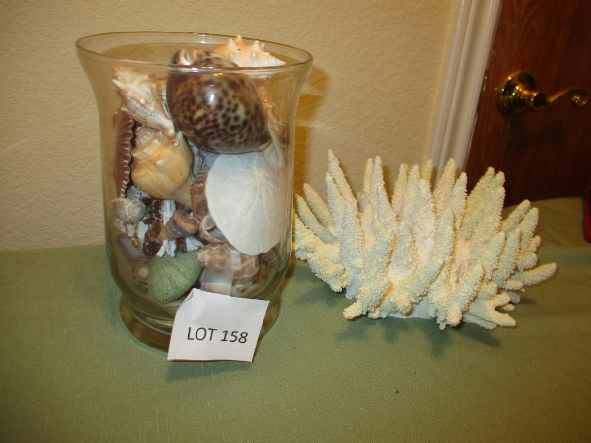 Seashell Collection in Glass Jar/Faux Coral Decor