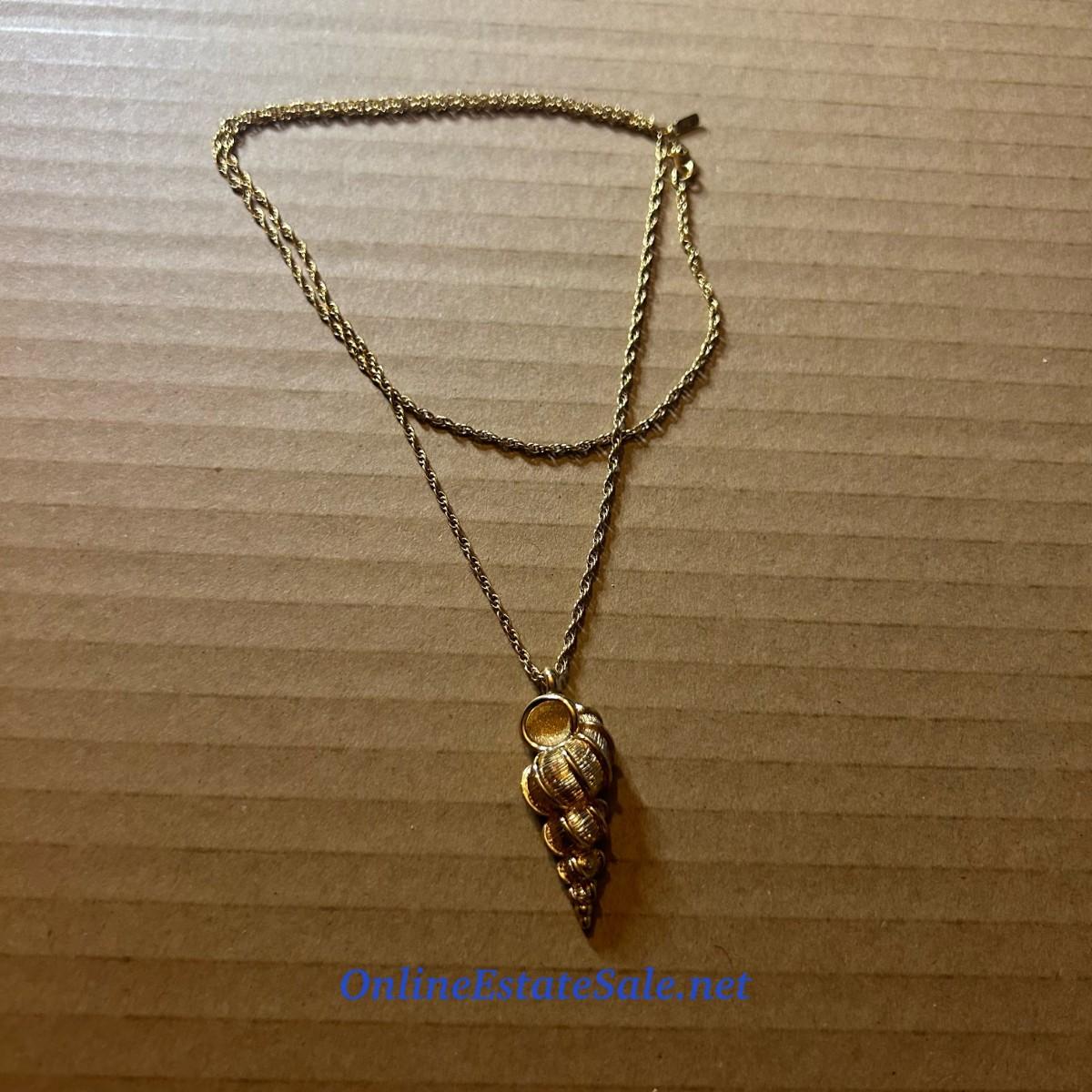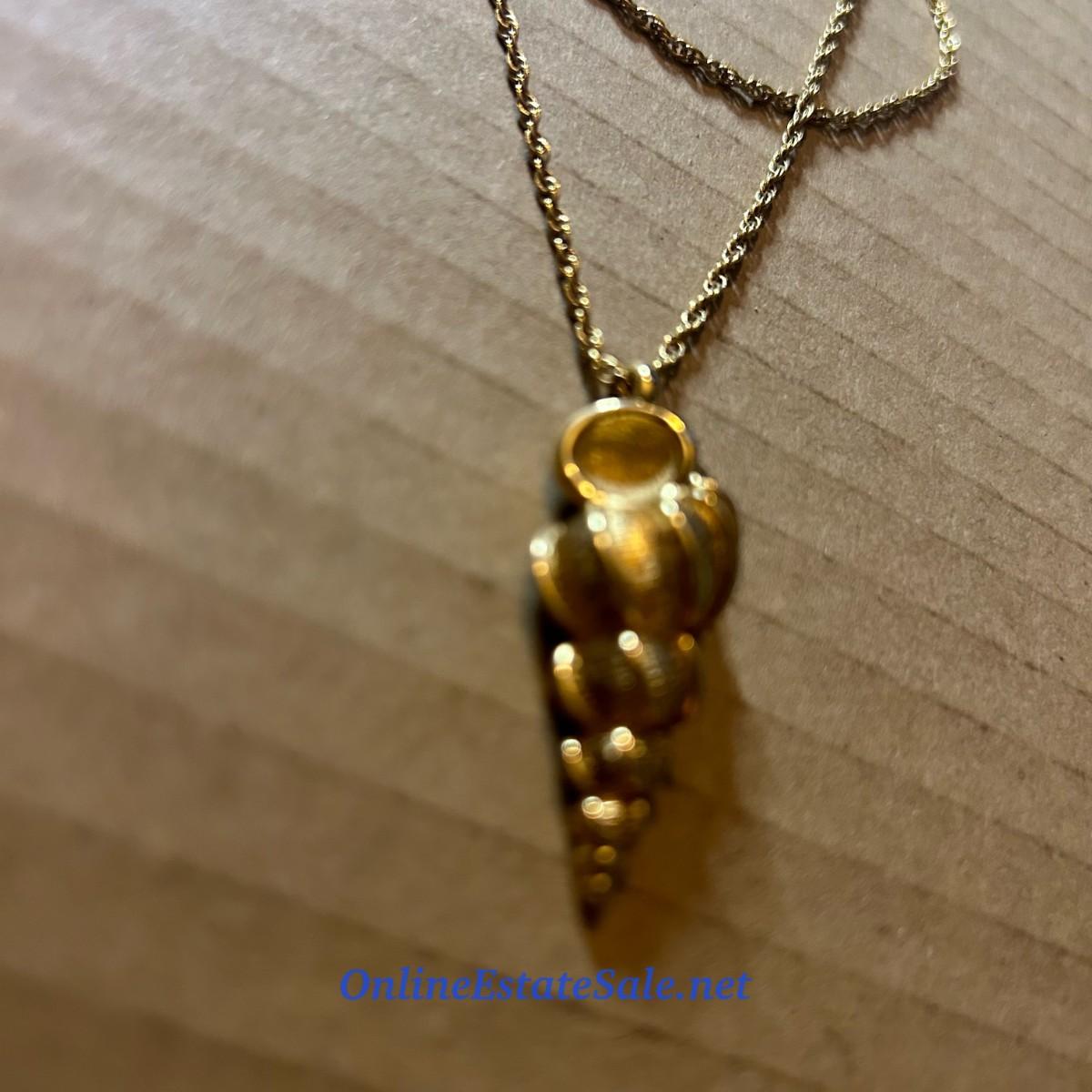 24in Gold Colored Chain with Gold Colored Seashell Pendant and Lobster Claw Clasp