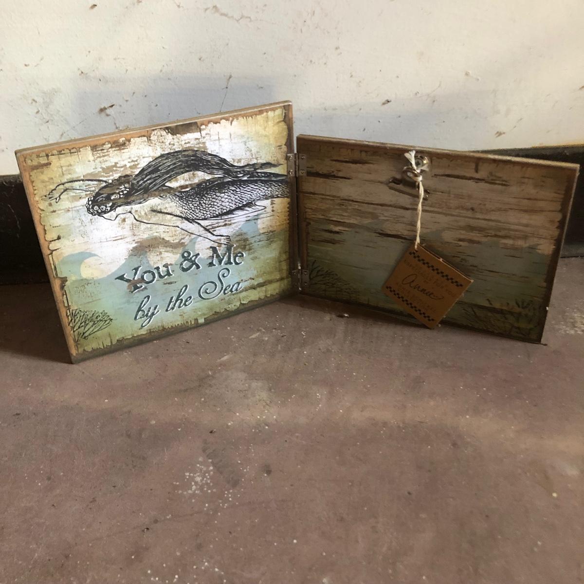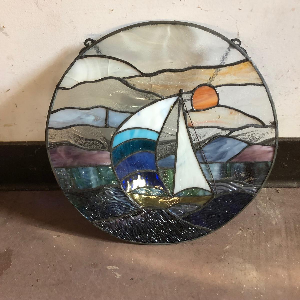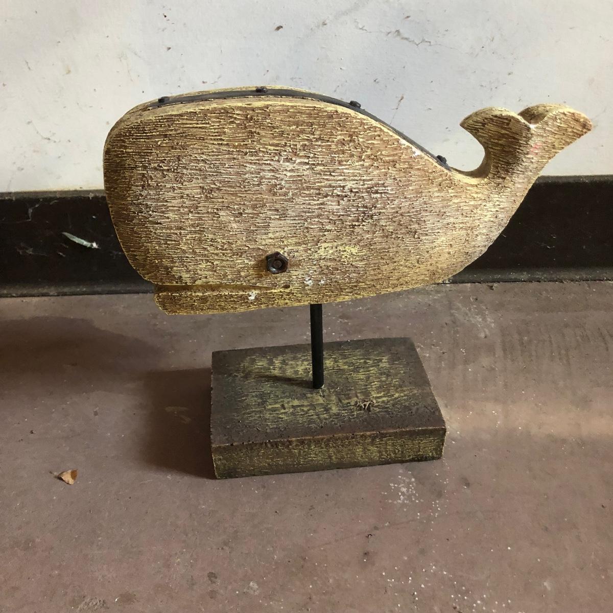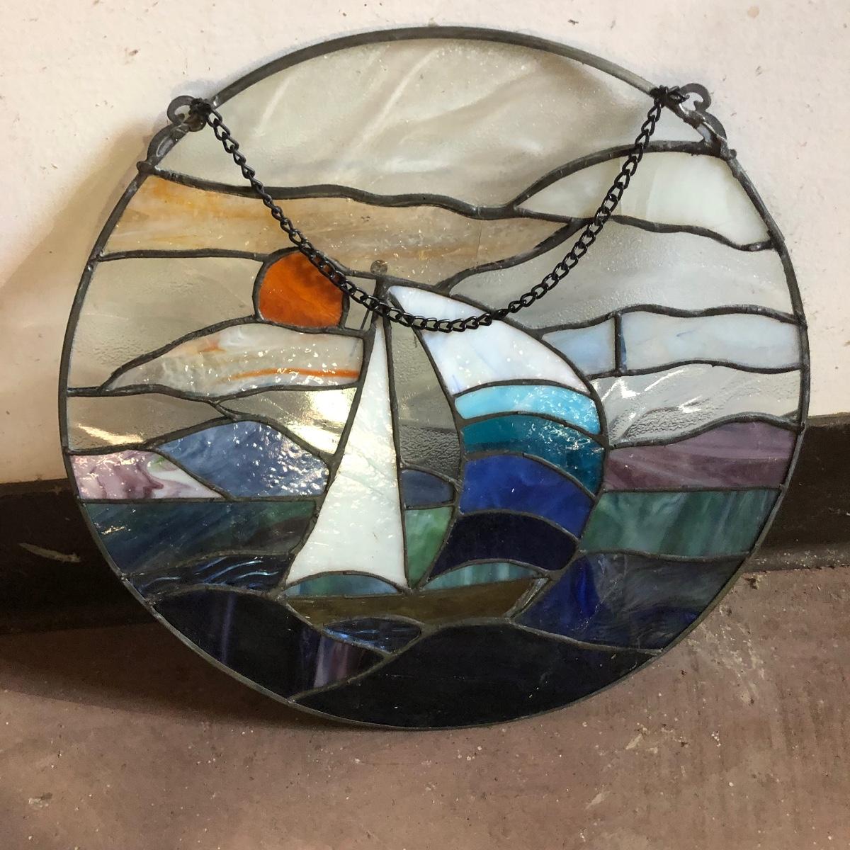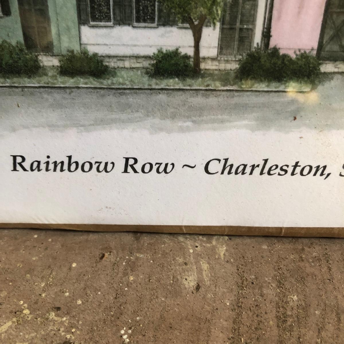 Lot includes Troy Cottrill pencil signed and numbered print, with COA, titled “ Rainbow Row - Charleston SC”. Also a glass fish, stained glass, a metal fish ornament, a resin whale figurine, a shadow box, and a Primitives by Kathy wooden artwork. Stained glass has crack and glass is a little loose at top, see pictures. Stained glass measures 12”D.
