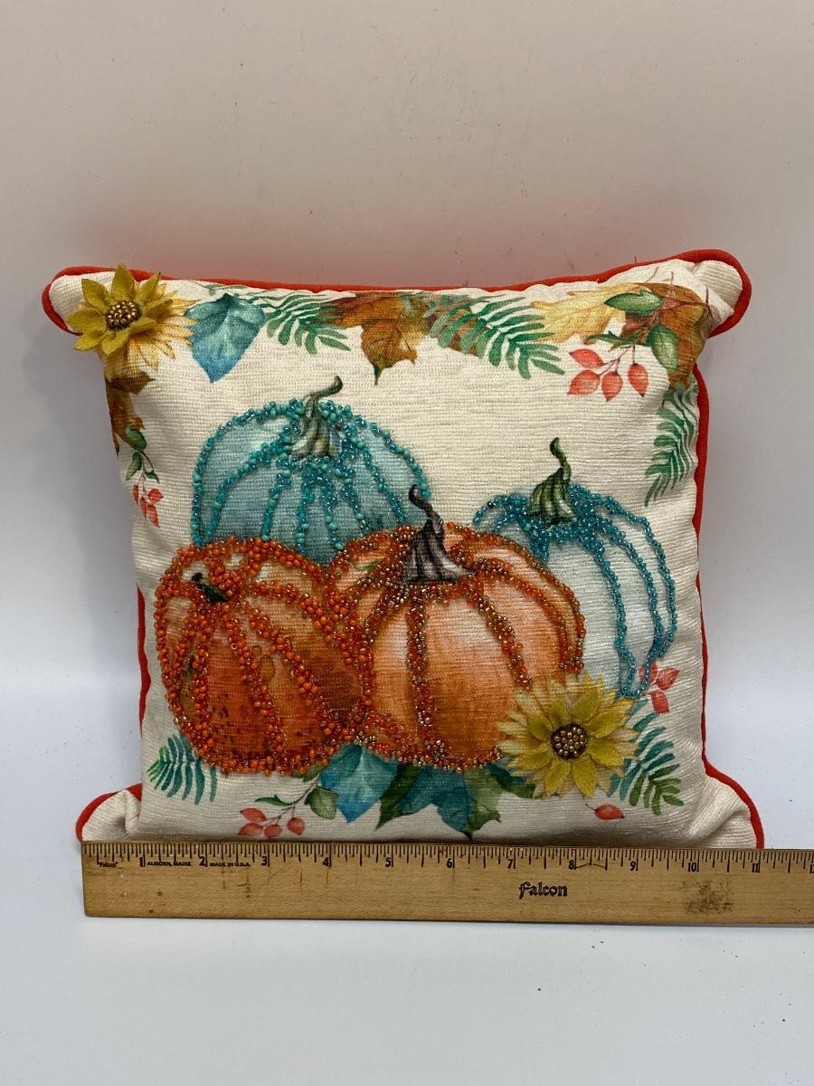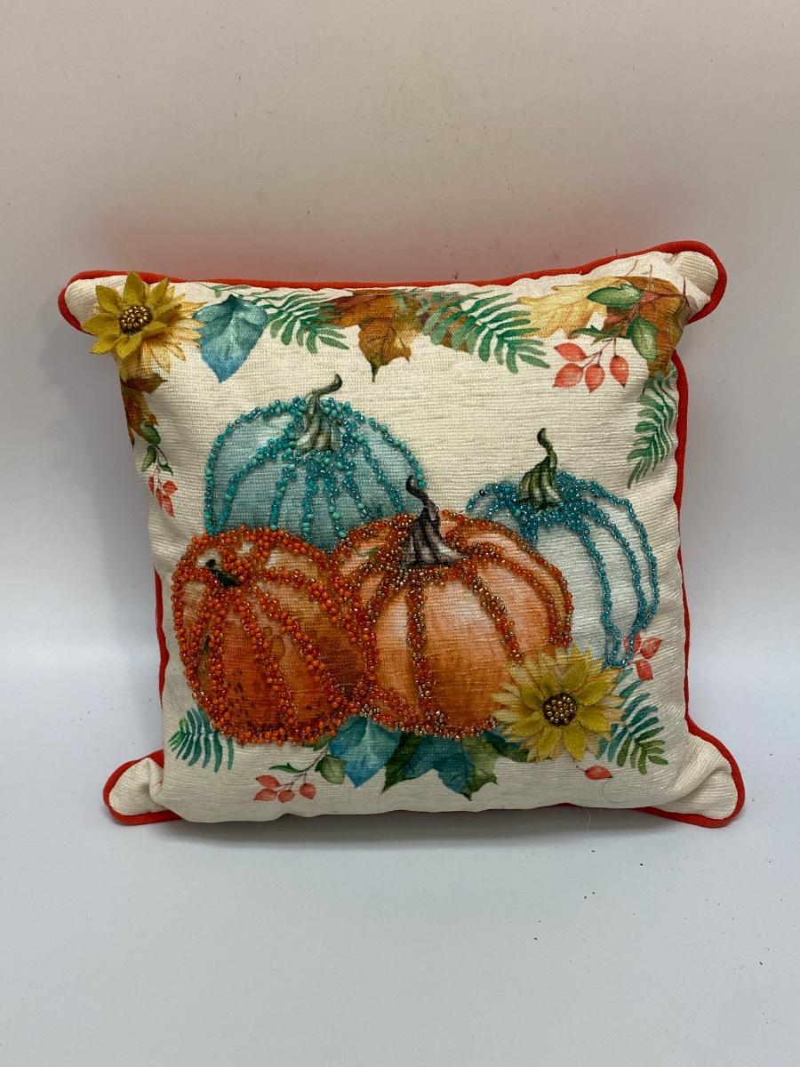 Seasonal Fall Autumn Beaded Pumpkin Accent Throw Pillow