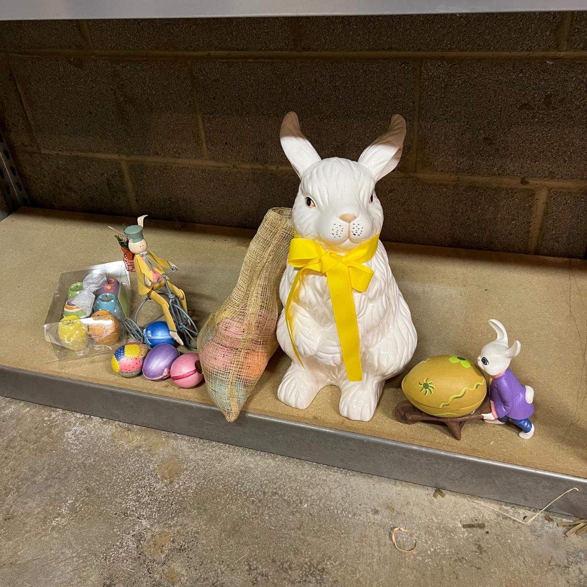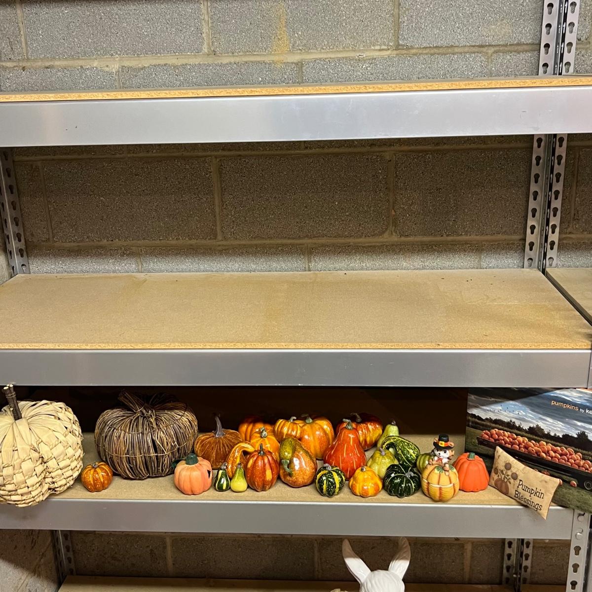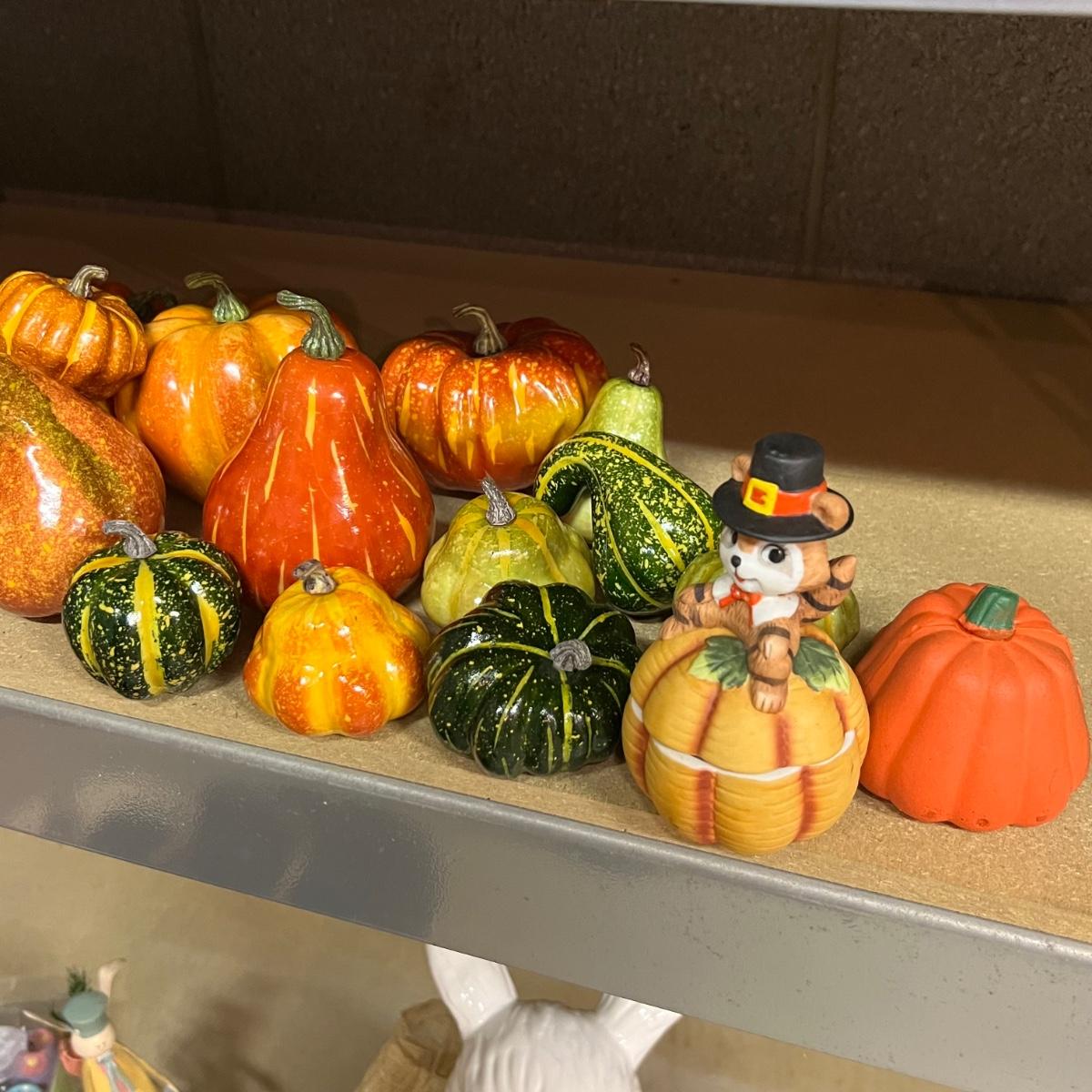Over 50 items in this lot that feature Thanksgiving, Fall and Easter. Pumpkins are mostly plastic. Rabbit and a couple of turkeys are ceramic and there are a lot of soft sided items as well.