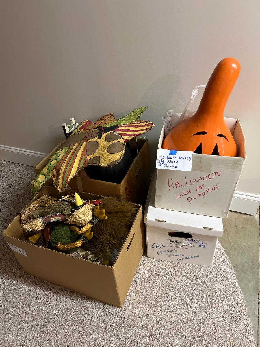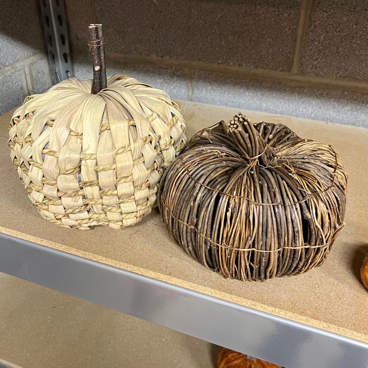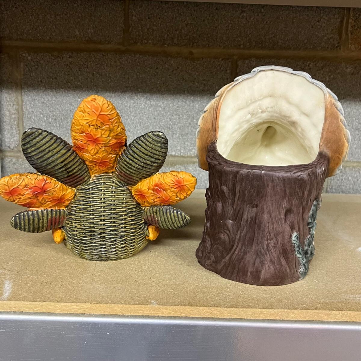 Over 50 items in this lot that feature Thanksgiving, Fall and Easter. Pumpkins are mostly plastic. Rabbit and a couple of turkeys are ceramic and there are a lot of soft sided items as well.