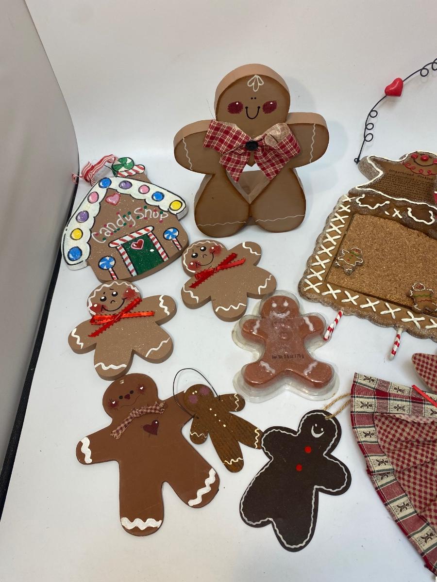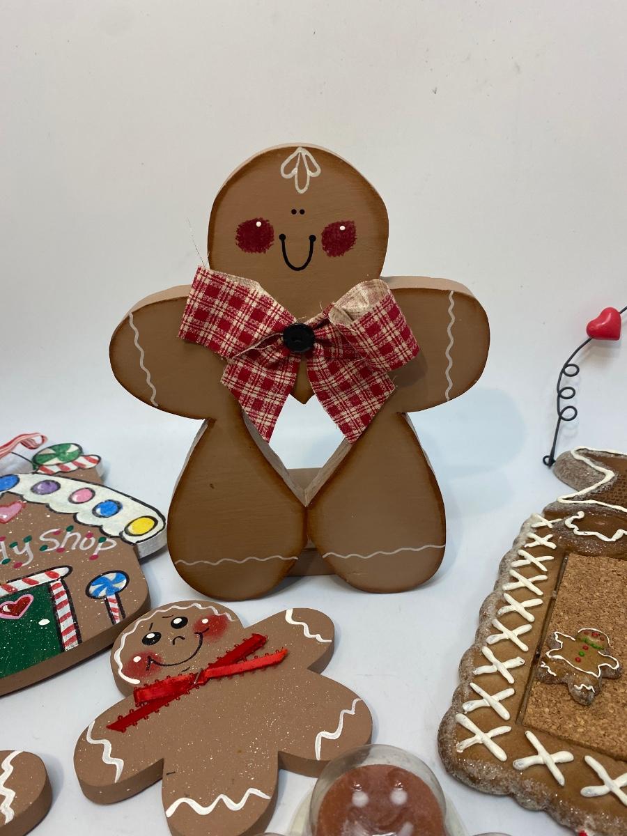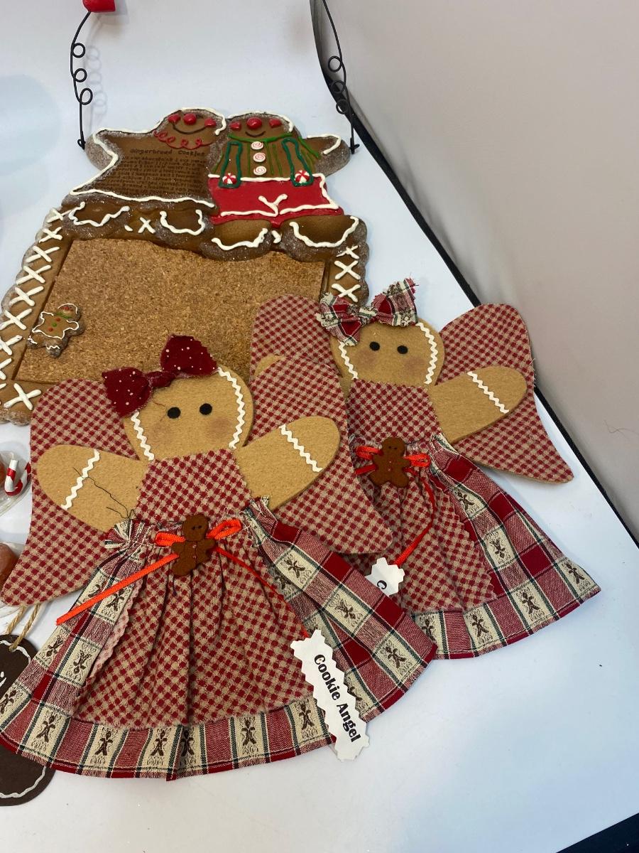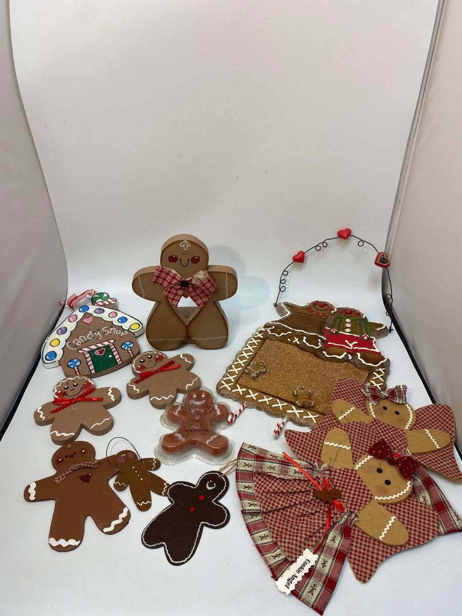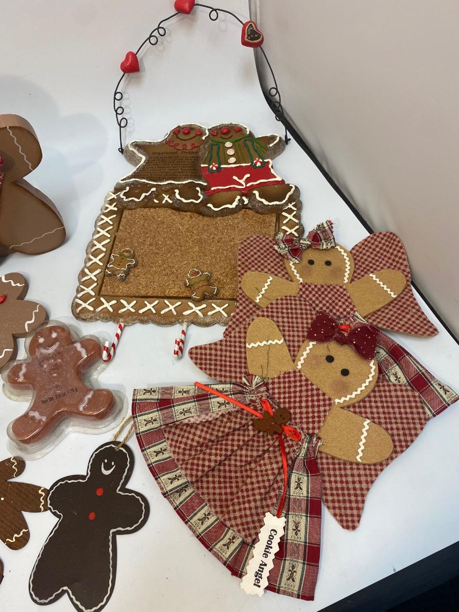 Seasonal Holiday Gingerbread Man Hanging Decor. Variety of gingerbread man theme crafts for holiday decor. Good displayed condition.
