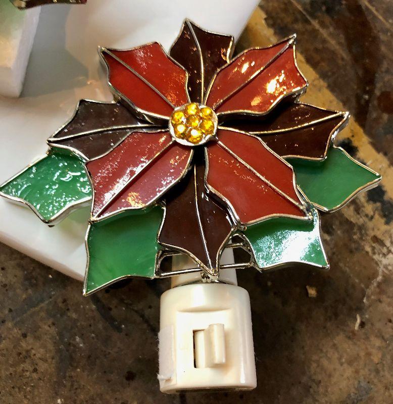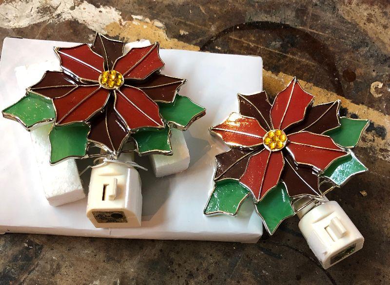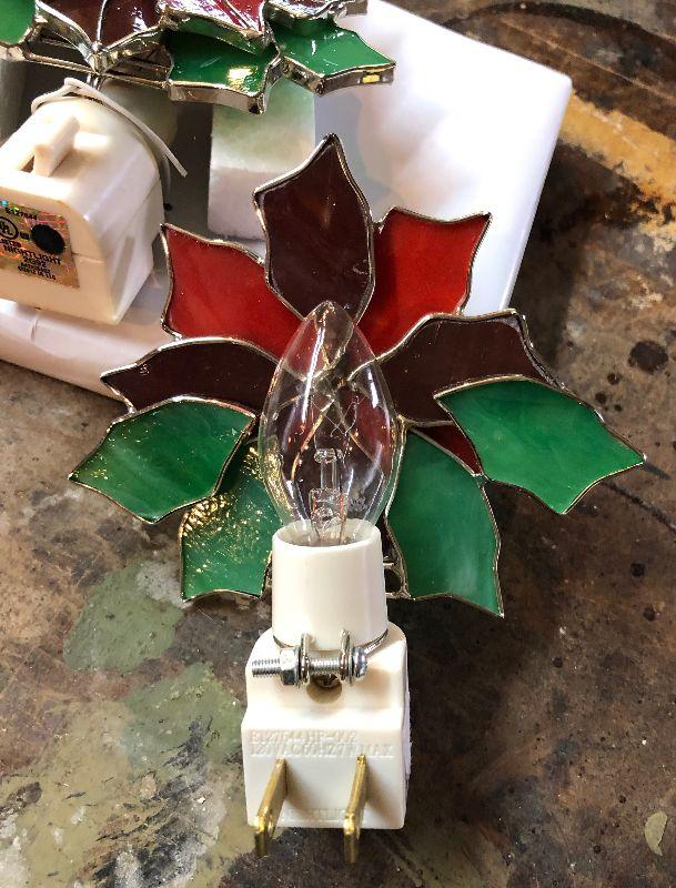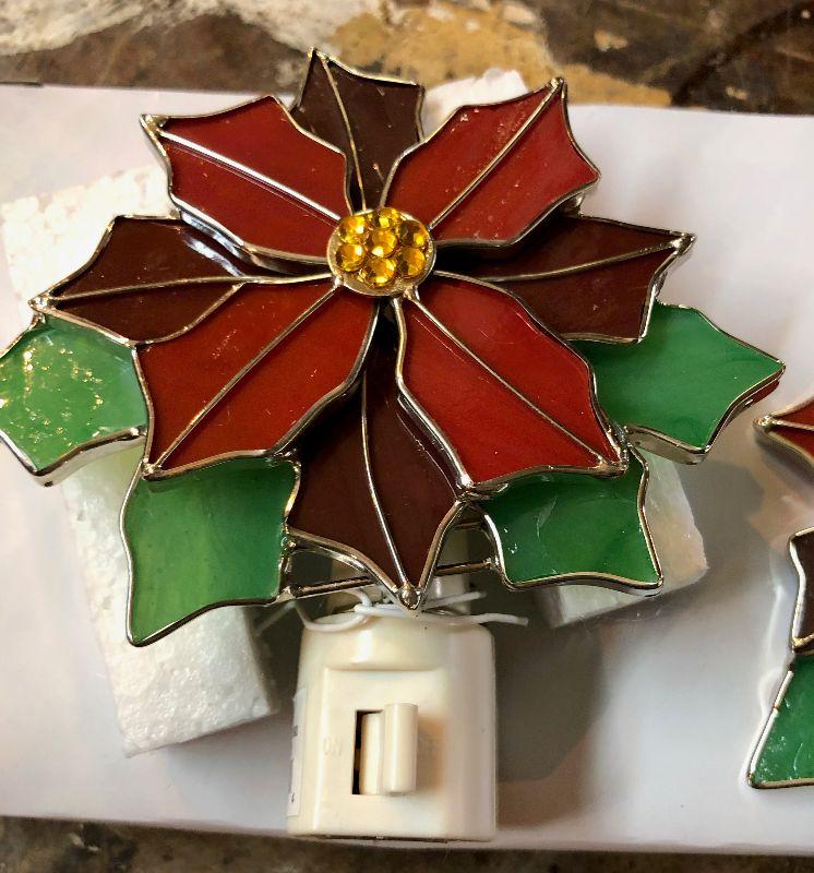 Like new condition on these faux leaded glass Poinsettia night lights...Seasonal ambience....