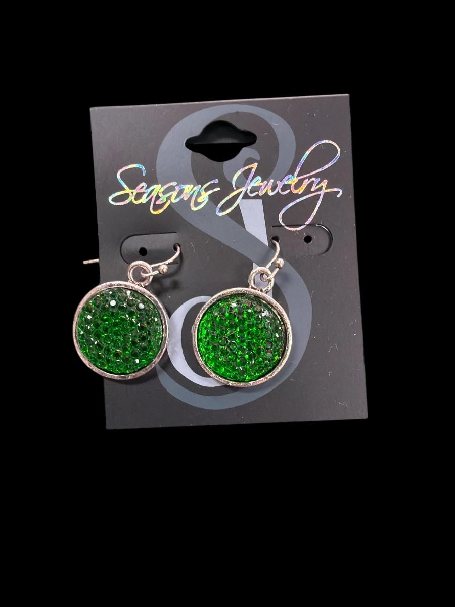 Seasons Jewelry Green Glitter Earrings and Necklace Set