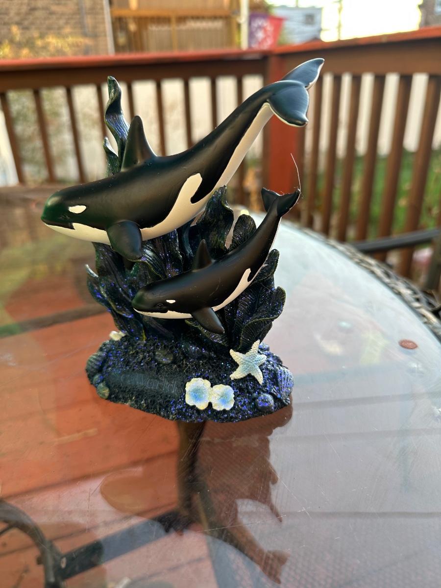 SEAWORLD DOUBLE WHALE RESIN STATUE FIGURINE ORCA KILLER WHALE SHAMU