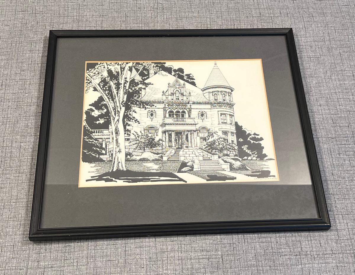 Second, C R Manzano Print of Ink Drawing of an Old House