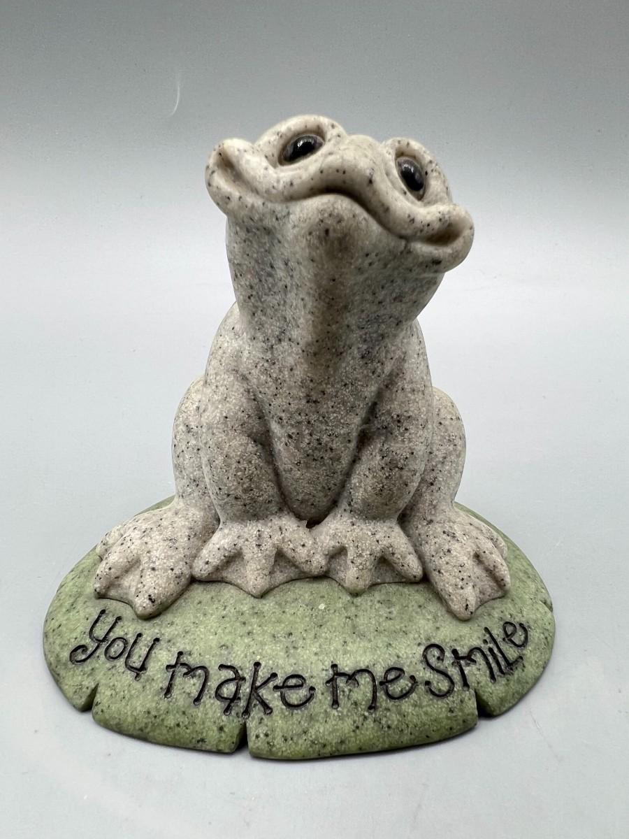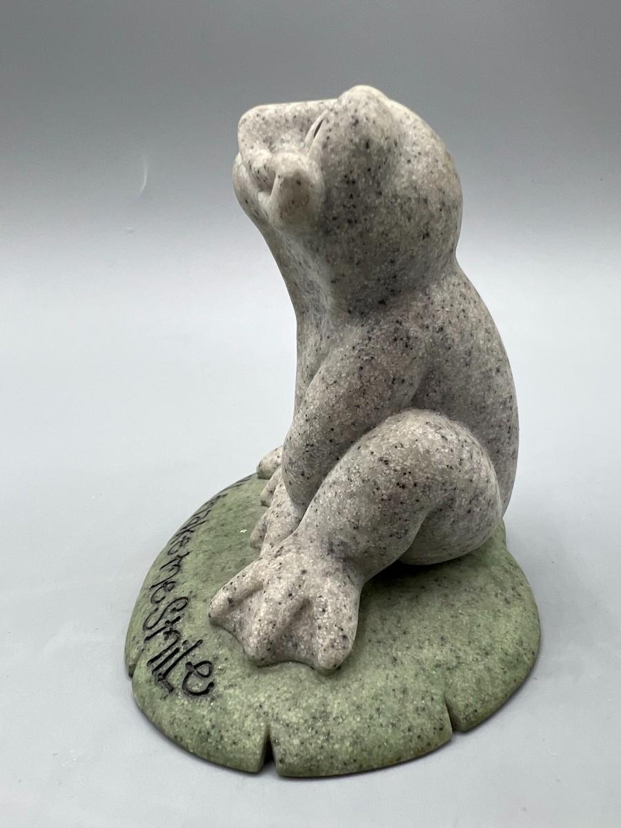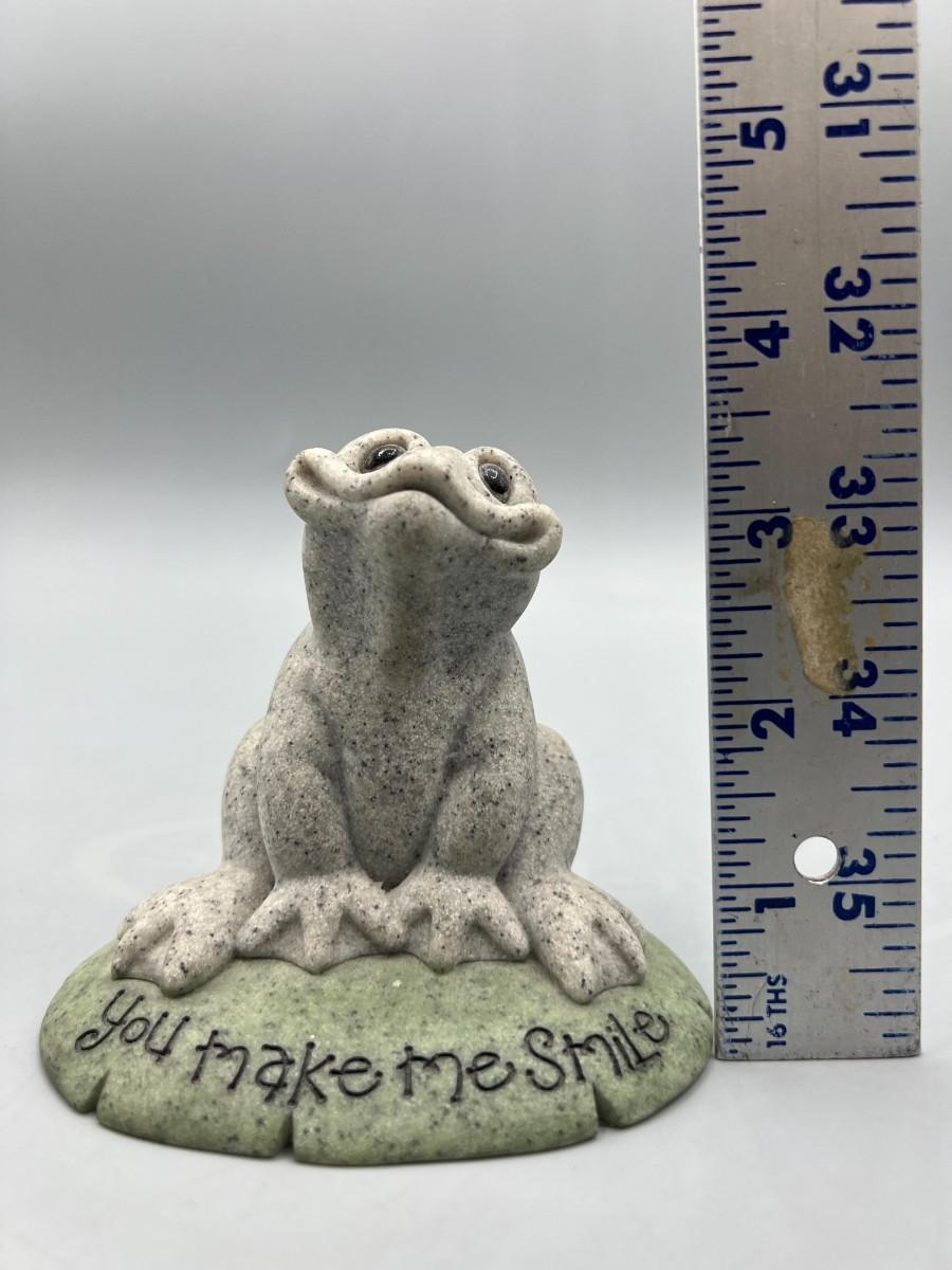 There is no significant damage to the frog and is in overall good displayable condition. Check pictures for more details and for sizing.