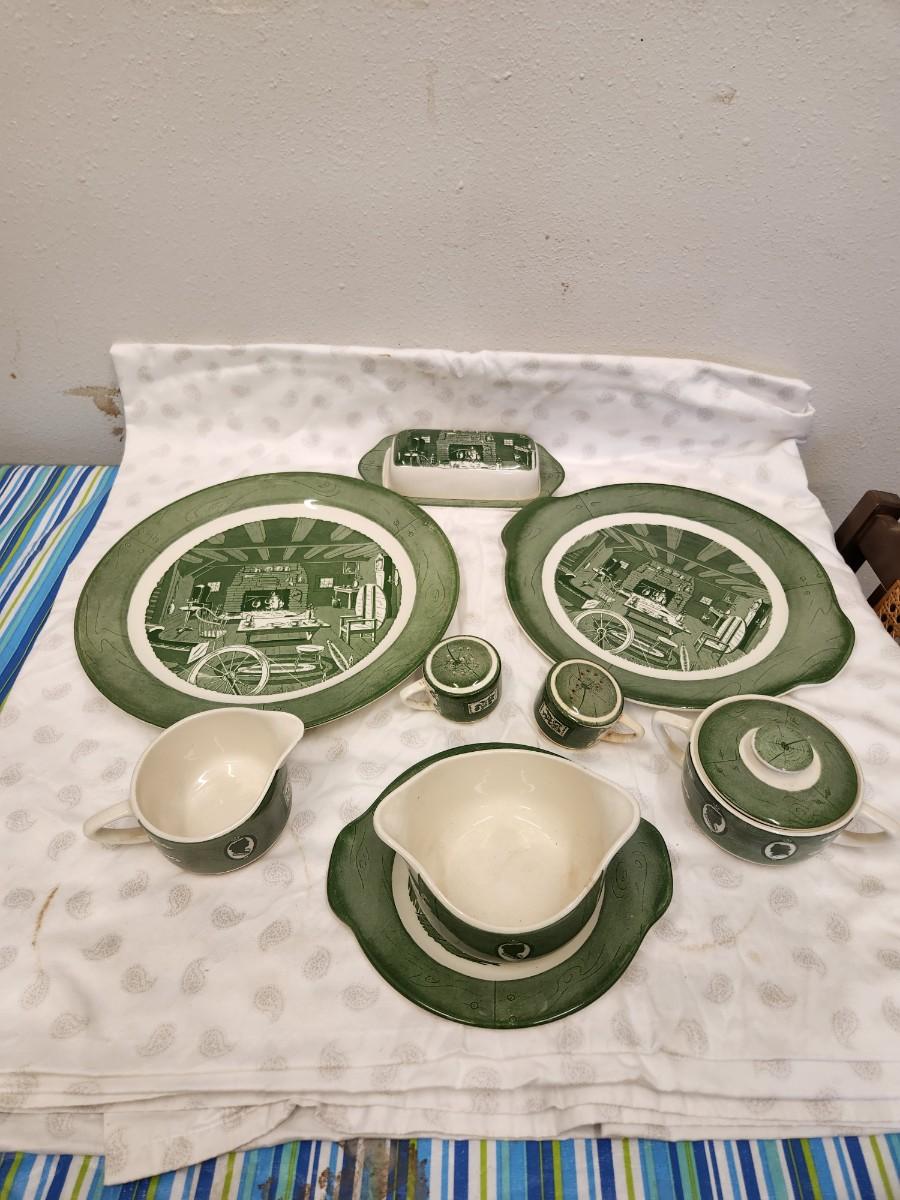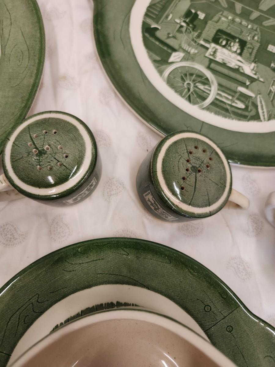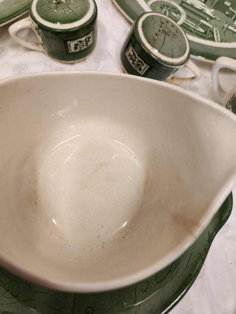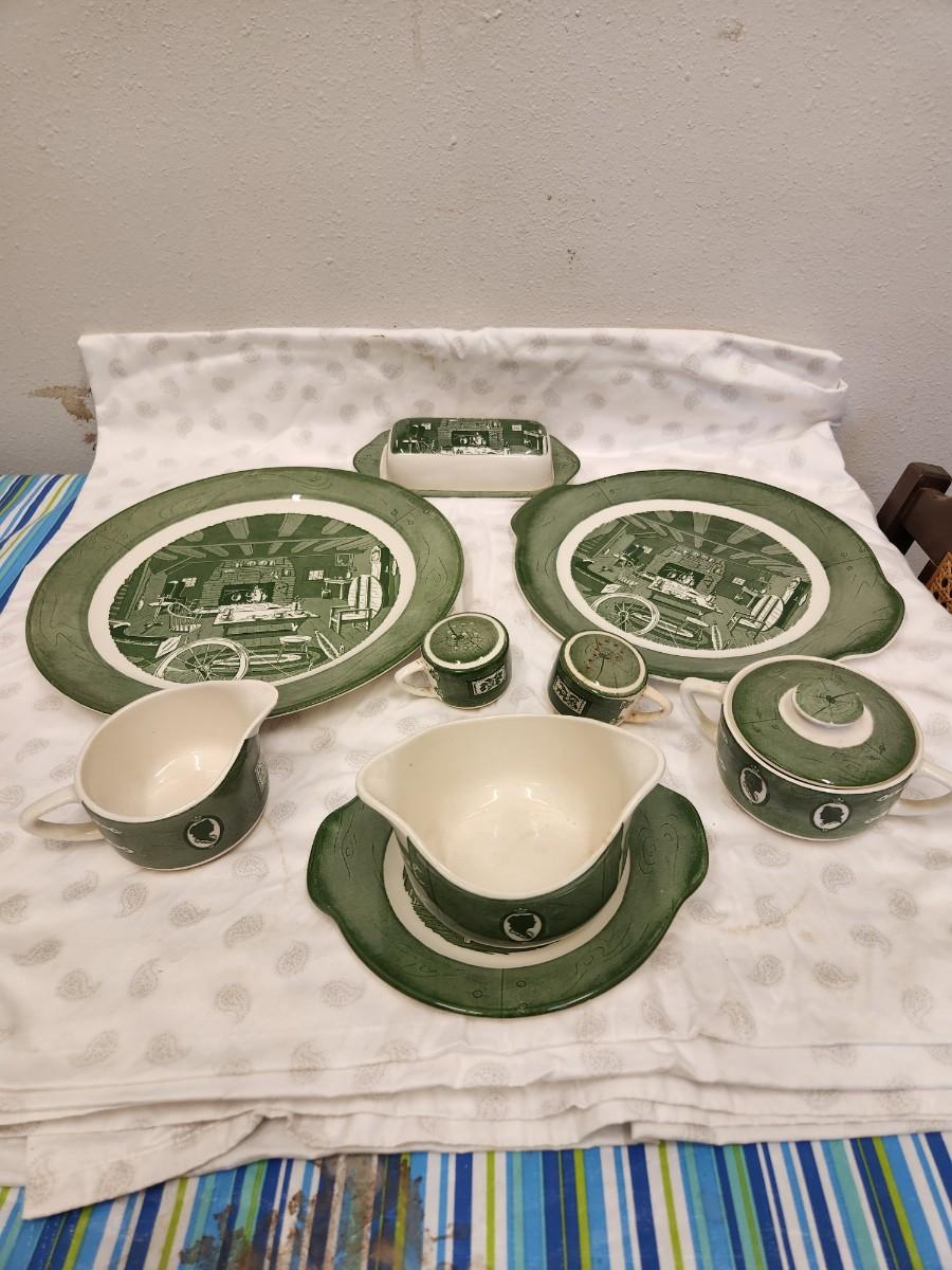 Second of 3 serving piece lot. This on has a salt and pepper, gravy and cream and sugar a long with a few other pieces
