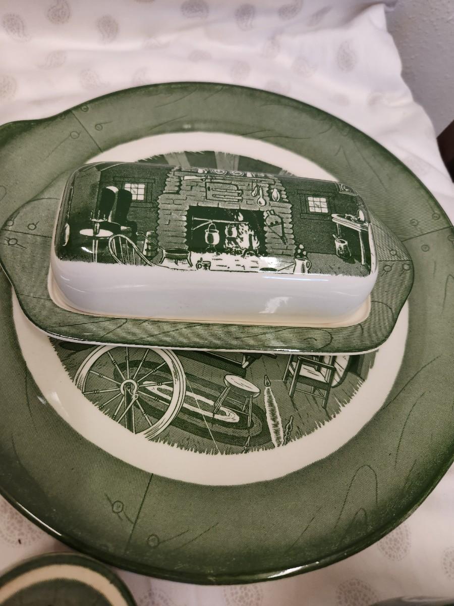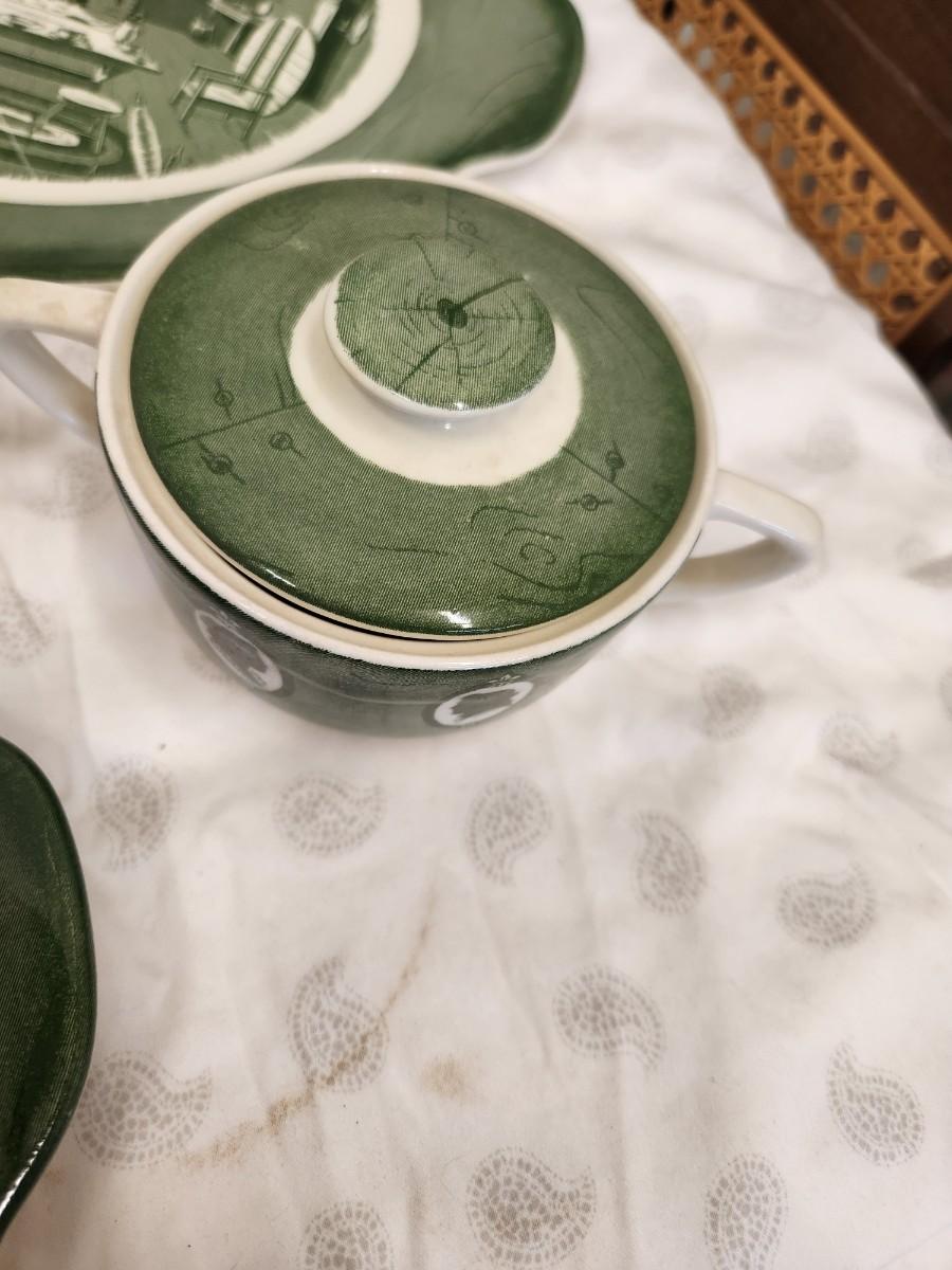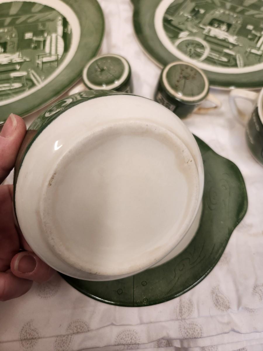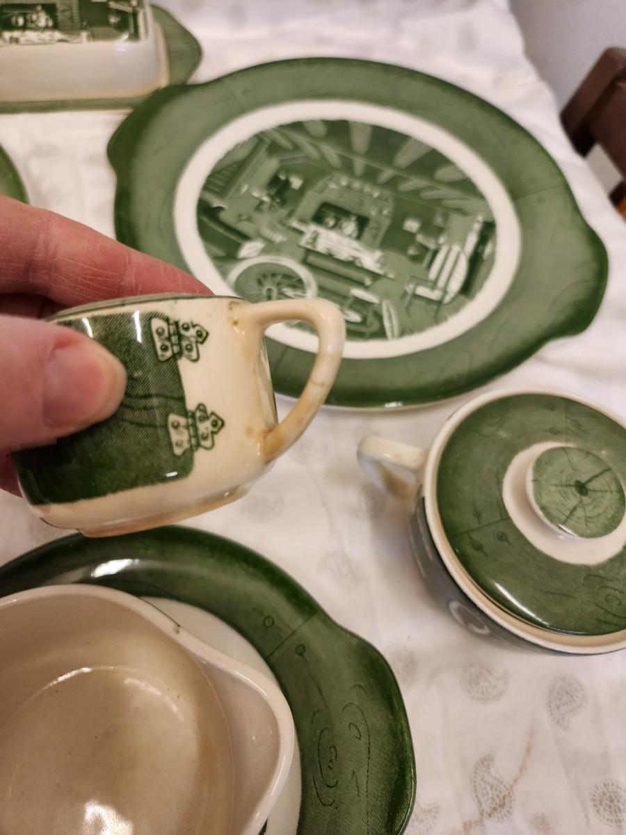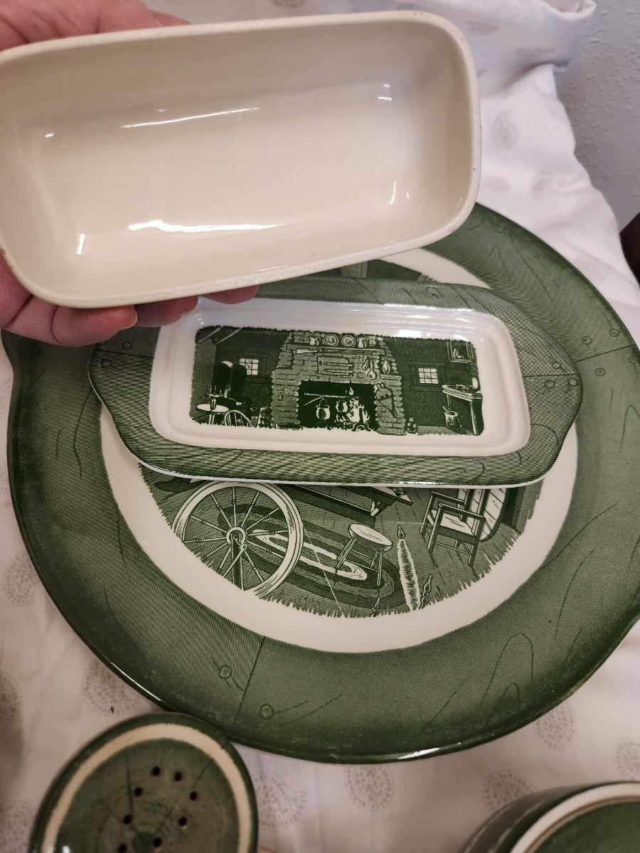 Second of 3 serving piece lot. This on has a salt and pepper, gravy and cream and sugar a long with a few other pieces